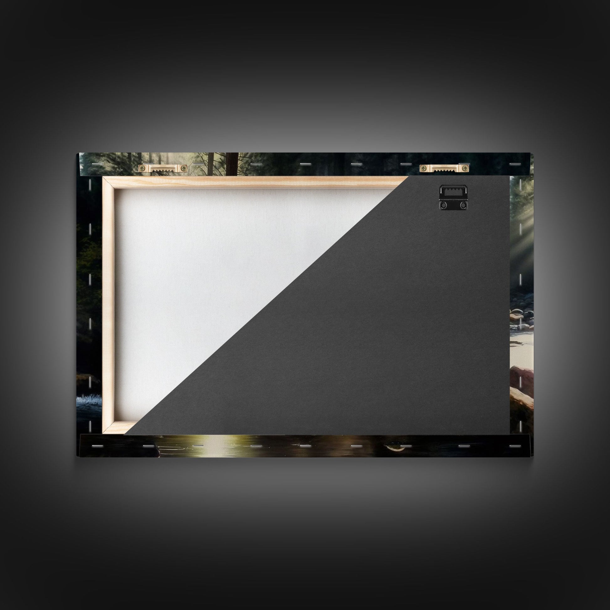 A Rocky Stream, Watercolor Art, Serene nature landscape art, framed canvas print, mouth of the river in the morning light wall art