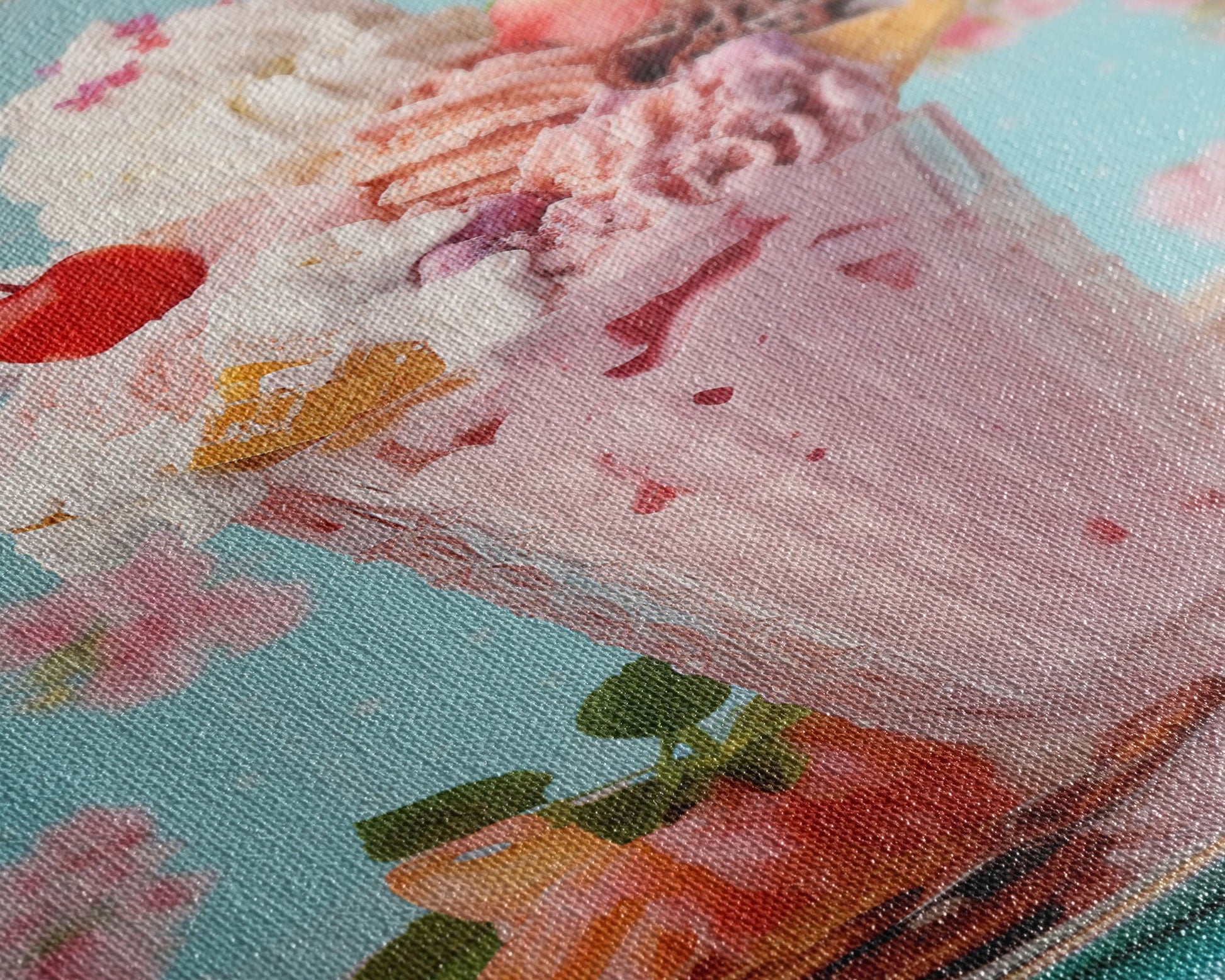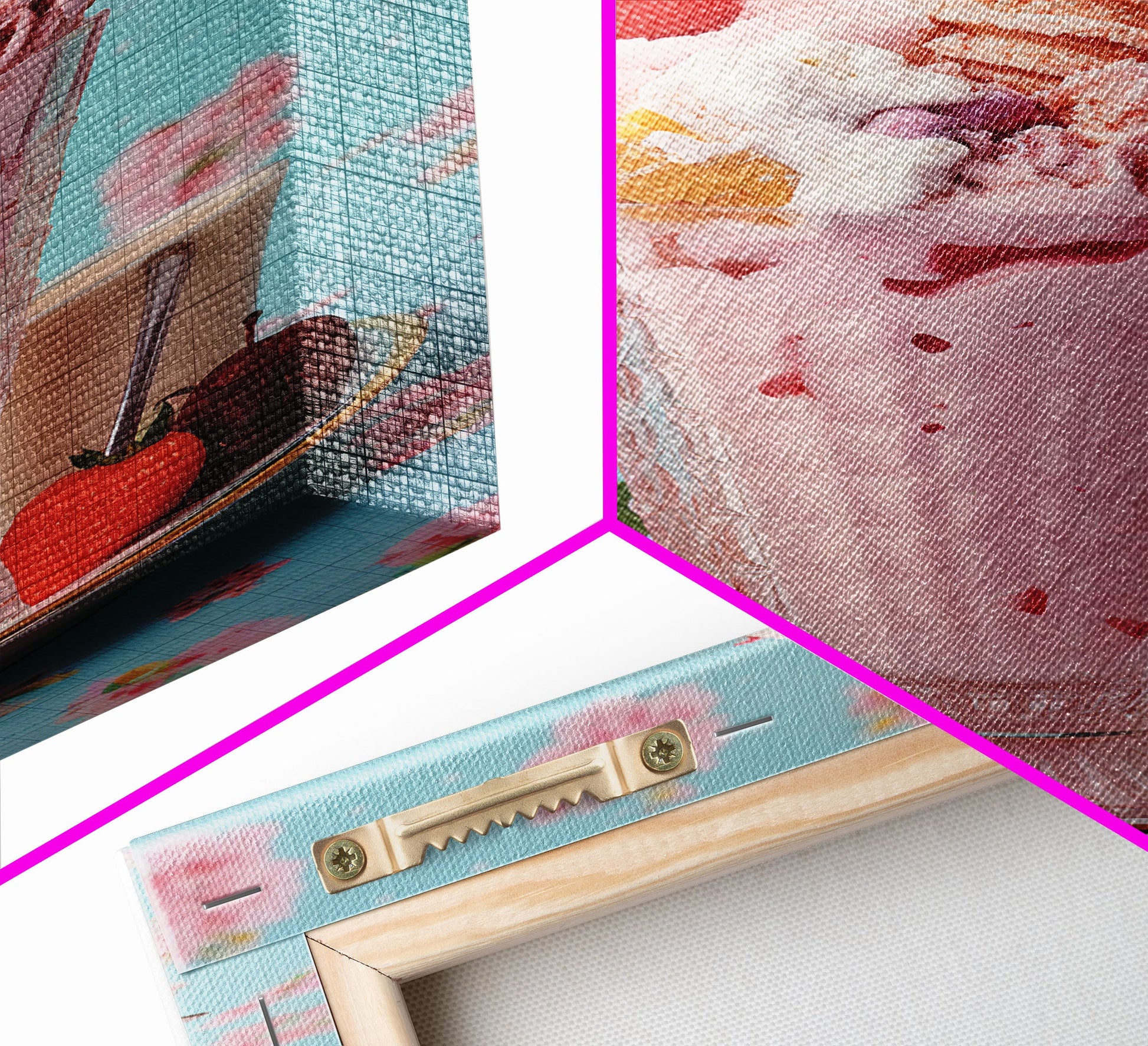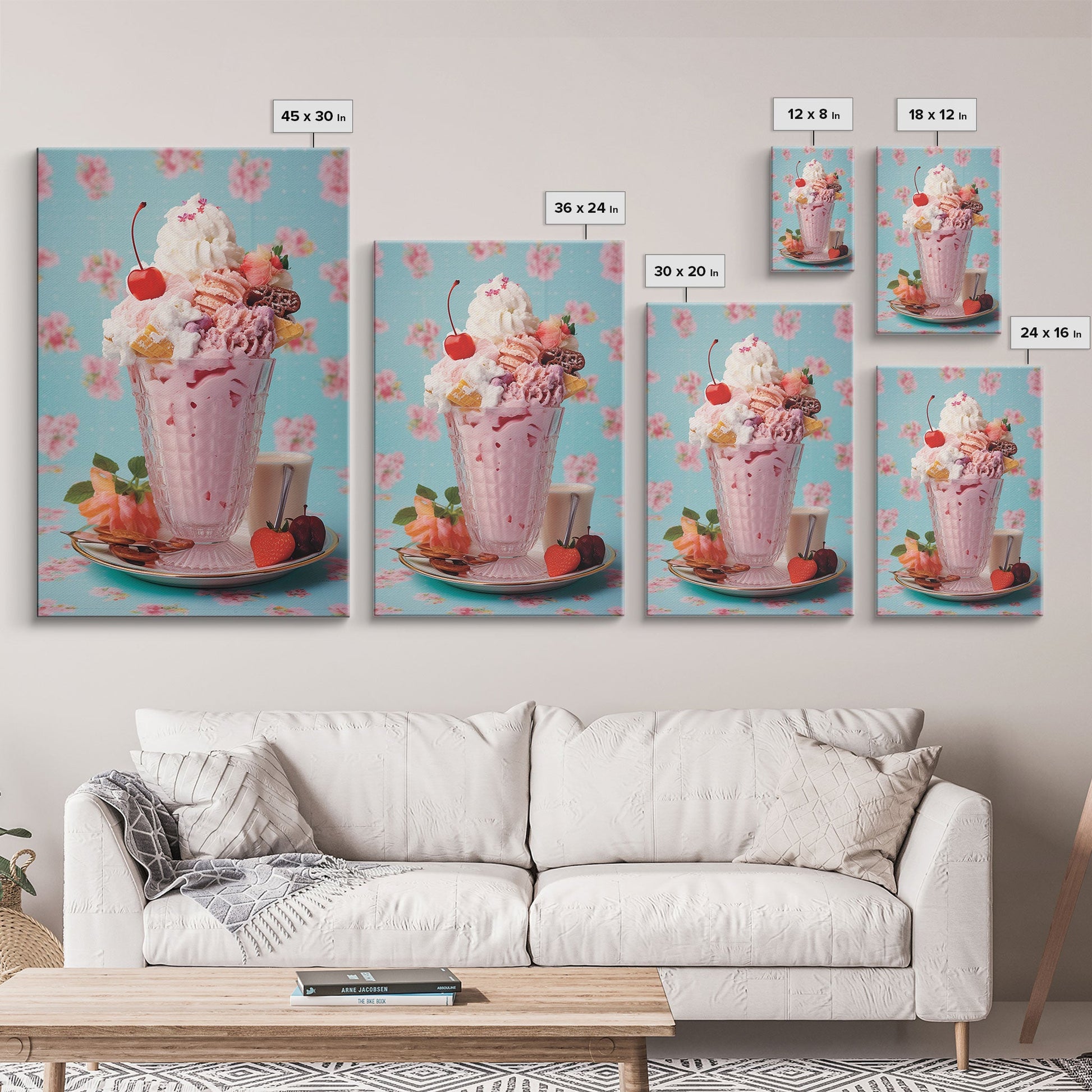 A Strawberry Sunday, Ice Cream Art, Framed Canvas Print, Ice Cream Parlor Decor, Icecream Shop Wall Art, MCM Style Decor, Kitchen decor