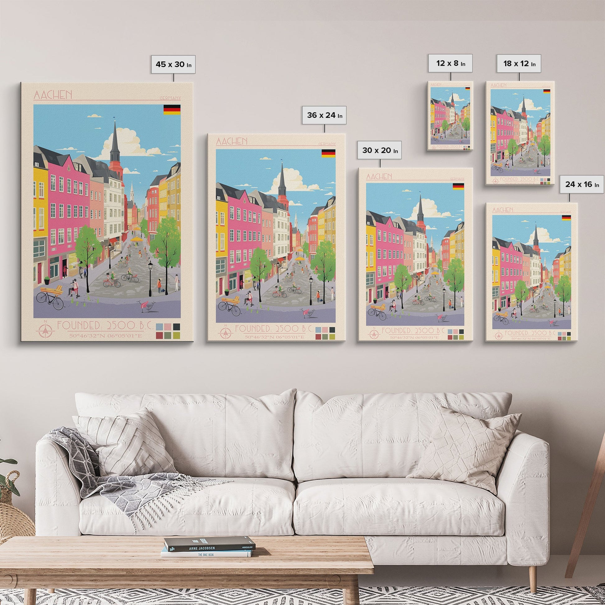 Aalborg Denmark Travel Poster Framed Canvas Print, Midcentury Modern Art, Pop Art Decor, Wall Art, Vacation Gift, Living Room Decoration, Scenic Print