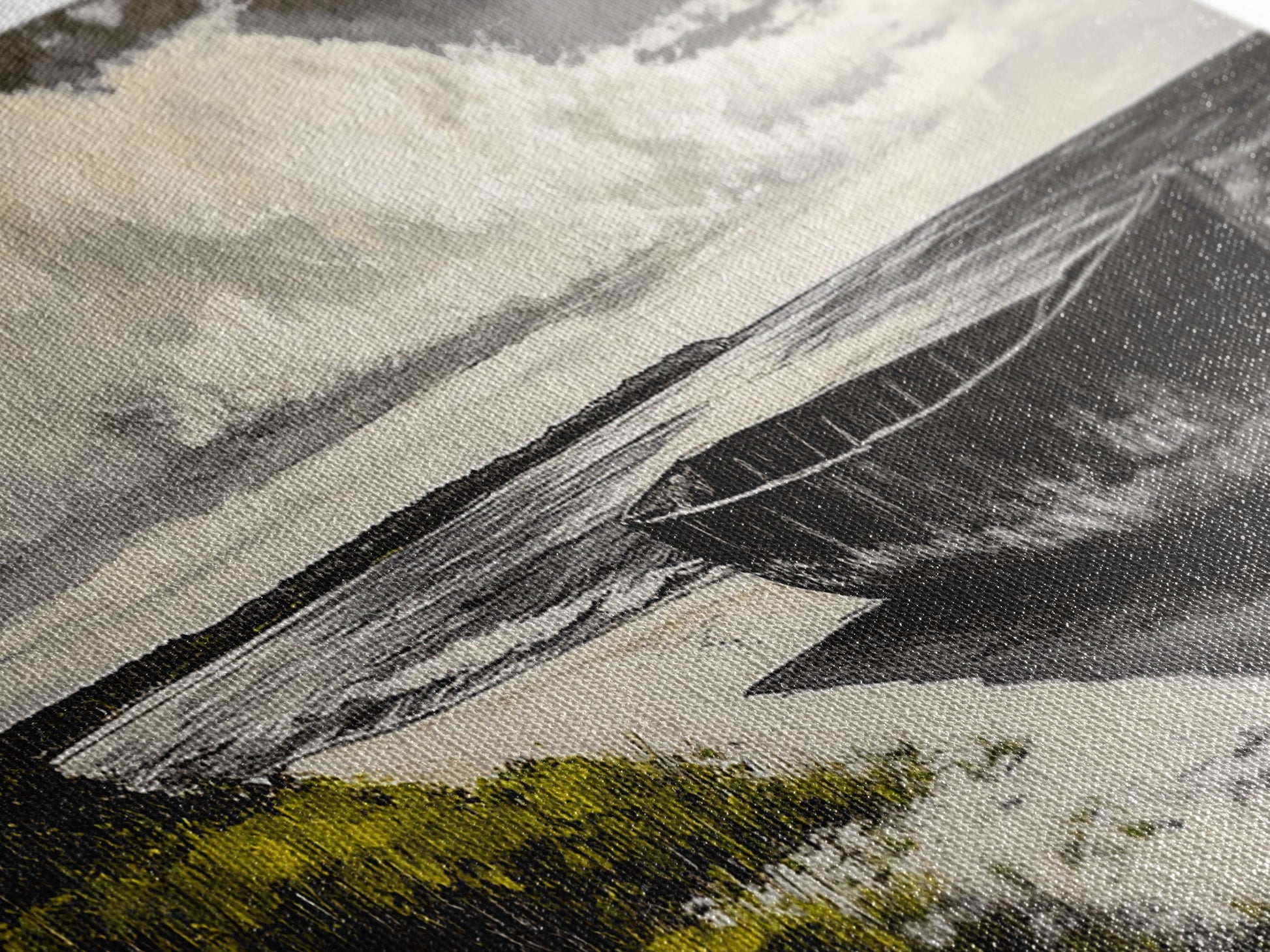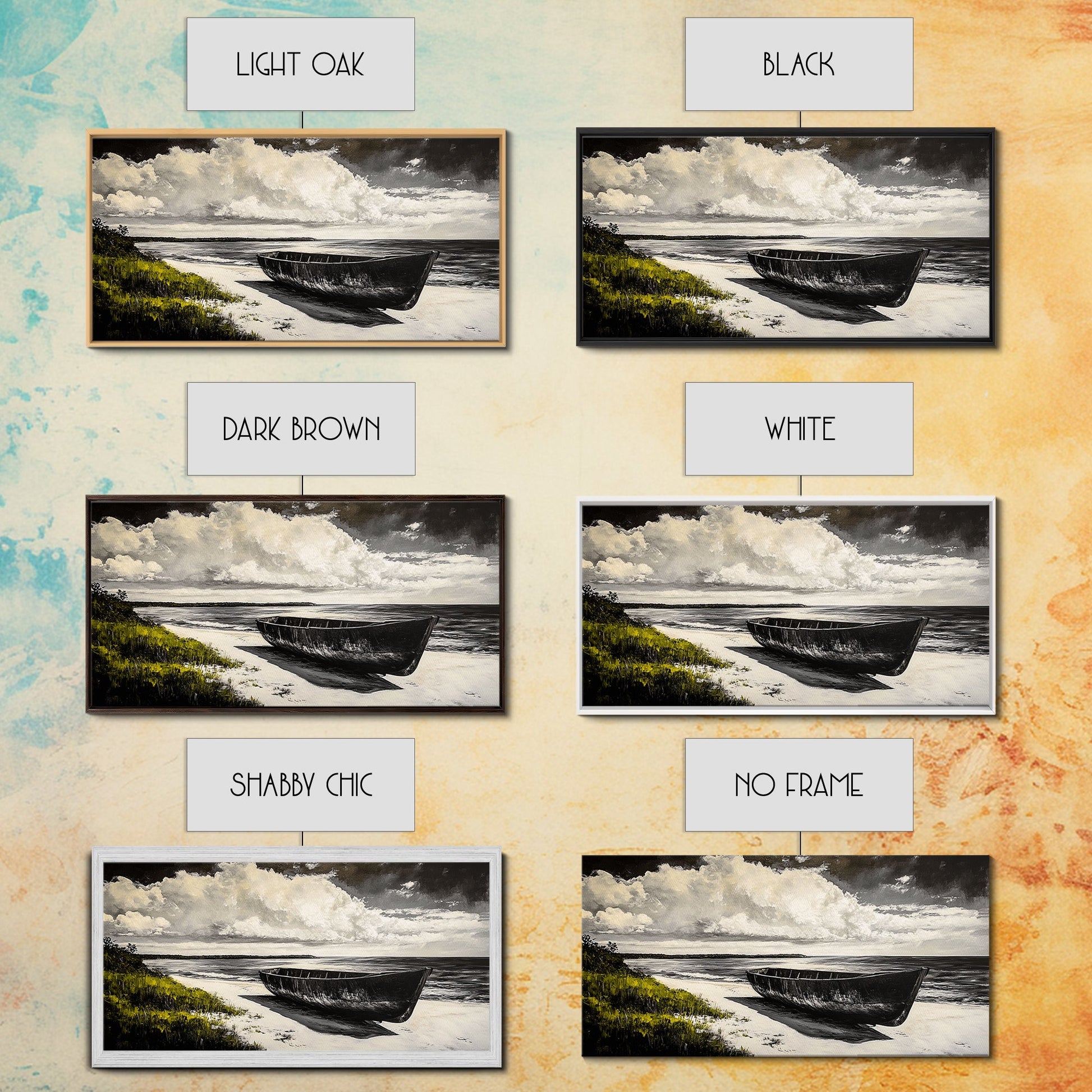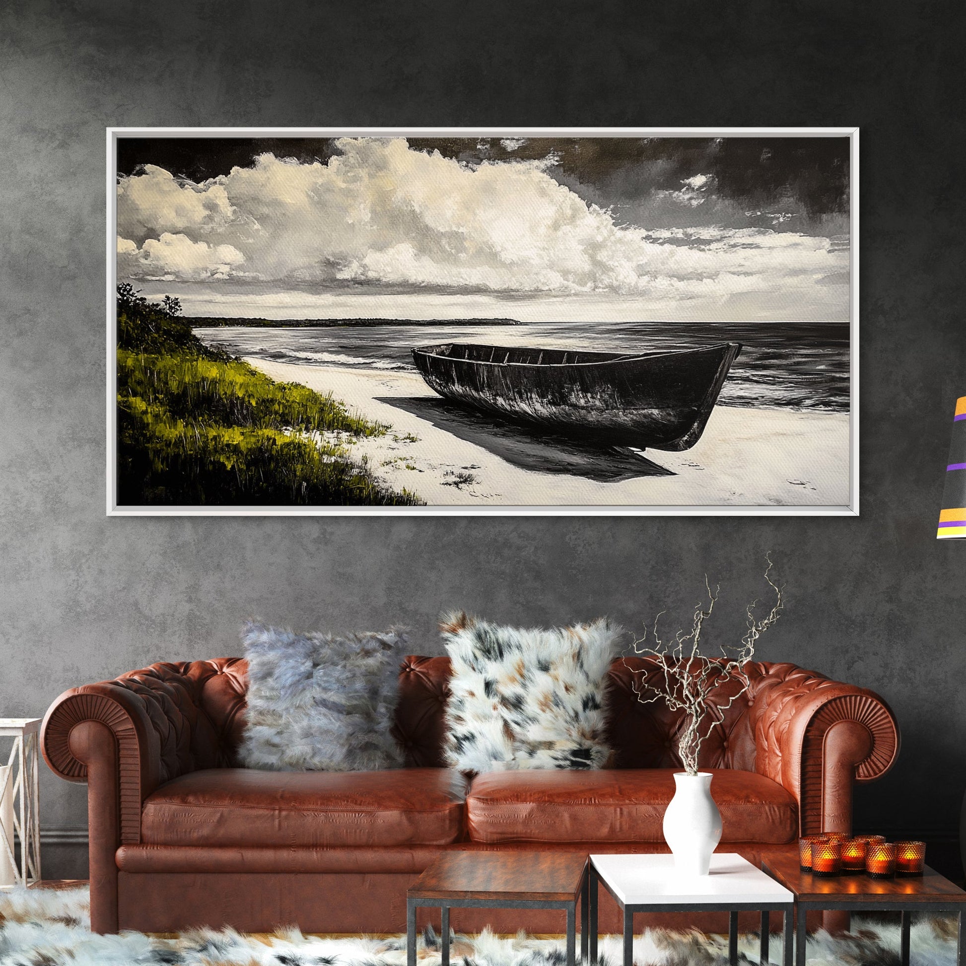 Abandoned Boat, Black White, Seaside Art, Framed Canvas Print, Rustic Beach Decor, Nautical Wall Art, Coastal Print, Office Decor
