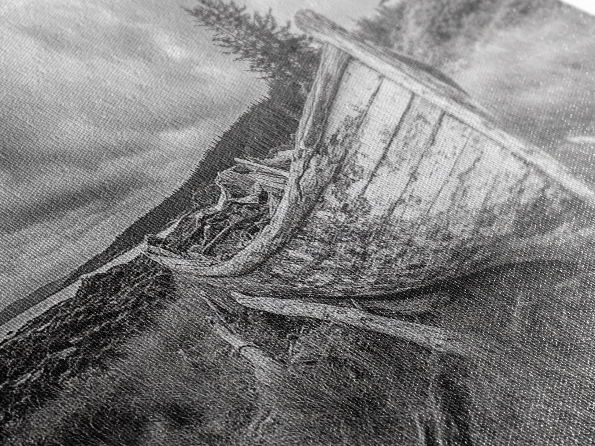 Abandoned Boat, Weathered Vessel, Coastal Forest, Framed Canvas Print, Farmhouse Wall Art, Rustic Cabin Decor, Autumn Vibe, Living Room Art