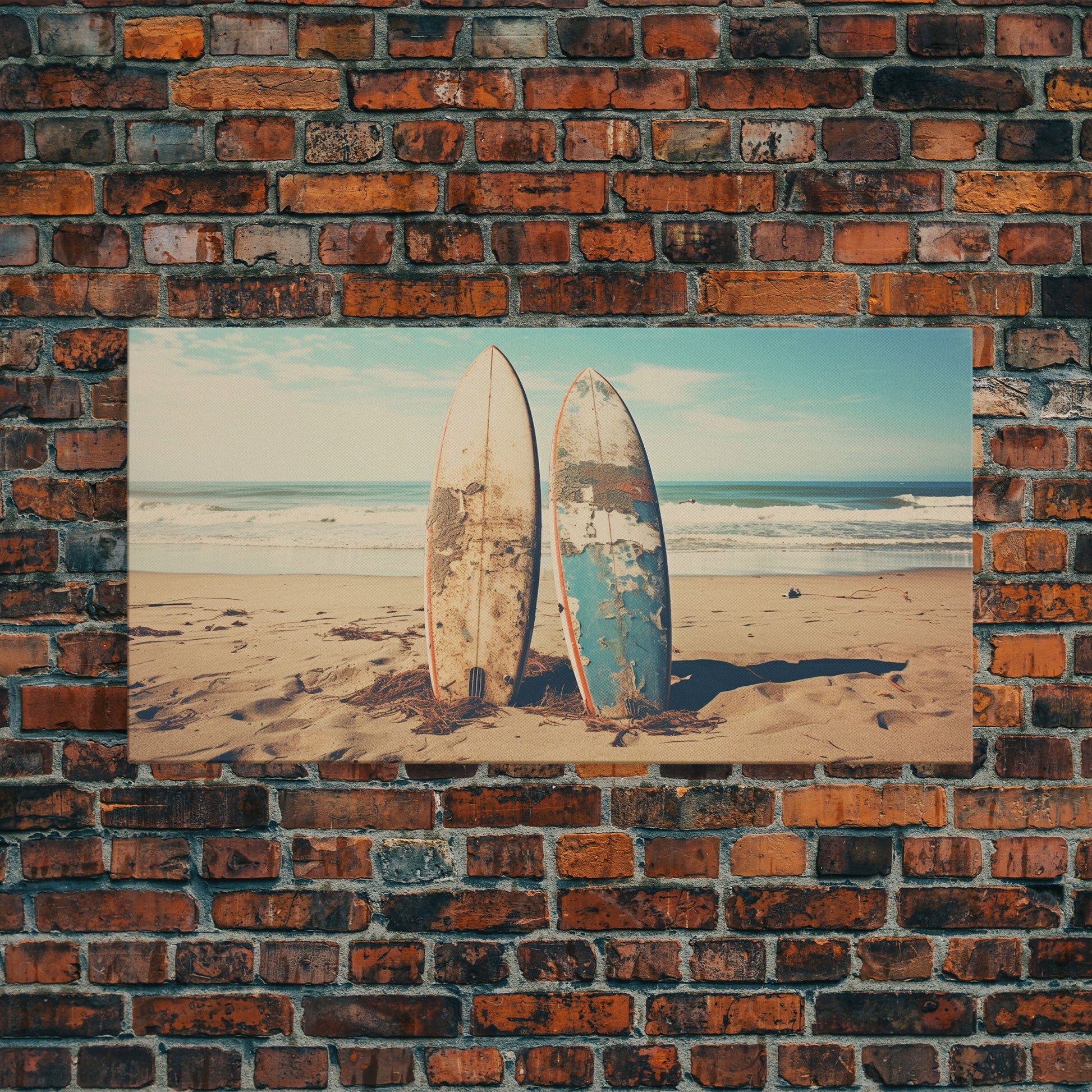 Abandoned Surfboards On Miami Beaches In the 1980s - Framed Canvas Print - Photography Print - Vaporwave Aesthetic Wall Art