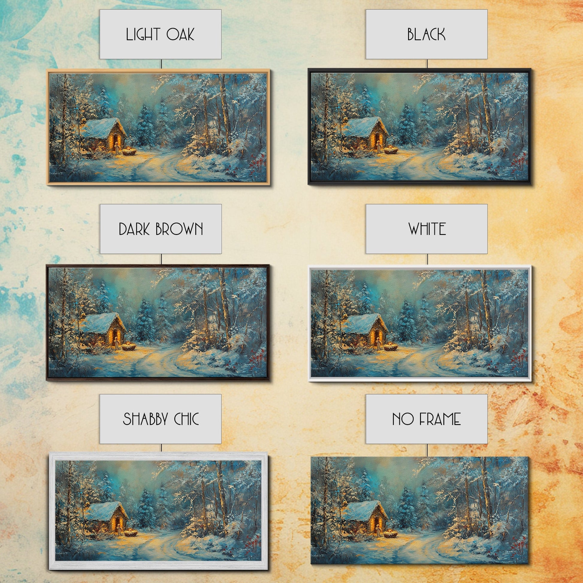 Above Mantle Christmas Wall Art, Framed Canvas Print, Cabin Art, Wall Art For Cabin, Winter Landscape Painting, Winter Themed Home Decor