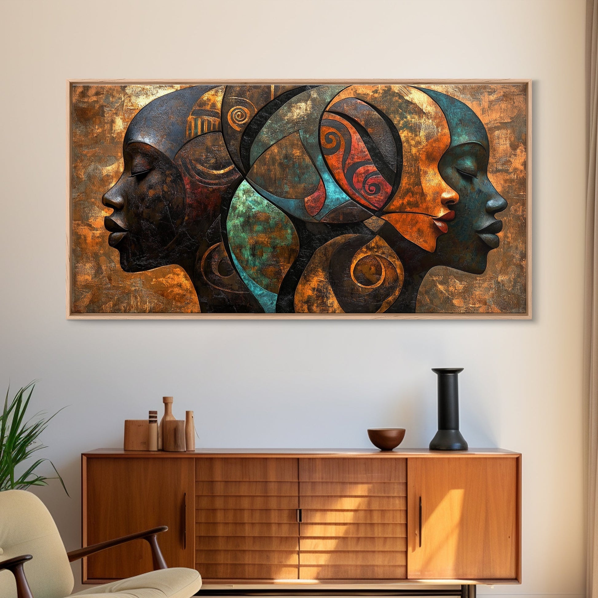 Abstract African Faces Framed Canvas Print, Afrocentric Wall Decor, Moody African Art, Geometric Bold Bedroom Art Gift Idea
