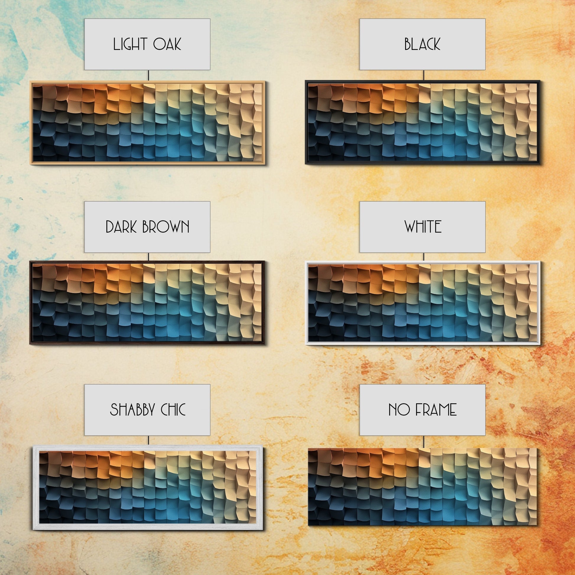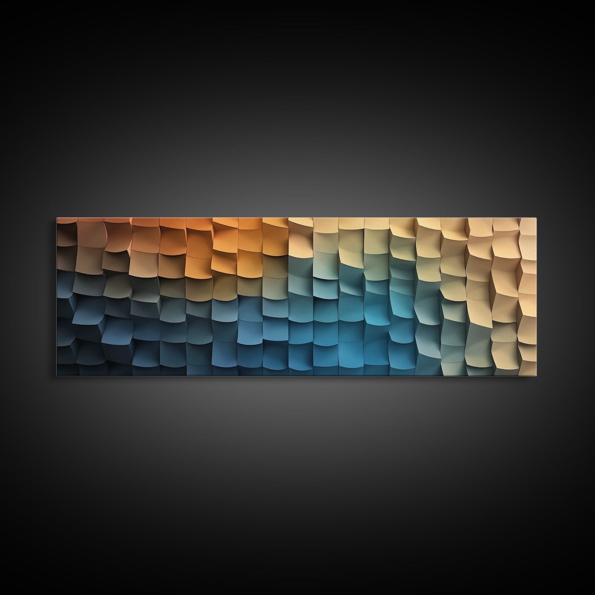 Abstract Art - Coastal Cubism - Framed Canvas Print - Panoramic Geometric Art - Unique Home Decor