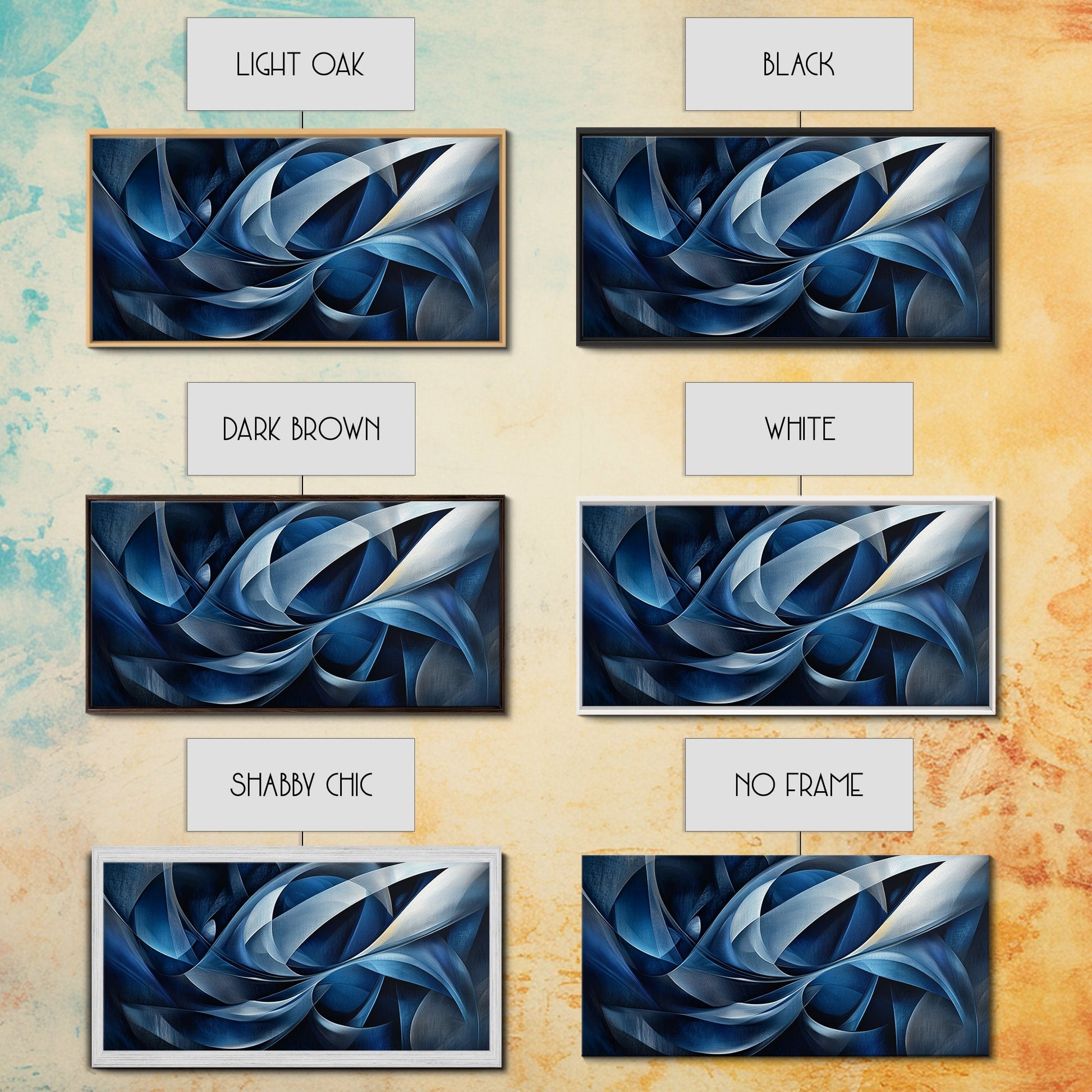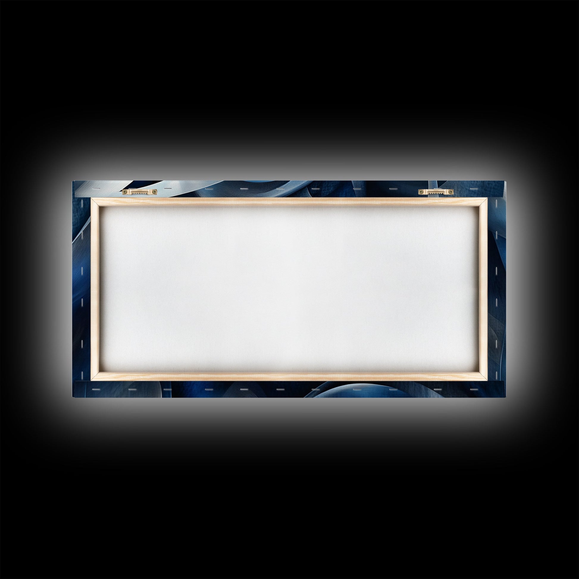 Abstract Blue Swirls Canvas Print, Geometric Wall Art Horizontal Decor, Moody Modern Artwork Gift Idea Living Room Panoramic Art