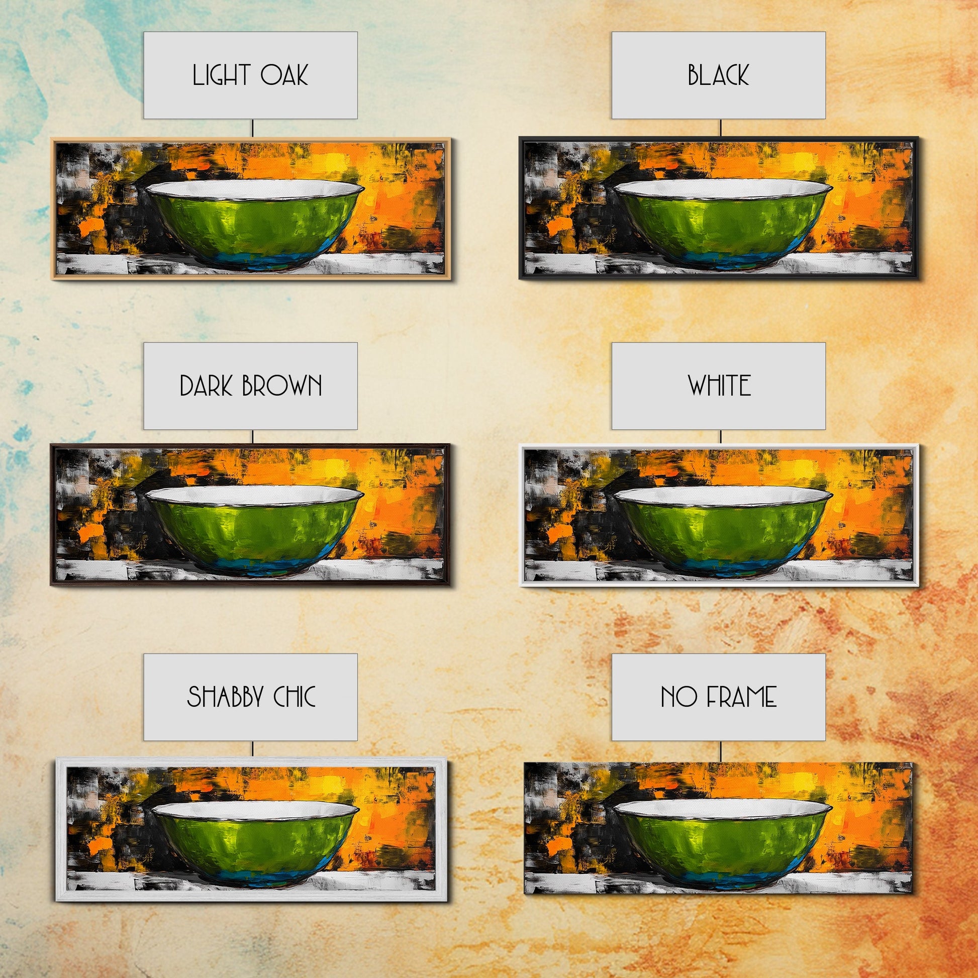 Abstract Bowl, food review kitchen art, wabi sabi art, green wall art, rustic wall art, modern decor, Framed Canvas Print, therapy art