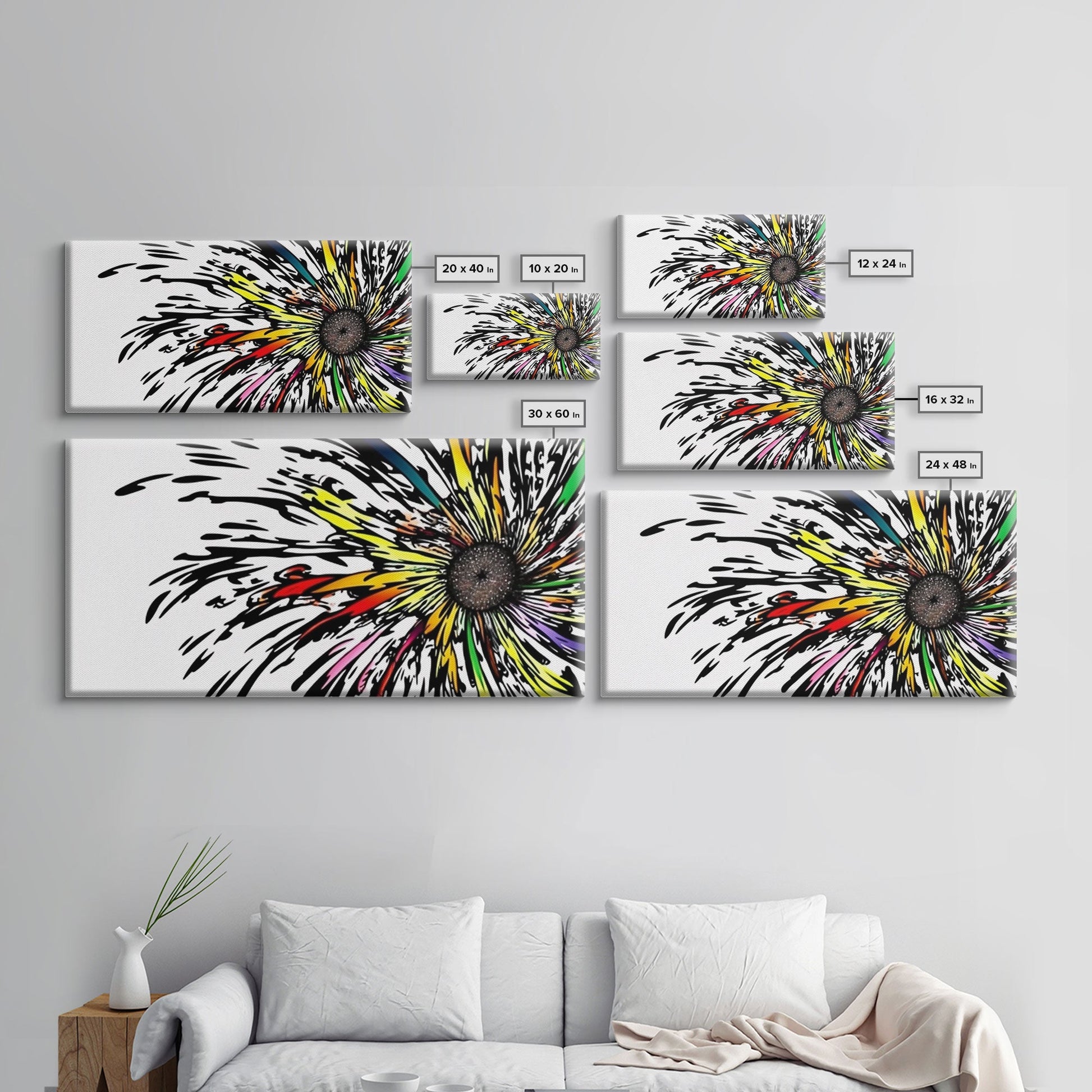 Abstract Flower Art - Exploding Flower - Rainbow Flower Painting / Canvas Print - Framed Wall Art - Unique Minimalist / Expressionist Art