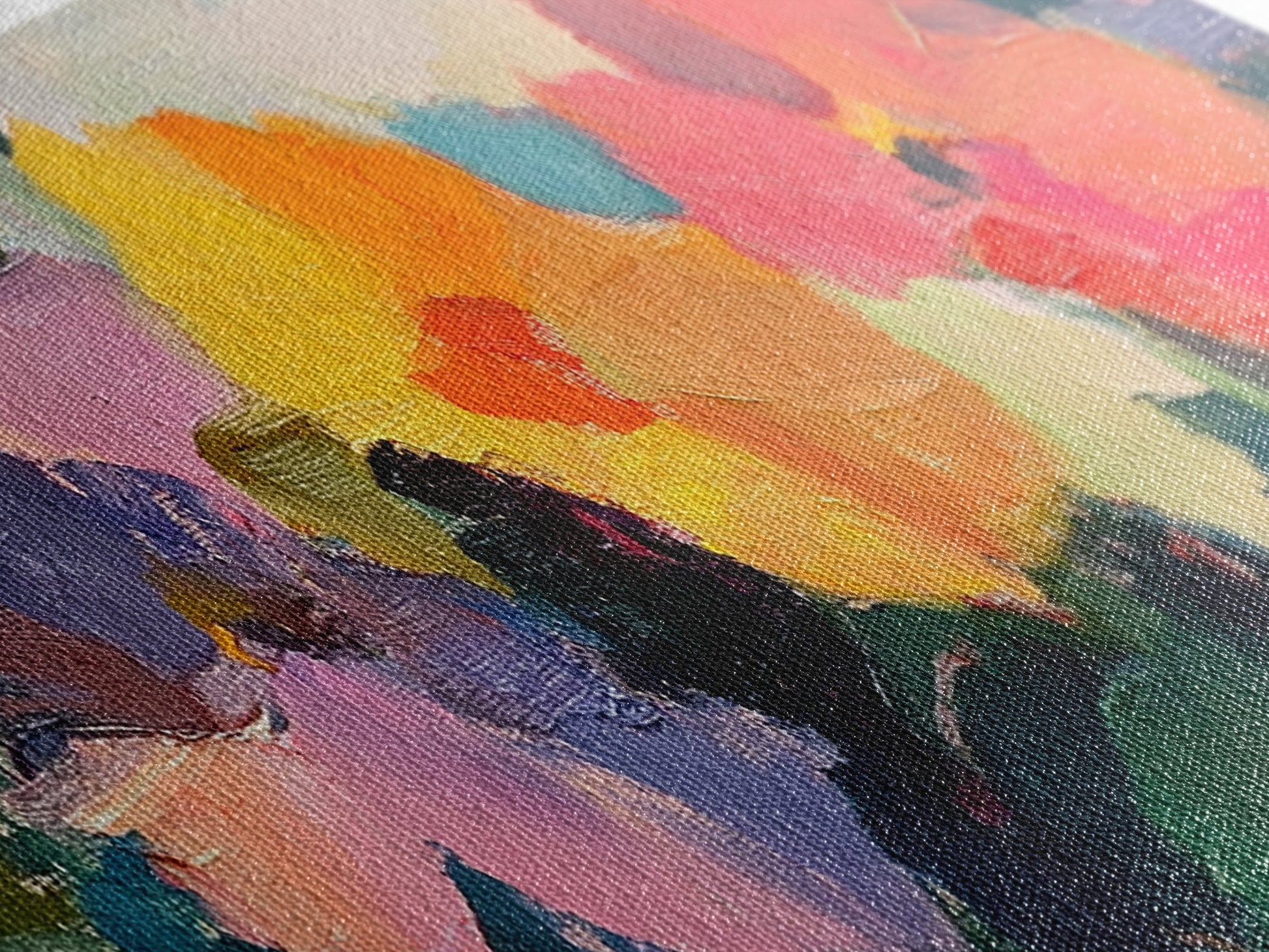 Abstract Flowers Panoramic Painting Print, Oil Painting Wood Framed Canvas Print, Boho Modern Art, Modern Farmhouse Decor