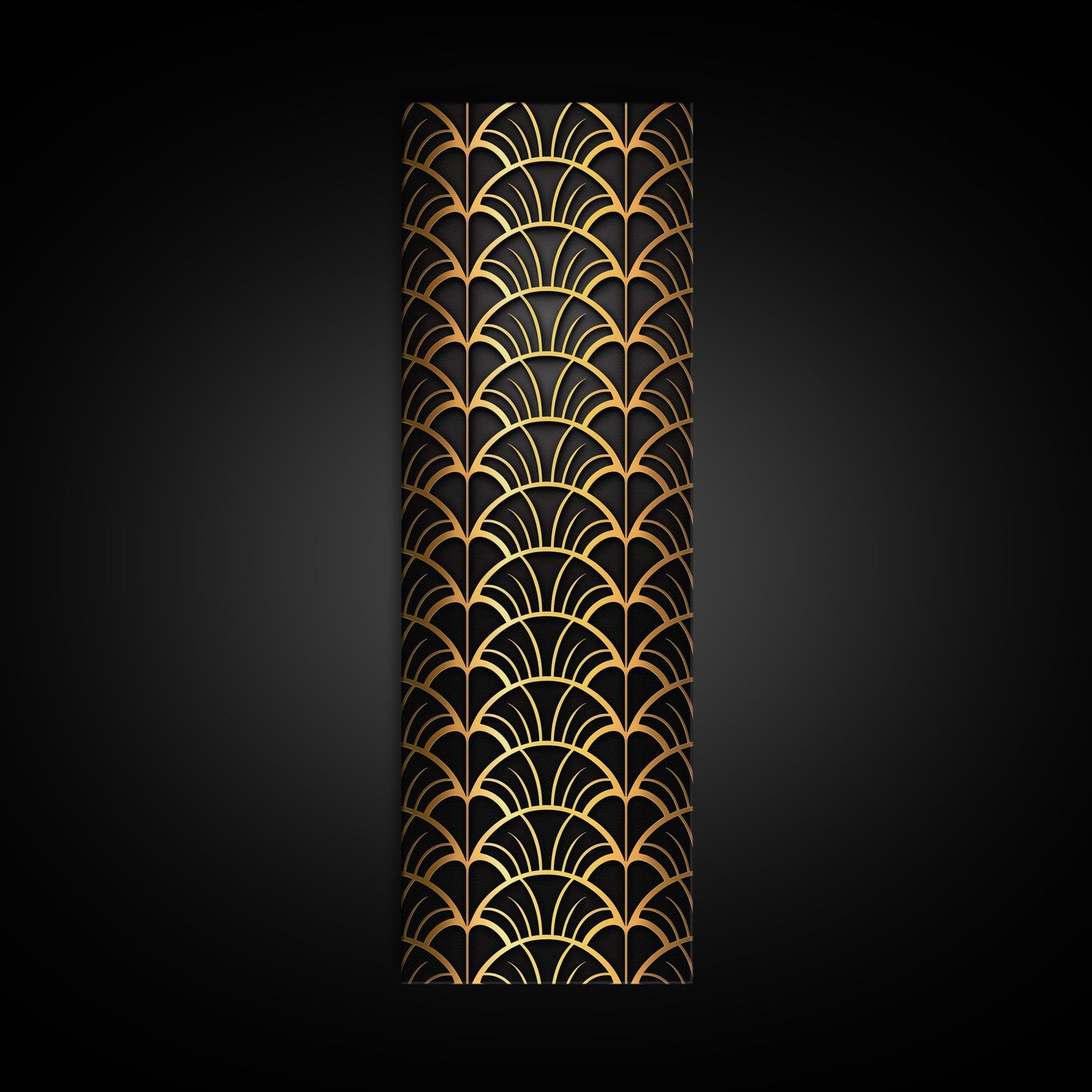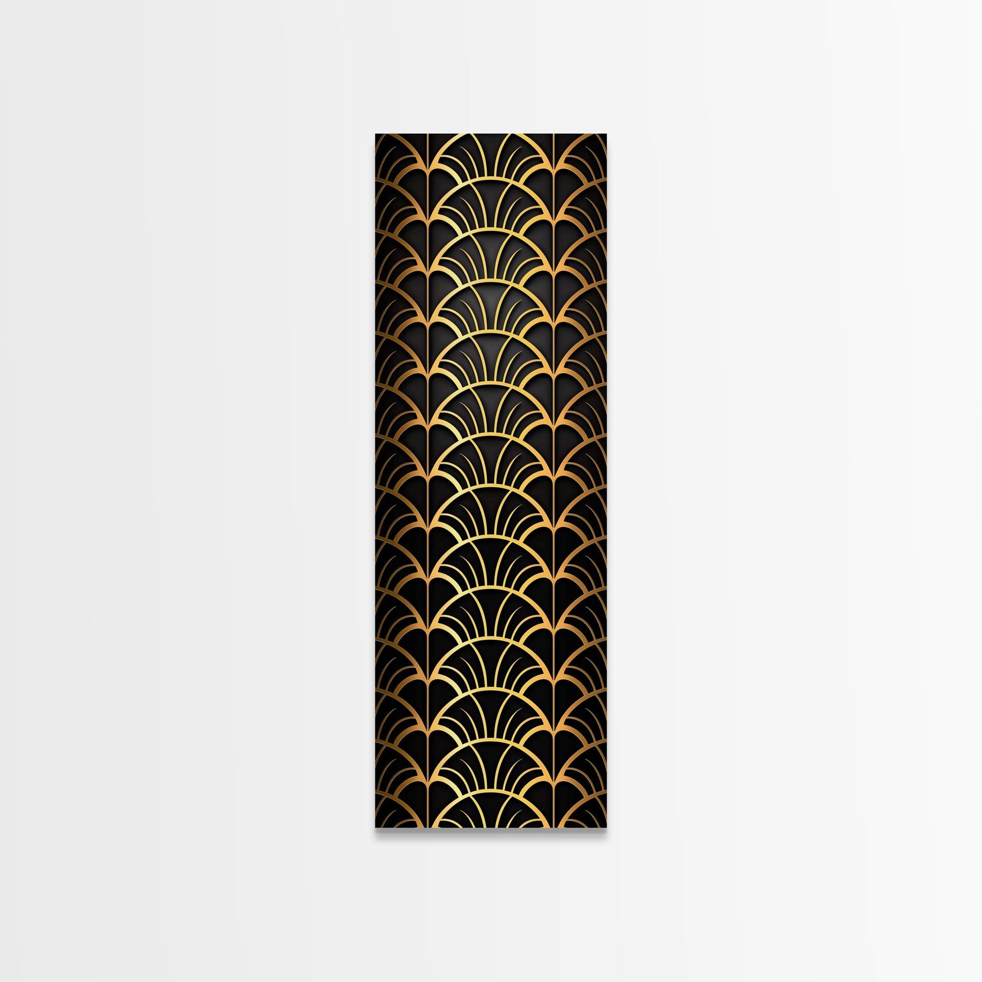 Abstract Gold Geometric Pattern on Black Background - Framed Canvas Print, Art Deco Style, Skinny Art, Tall Art, Midcentury Modern Art, Living Room Wall Decor