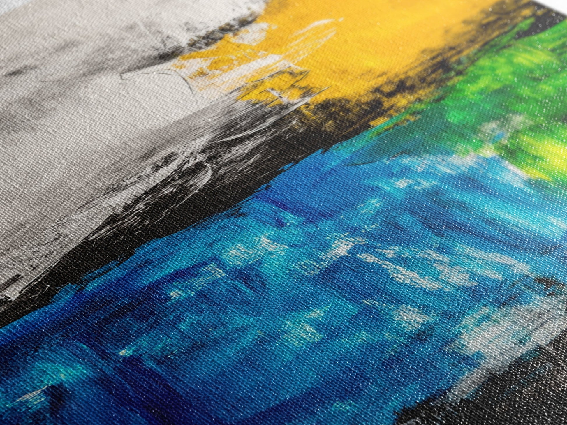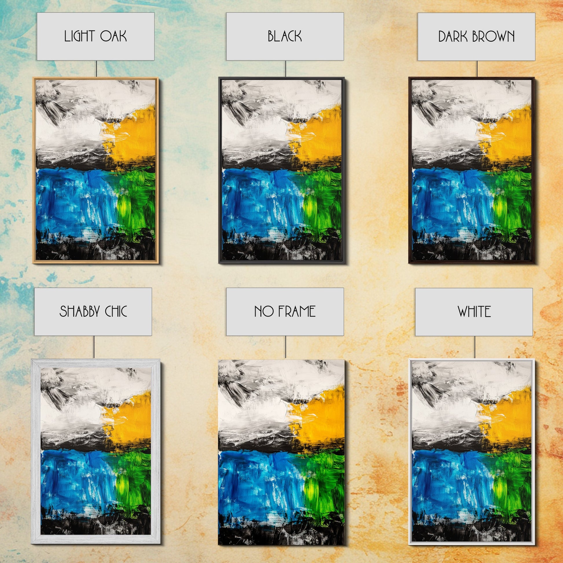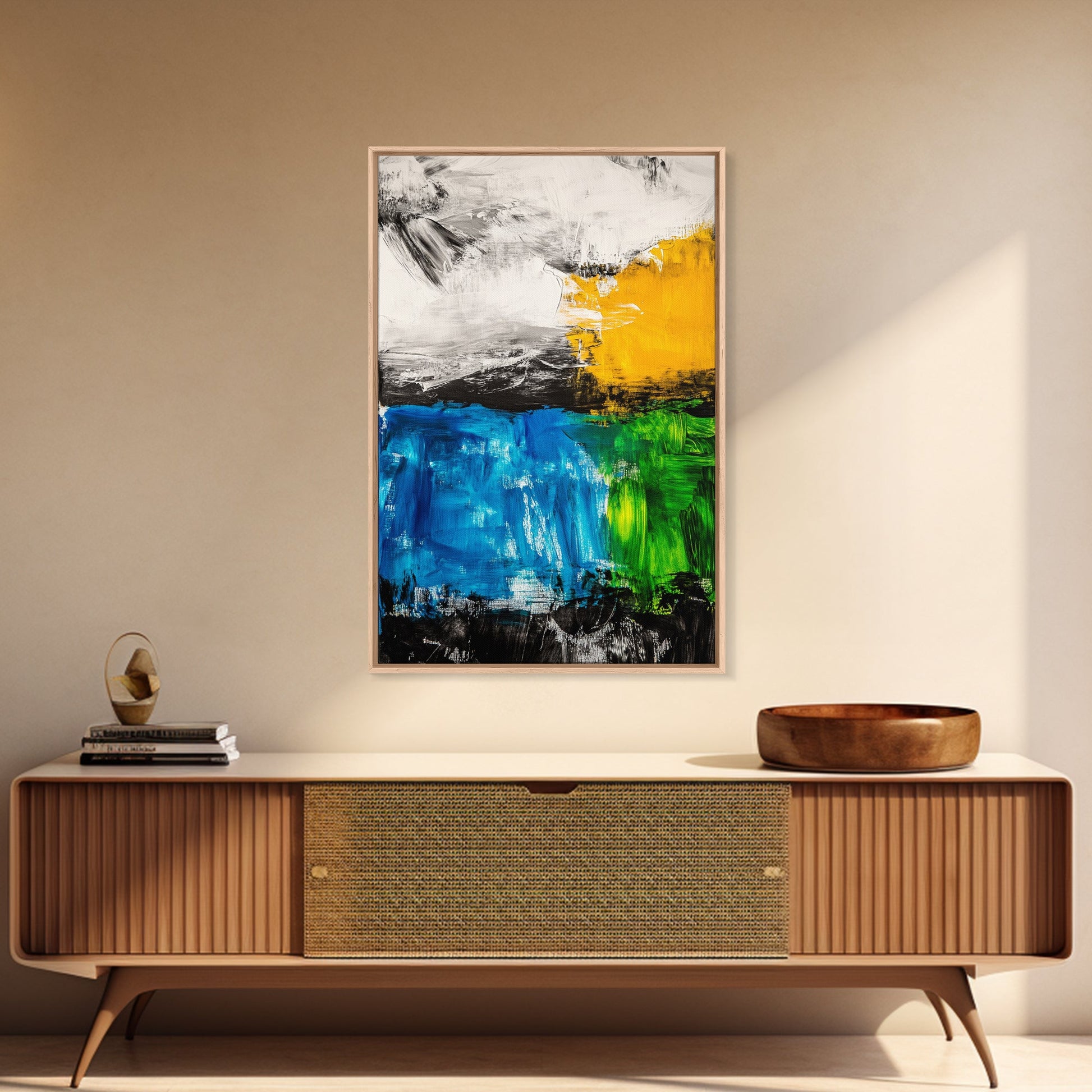 Abstract Landscape, Blue and Yellow Modern Painting, Minimalist Nature Art, Framed Canvas Print, Living Room or Office Wall Decor