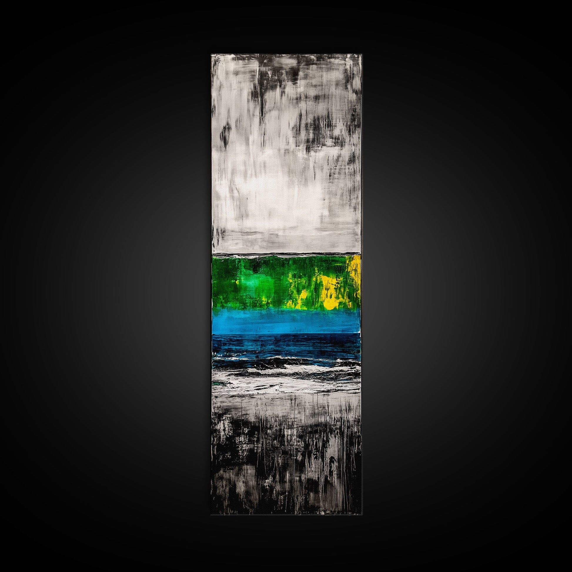 Abstract Landscape, Green and Blue, Modern Minimalist, Framed Canvas Print, Contemporary Wall Art, Office Decor, Living Room Artwork