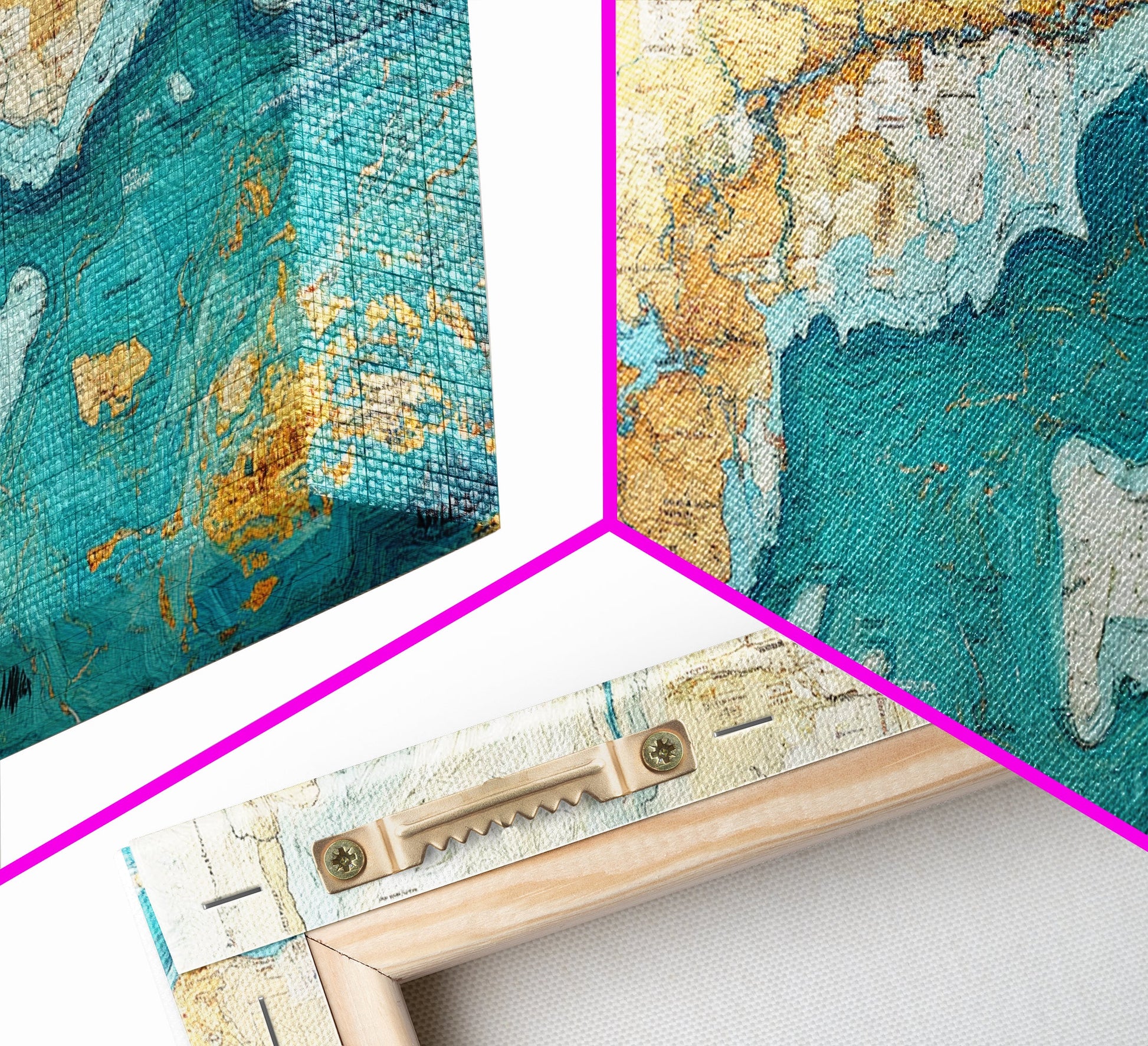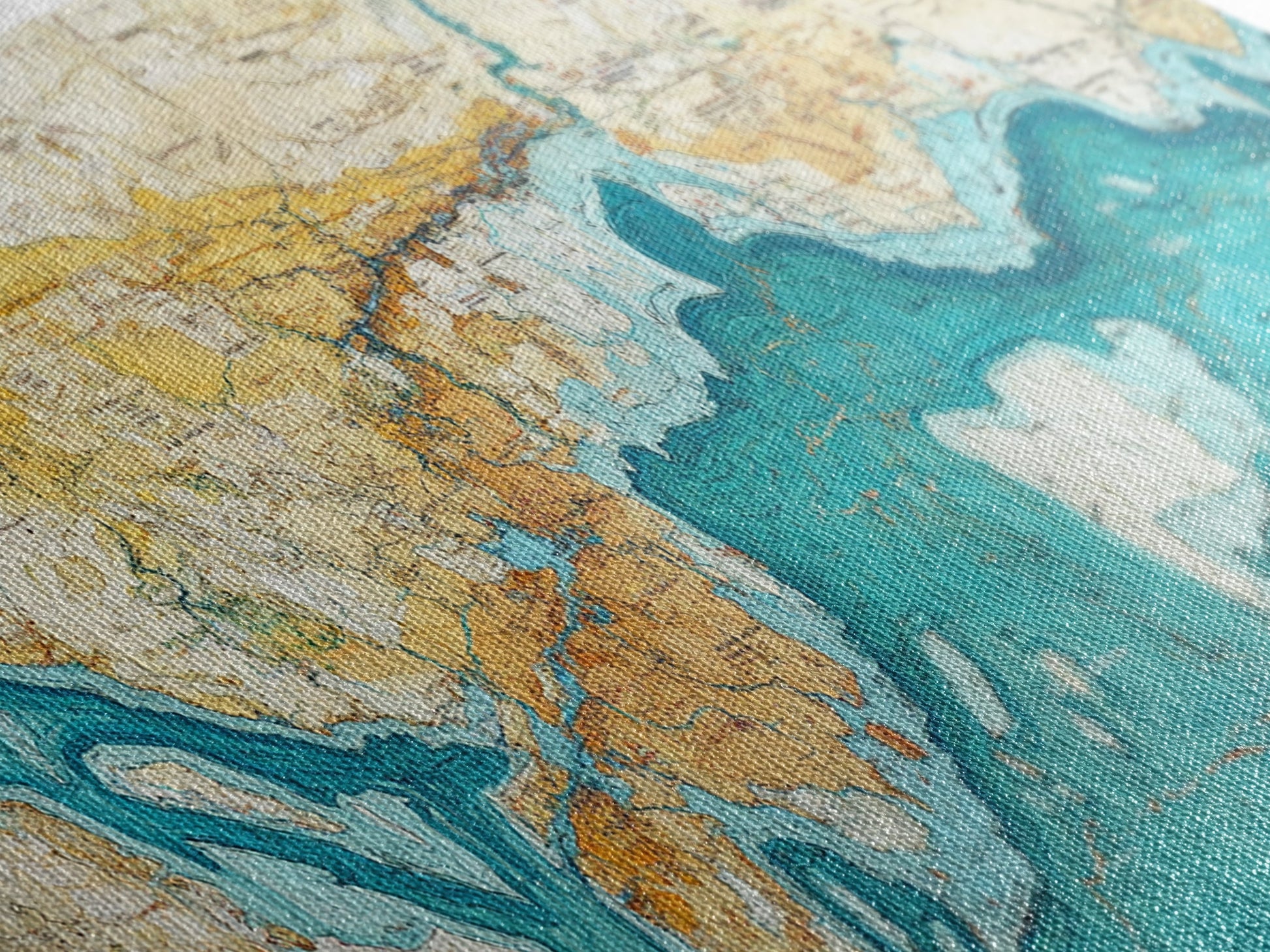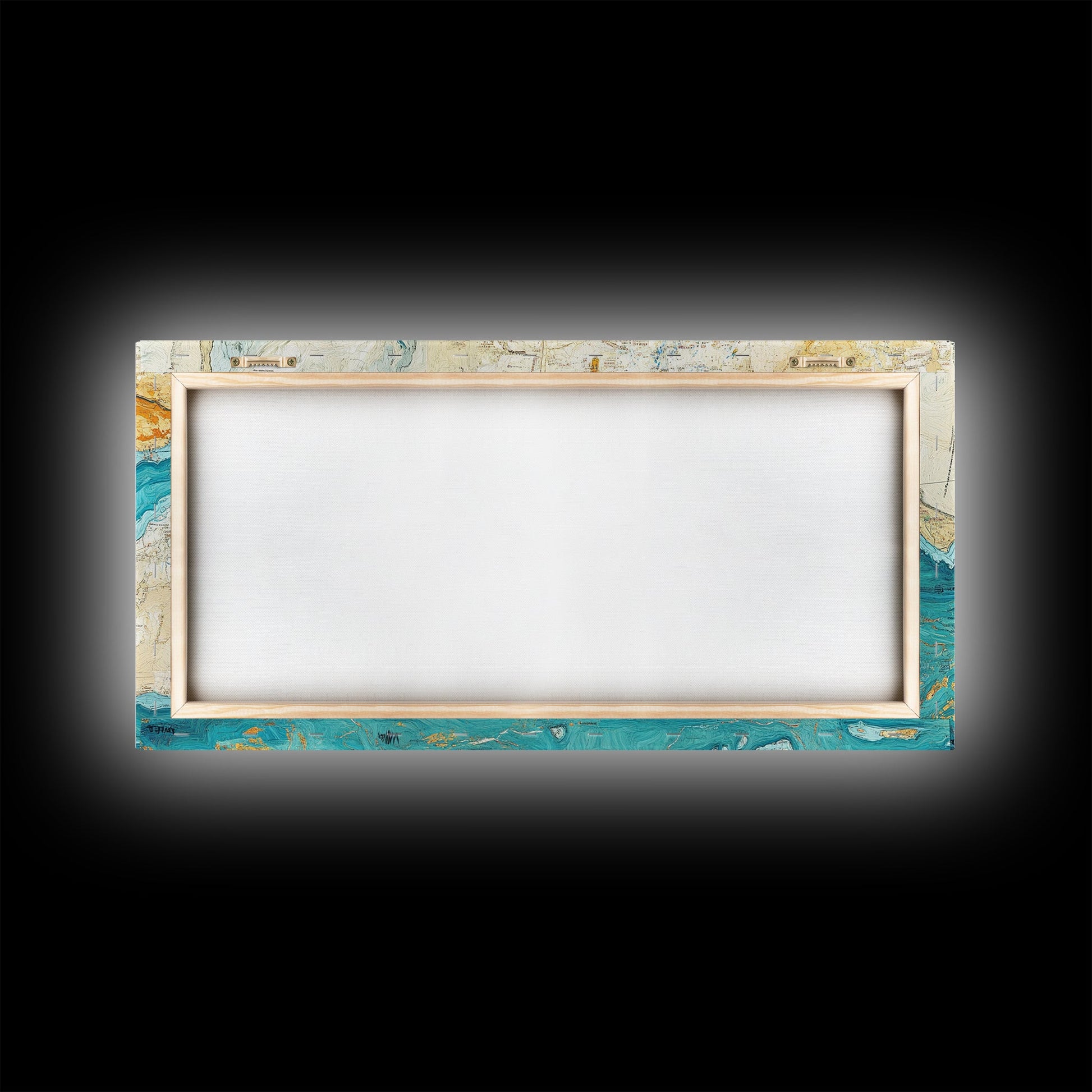 Abstract Map Art, Coastal Decor, Nautical Painting, Extra Wide Art, Framed Canvas Print, Blue and Green Wall Art