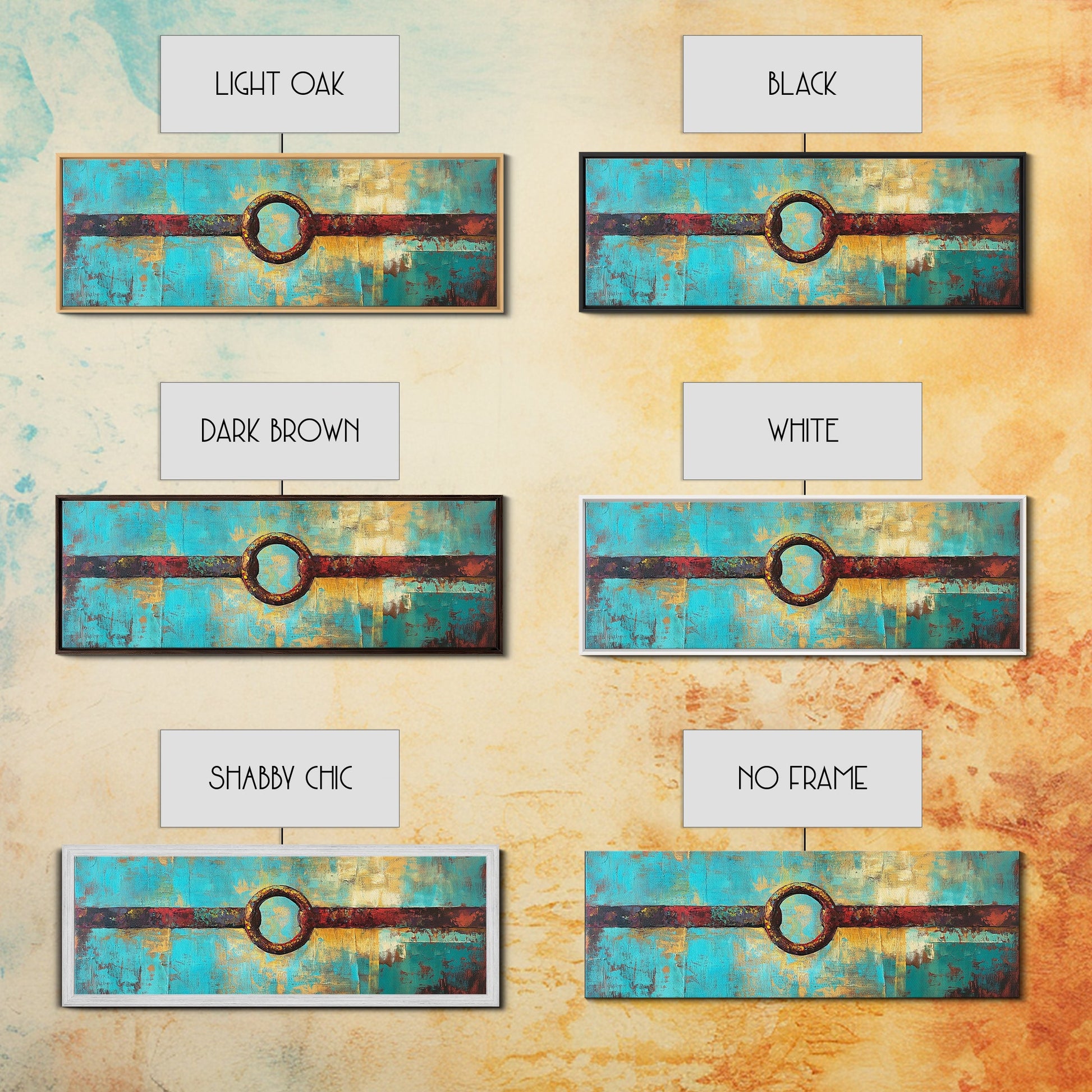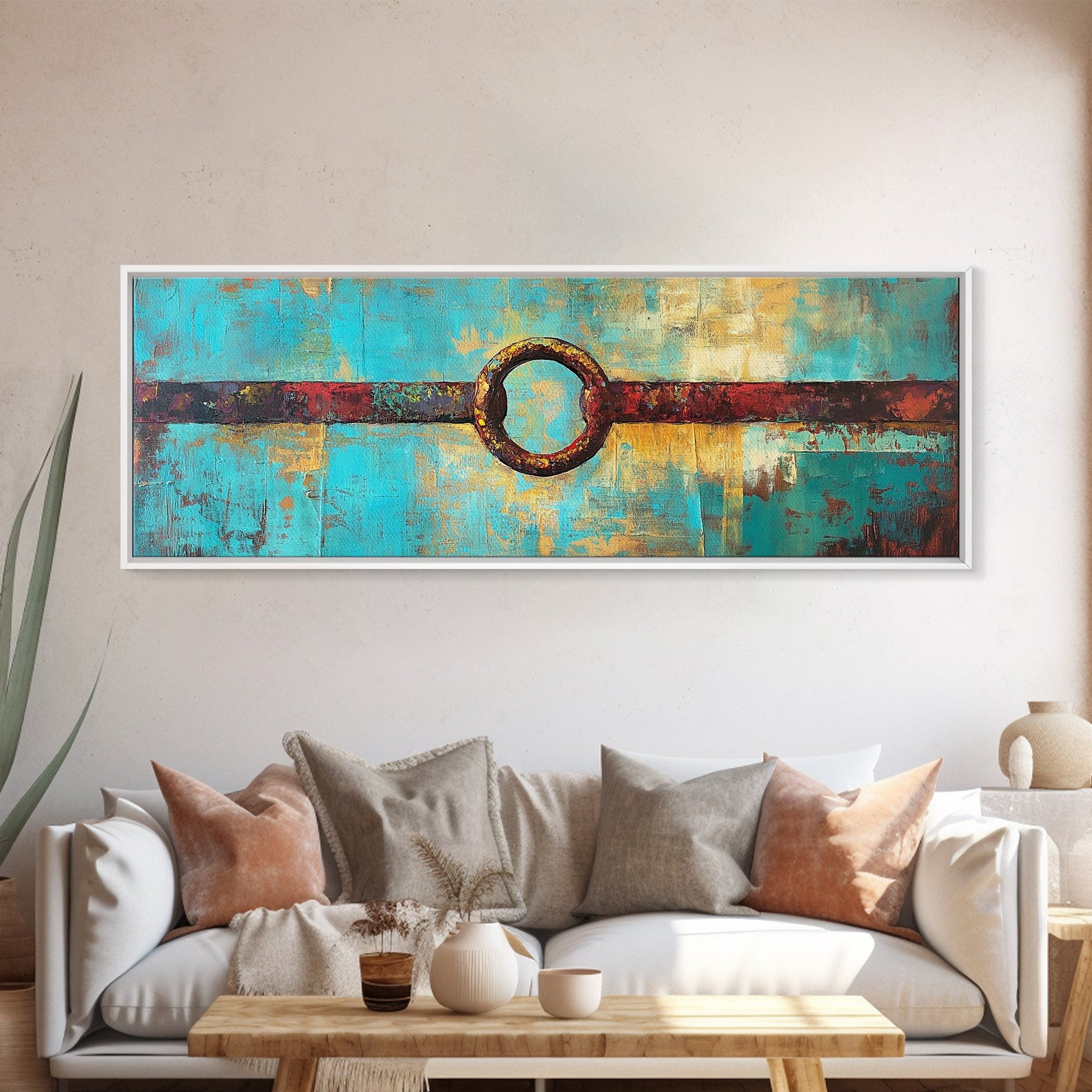 Abstract Metal Ring, geometric wall art, southwest wall art, rustic decor, moody art, tall narrow art, wabi sabi art, Framed Canvas Print