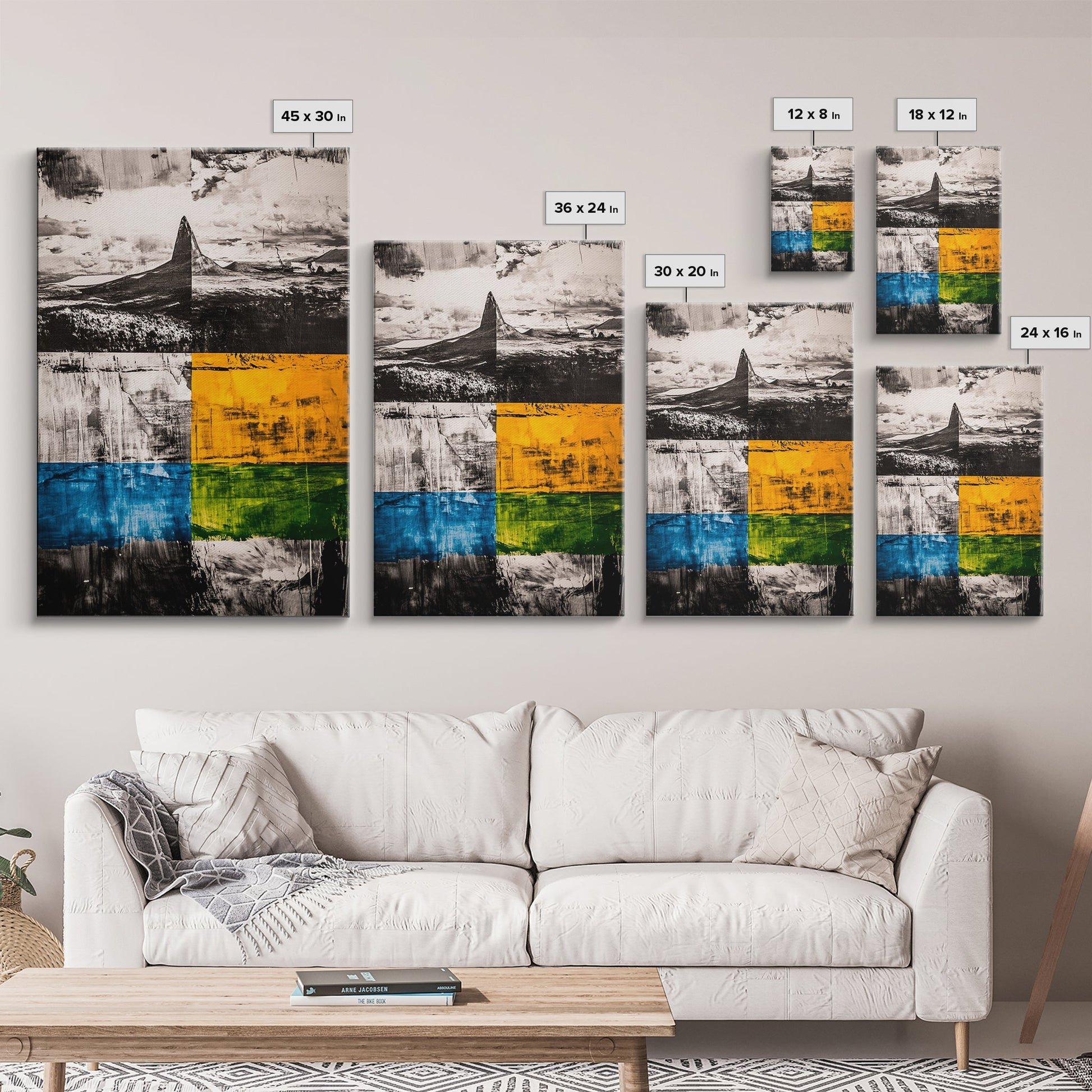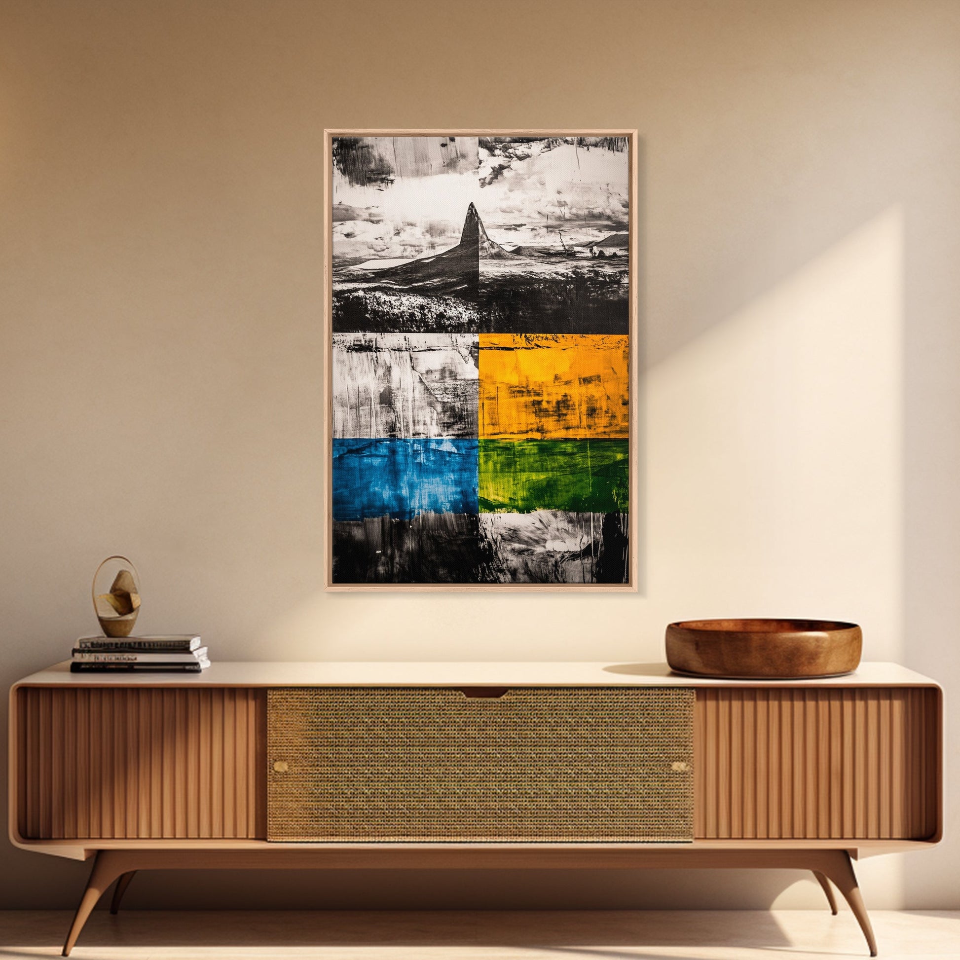 Abstract Mountain, Black and White, Geometric Art, Framed Canvas Print, Modern Wall Decor, Office Art, Minimalist Landscape, Unique Design
