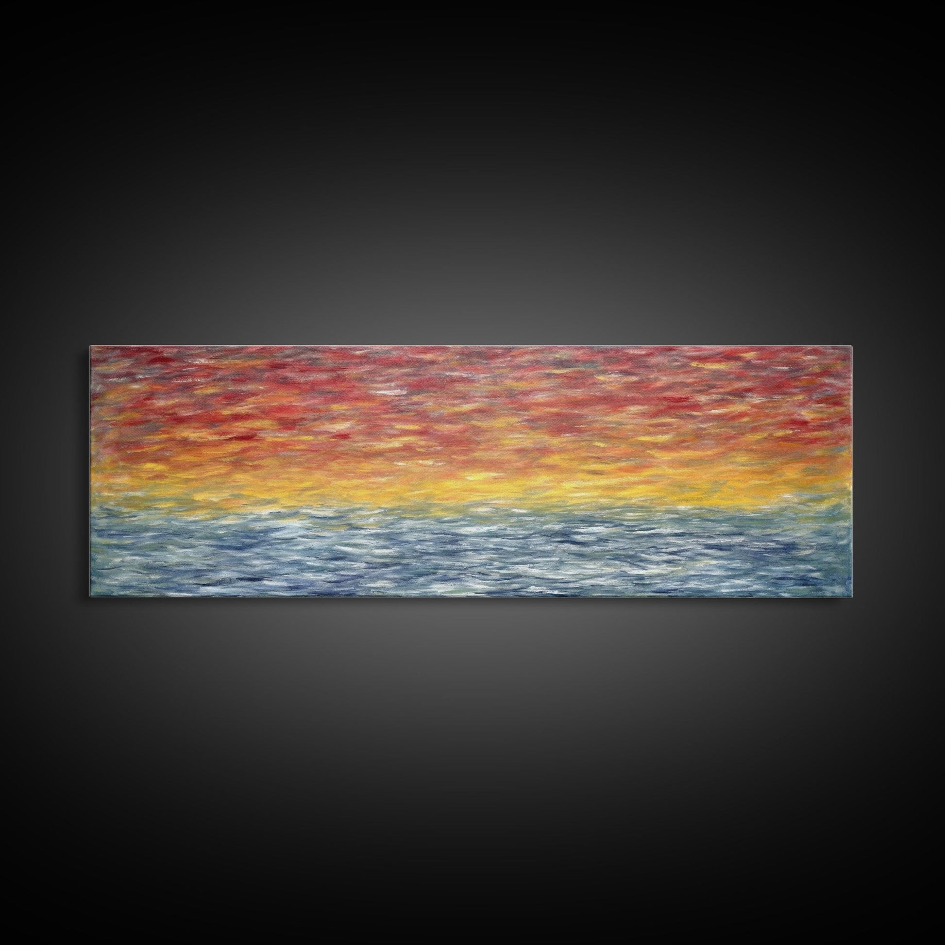 Abstract Ocean Horizon Wall Art, Colorful Abstract, Framed Abstract Print Art, Sunset, Sea, Vibrant Art, Panoramic, Wall Art, Canvas Print