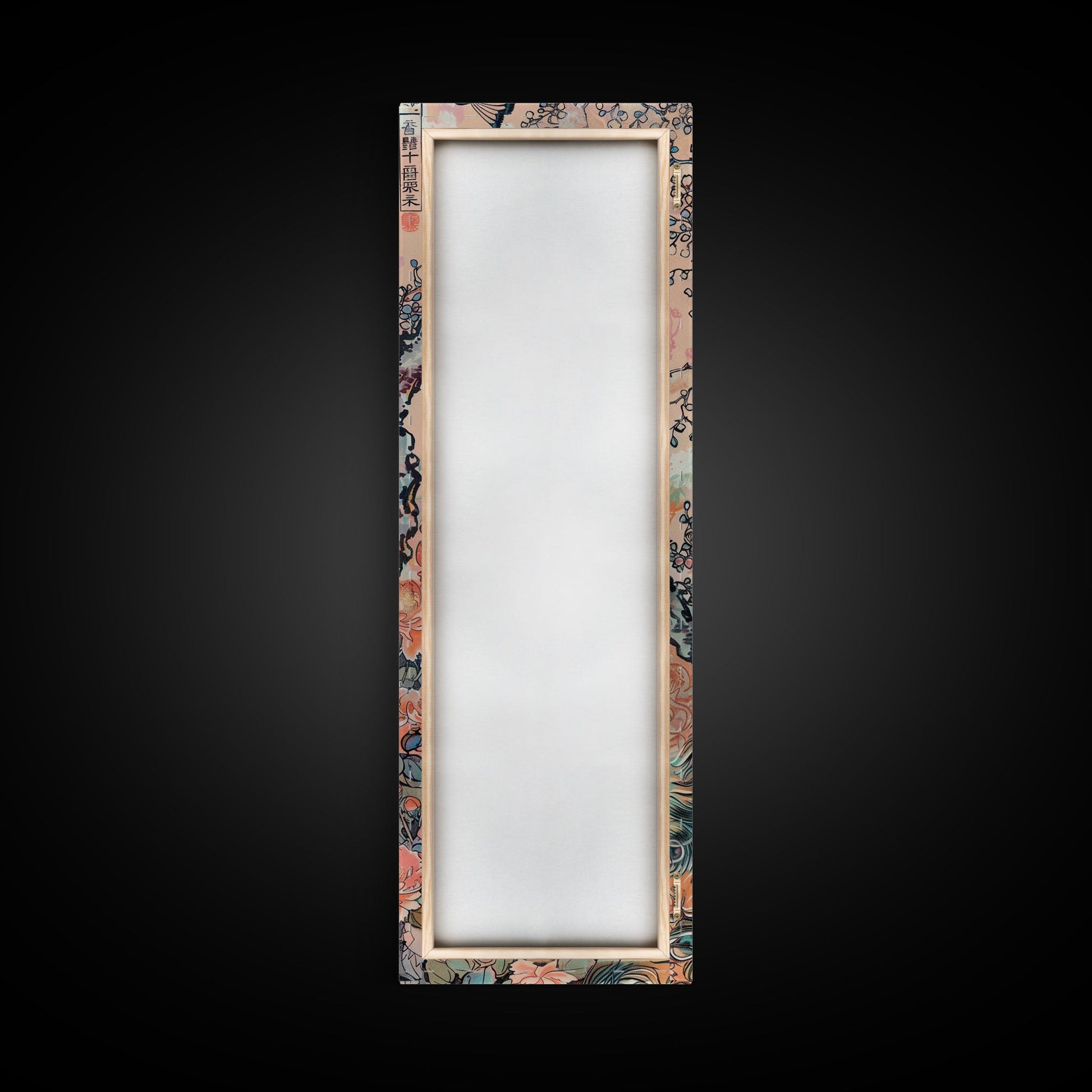 Abstract Rainbow and Waterfall Framed Canvas Print - Tall Skinny Japanese Style Wall Art