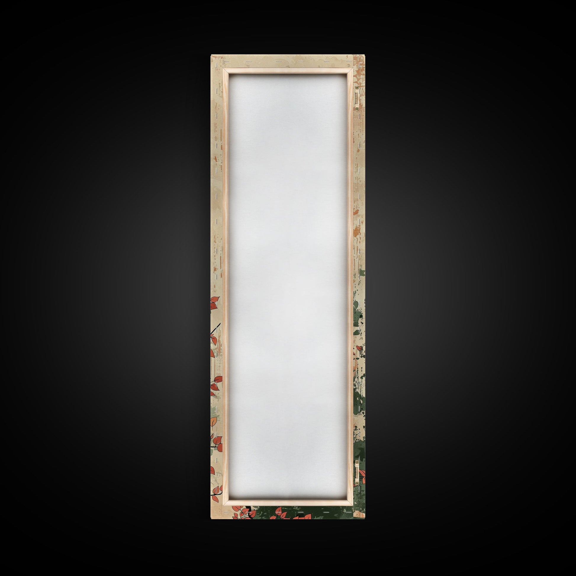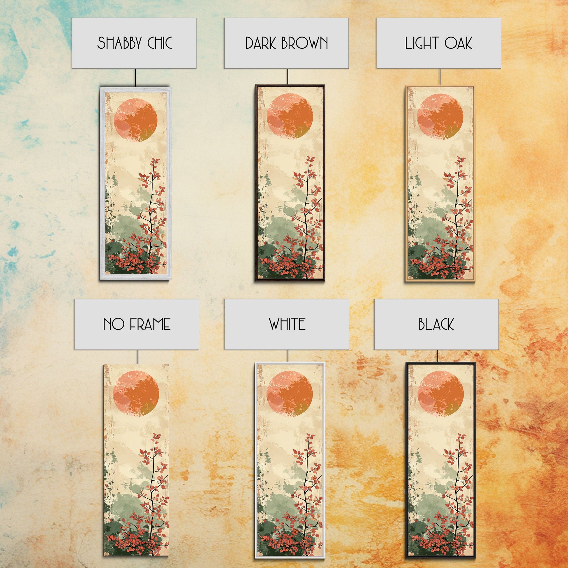 Abstract Sun Over Branch With Red Leaves Framed Canvas Print Ukiyo-e Wall Art Tall Art Wood Block Print Skinny Art Japanese Style
