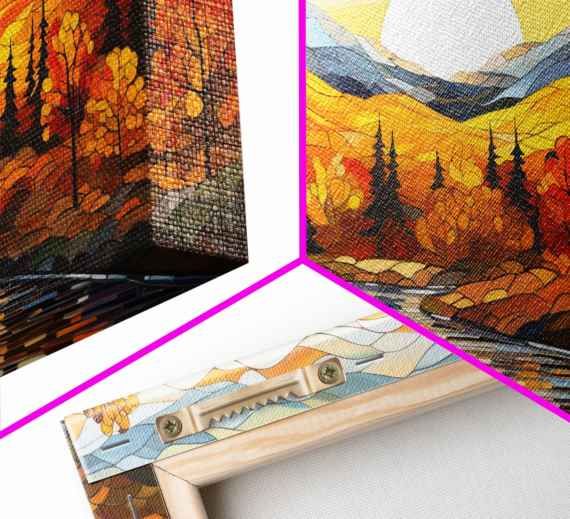 Hello and thank you for taking the time to view our modern high-quality giclée artwork! Printed on extremely durable 350 GSM canvas material with ECO-friendly archival grade ink, then hand-stretched and stapled over premium, FSC certified, and shrink-resistant frames. Designed and built to last a lifetime.