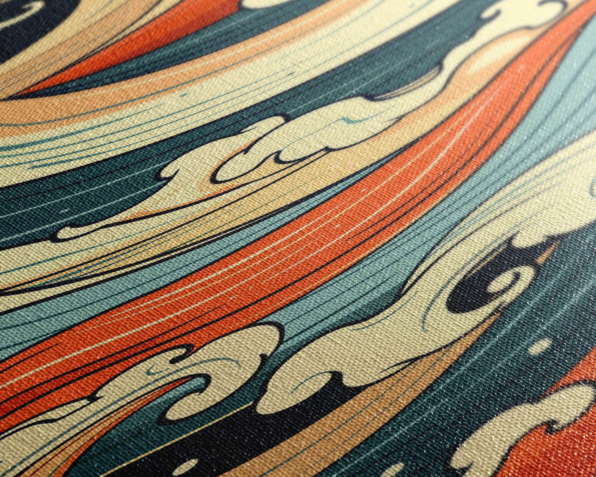 Abstract Wave Pattern With Vibrant Colors - Skinny Art Tall Art Framed Canvas Print Japanese Style Art Ukiyo-e Art