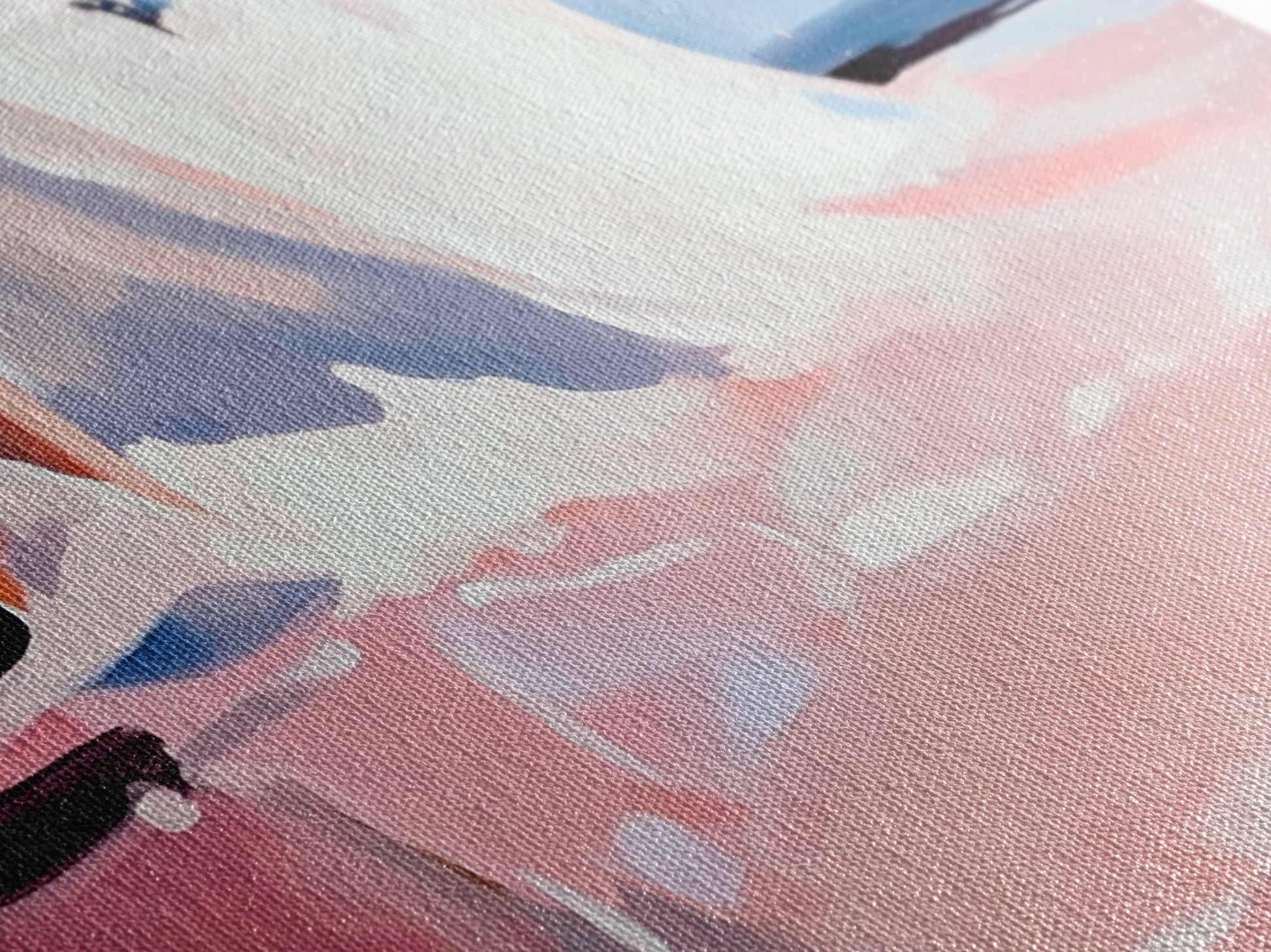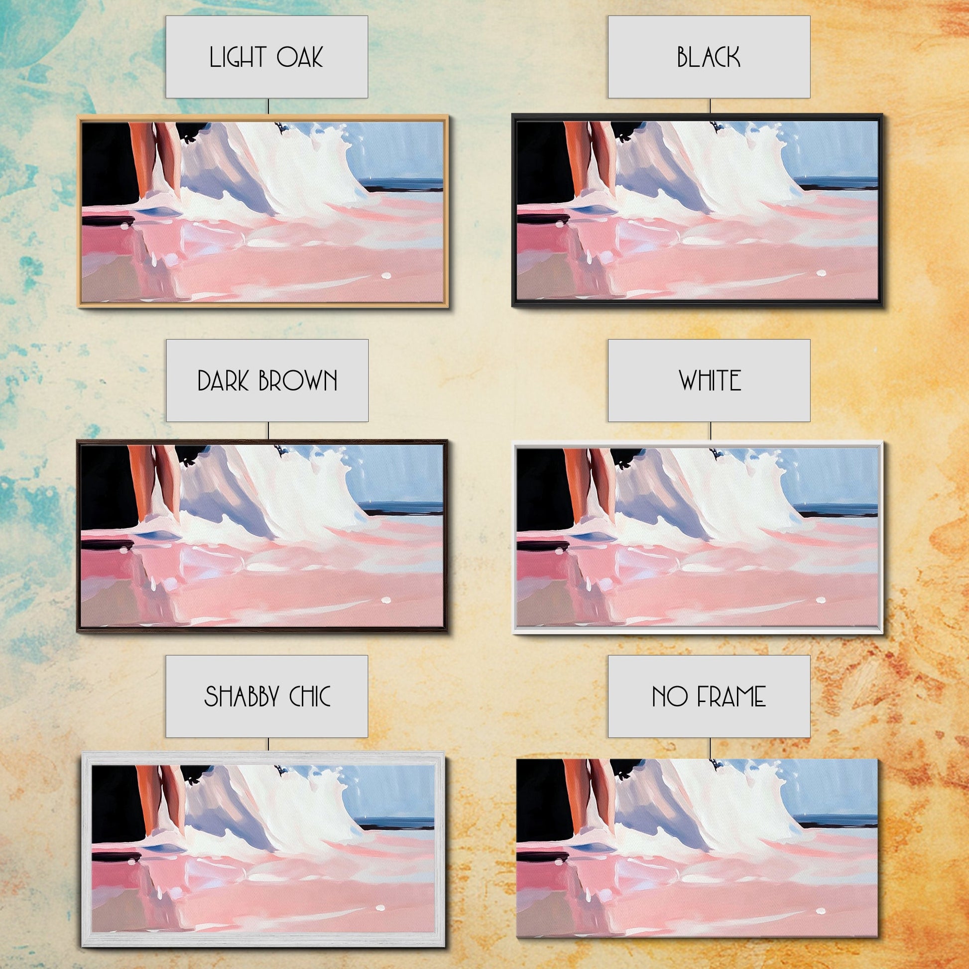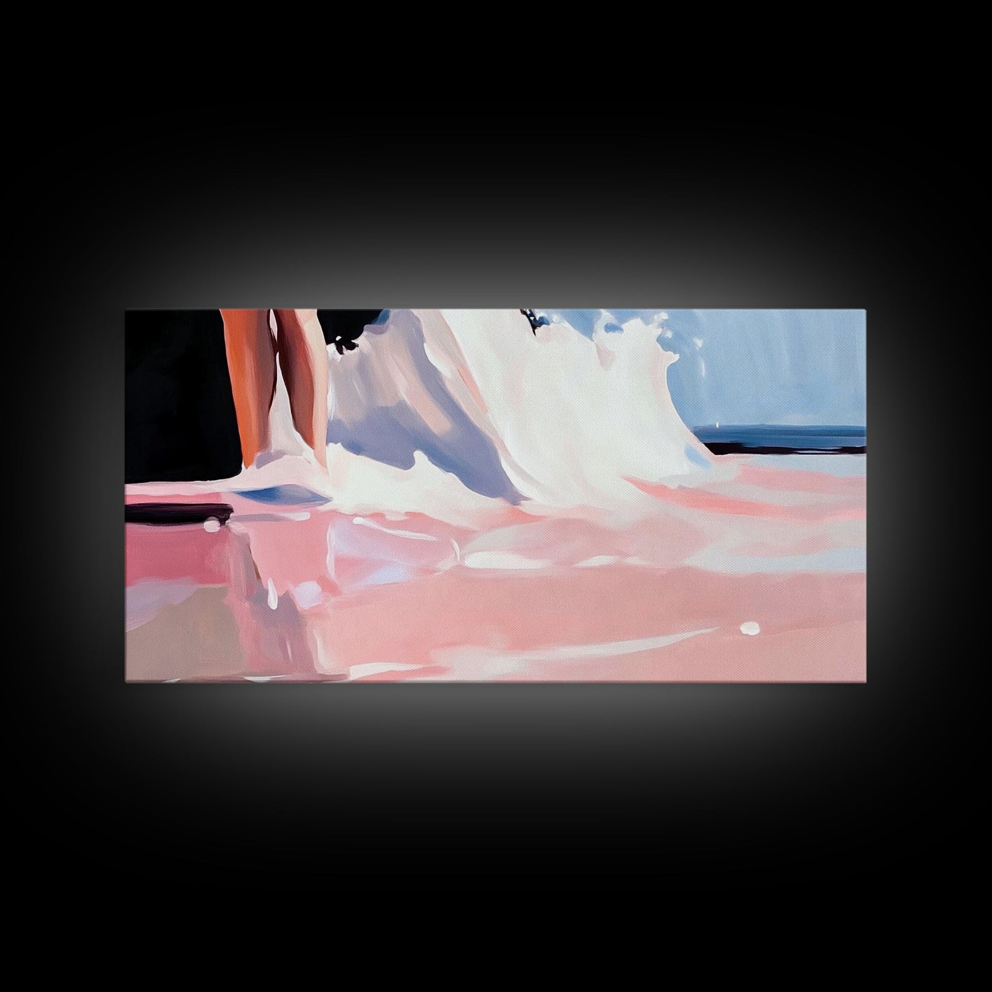 Abstract Waves, Coastal Aesthetic, Beach Sunset, Living Room Wall Art, Canvas Print, Ocean Home Decor, Modern Seaside Artwork, Pink and Blue