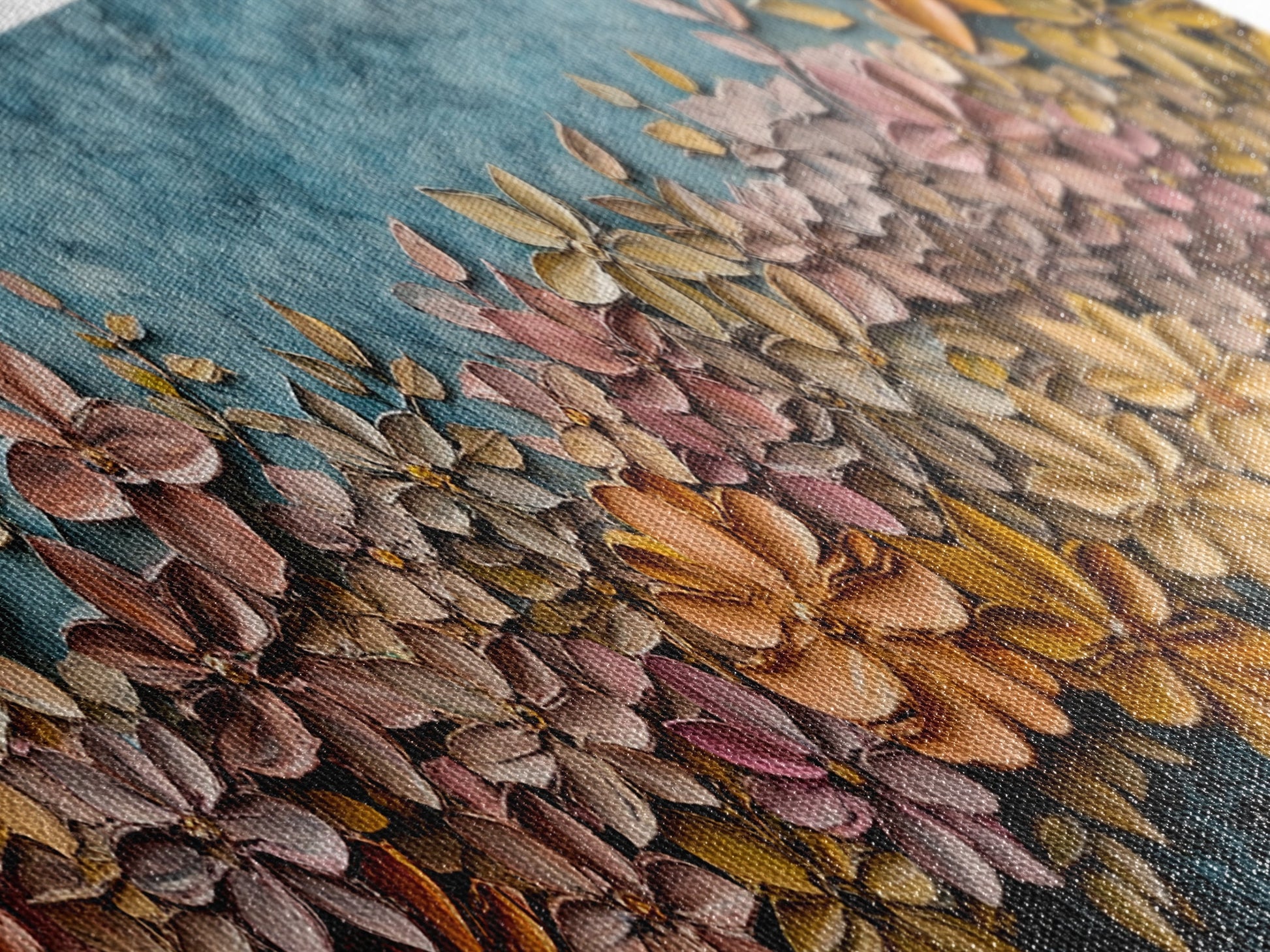 Abstract Wildflower Field Oil Painting Print | Nature Framed Large Gallery Art Ready To Hang, Panoramic Extra Wide Wall Art