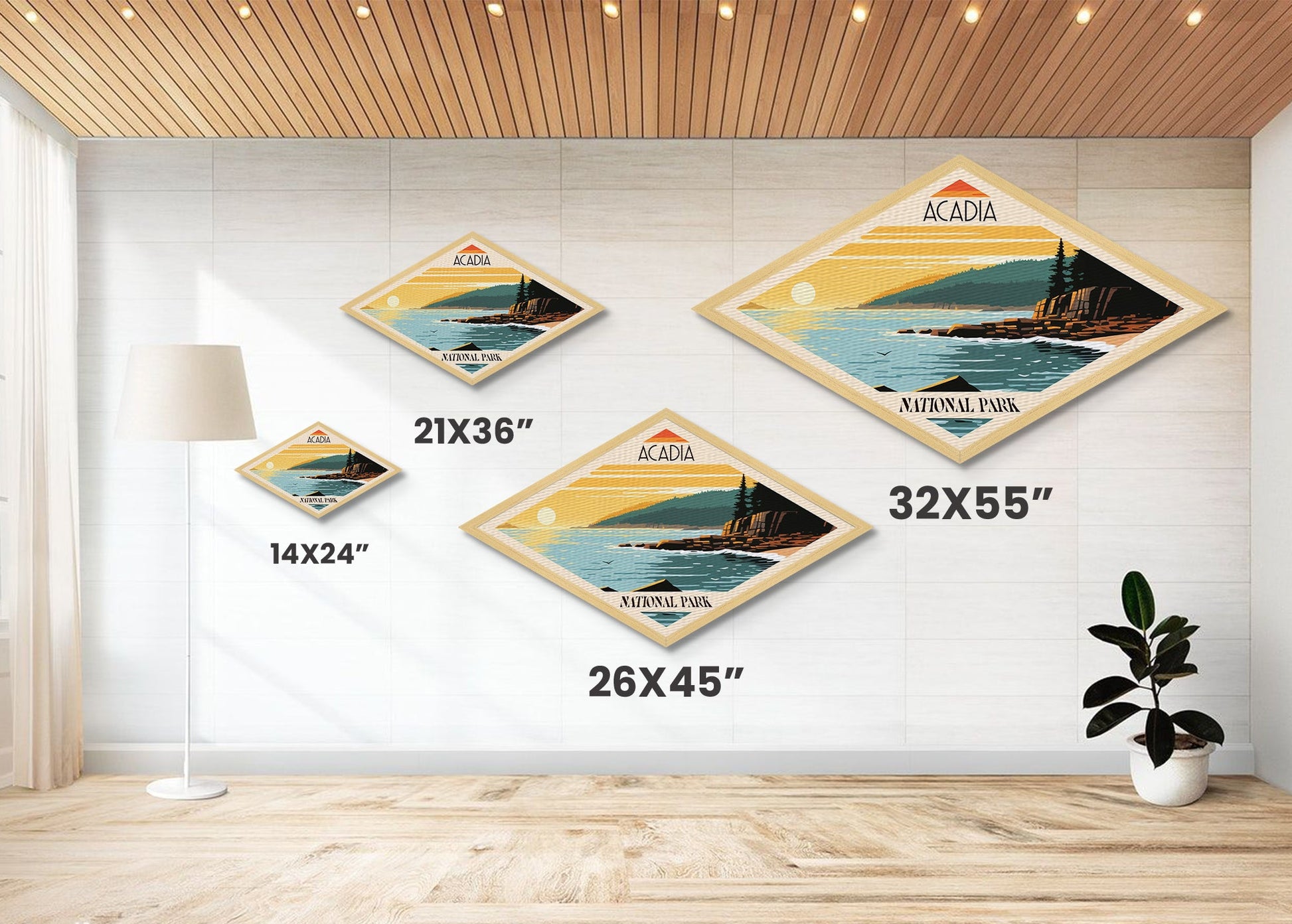 Acadia National Park Diamond Shaped Travel Poster Art Canvas Art Print, Canvas Wall Art, Travel Gift, Maine Travel Art
