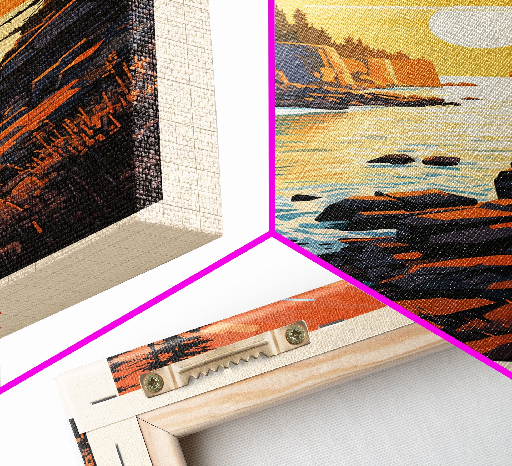 Acadia National Park, Framed Wall Art Canvas Print, Travel Poster, Travel Art, Roadtrip Decor, Cool Wall Art, Retro State Park Art
