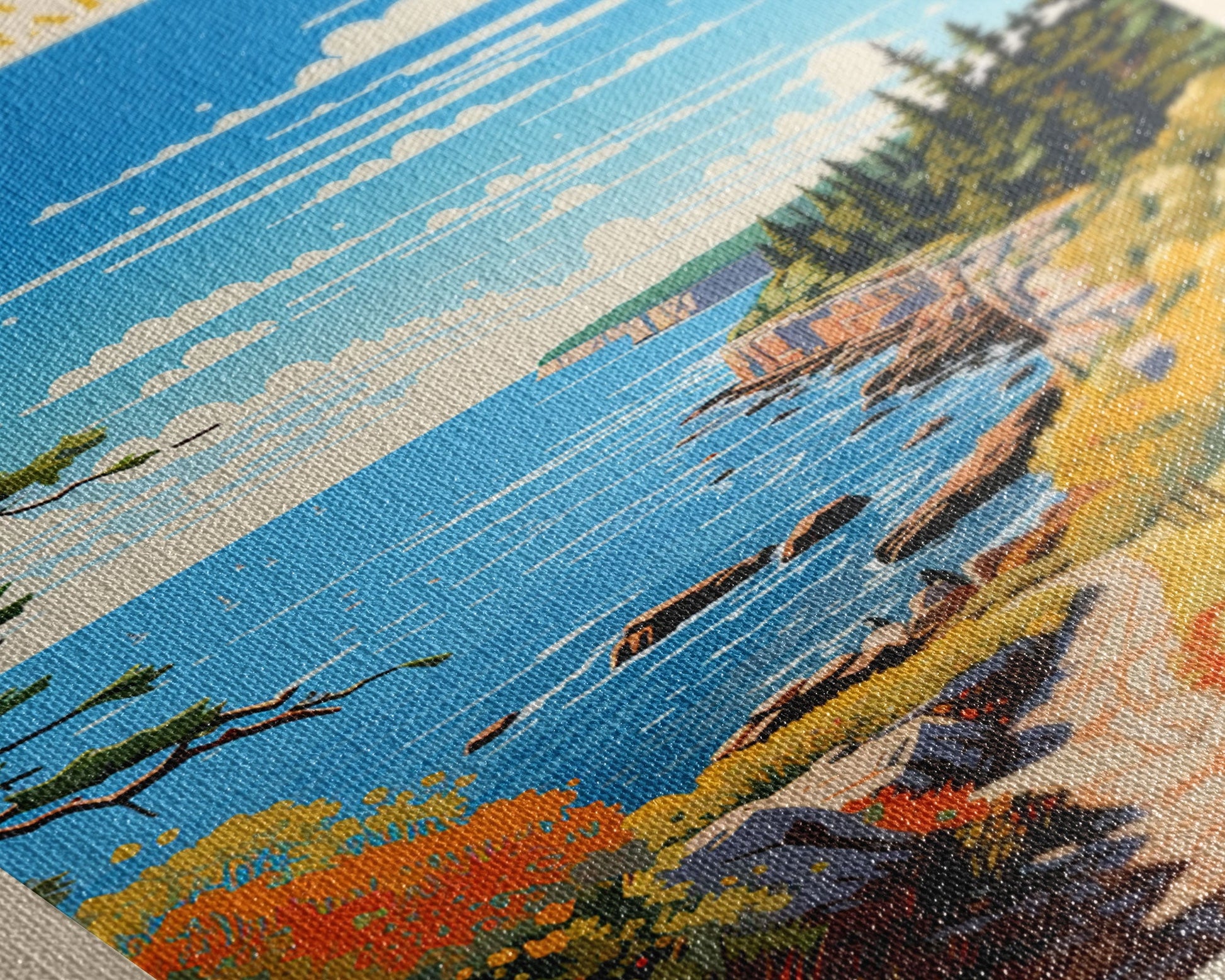 Most of our canvases are made in the USA, with the exception of canvases ordered with the light oak unstained frames, and any large canvases (24x48, 30x60, 16x48 and 20x60) ordered WITH a frame. These are temporarily made in and shipped from Europe, while we try to find a more consistent supplier in the USA.