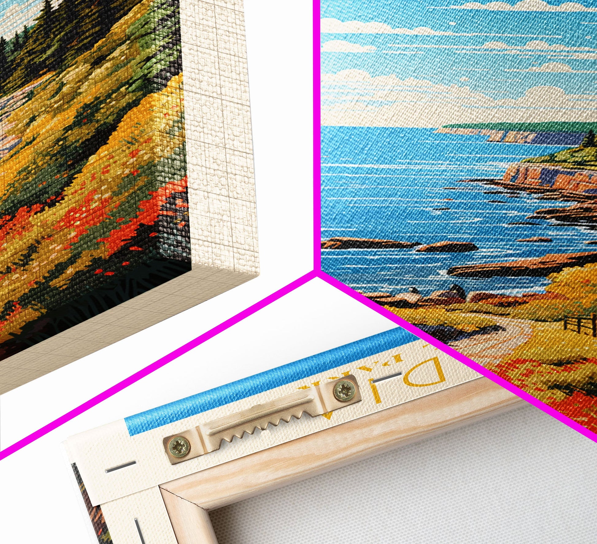 Hello and thank you for taking the time to view our modern high quality giclée artwork! Printed on extremely durable 350 GSM canvas material with ECO friendly archival grade ink, then hand stretched and stapled over premium, FSC certified and shrink resistant frames. Designed and built to last a lifetime.