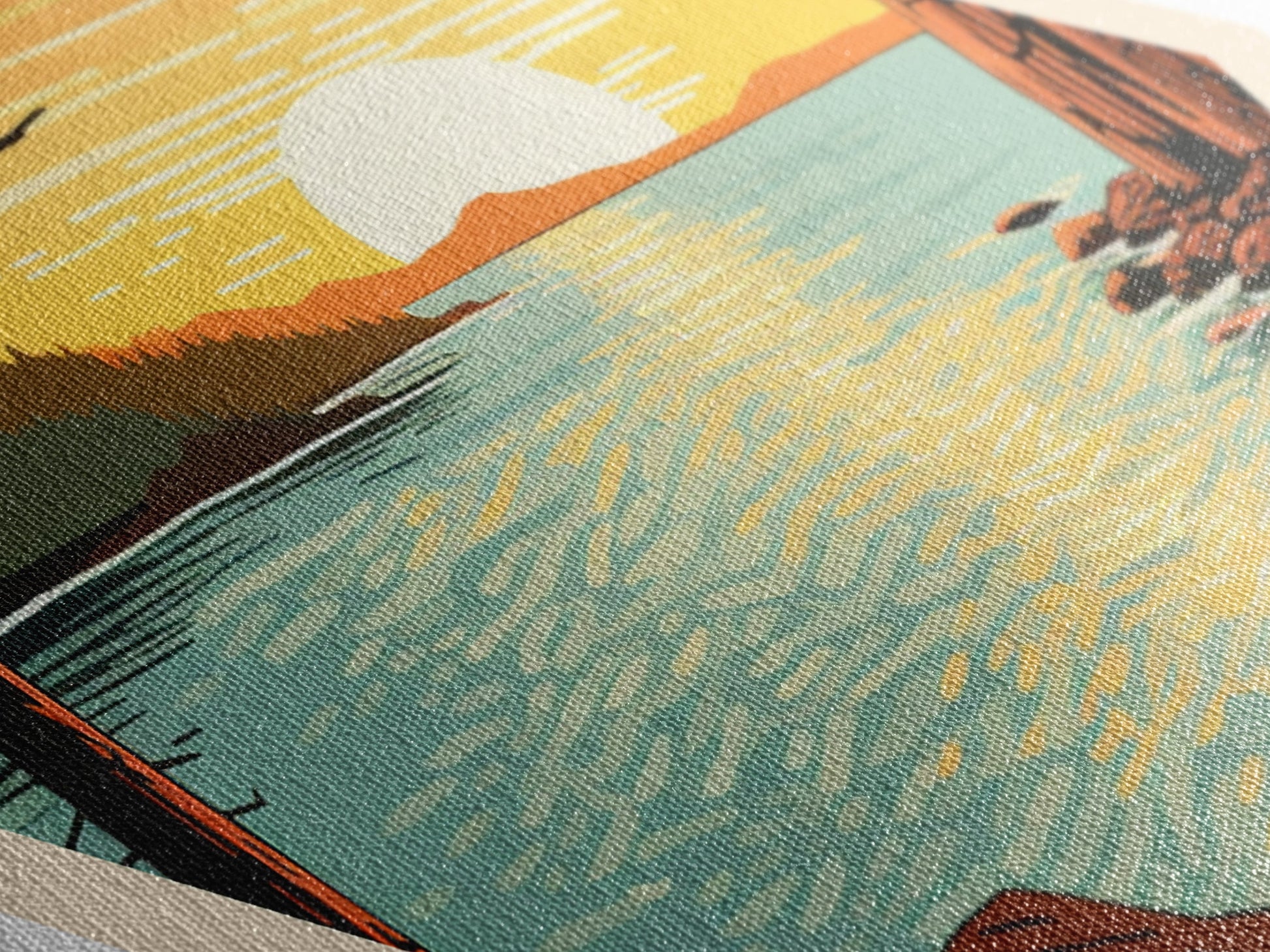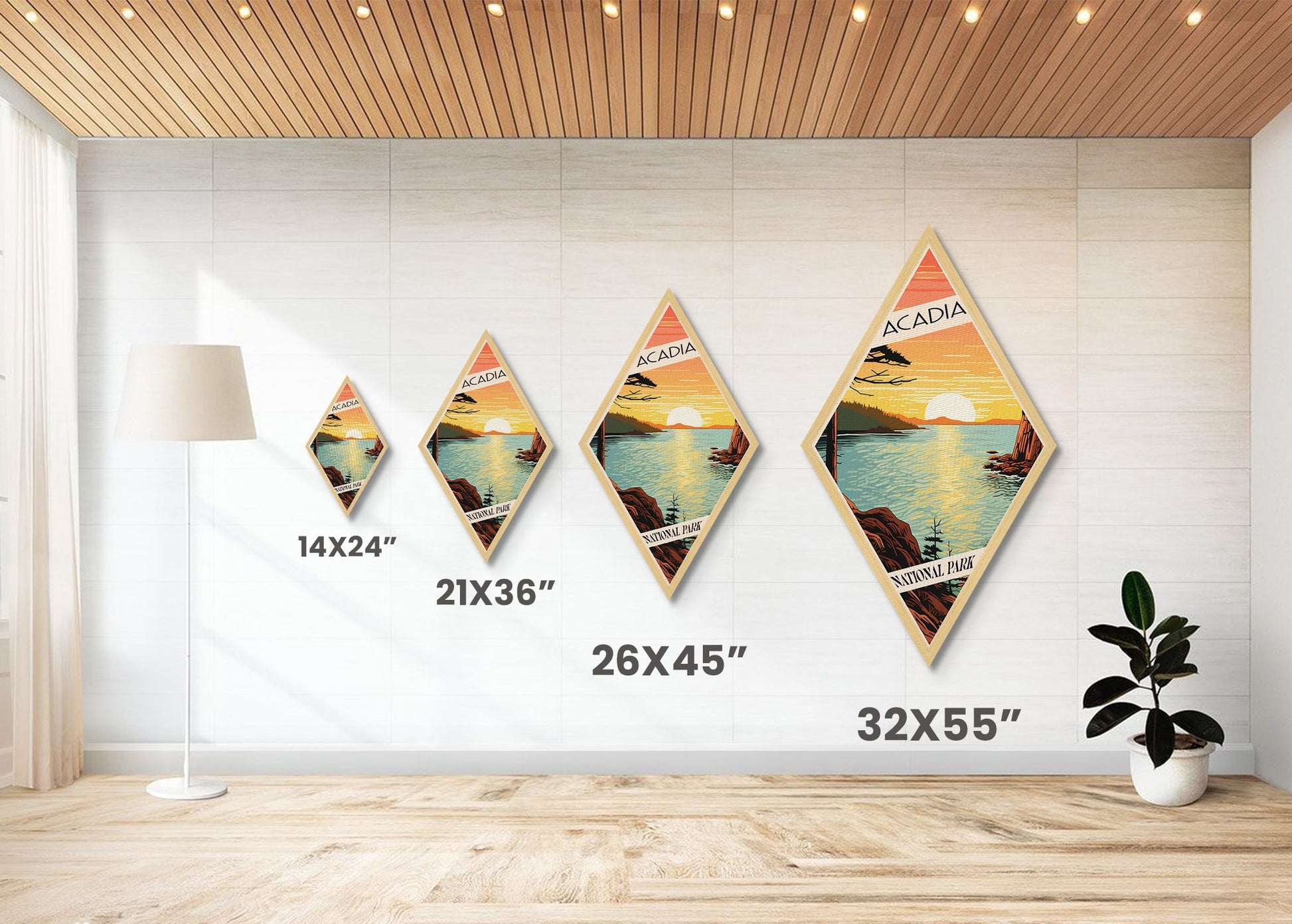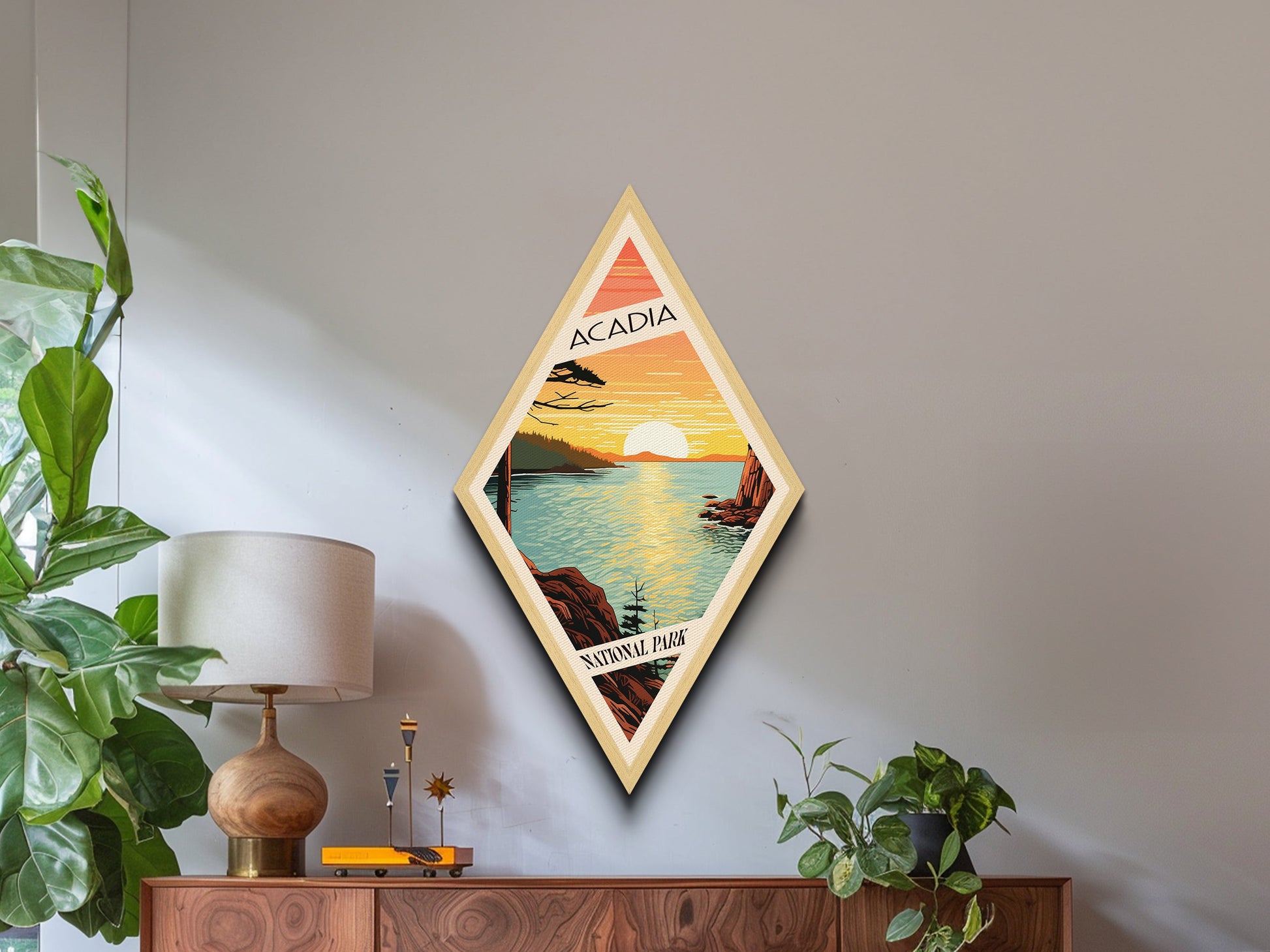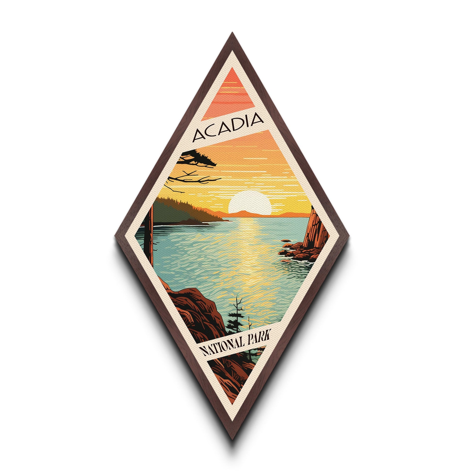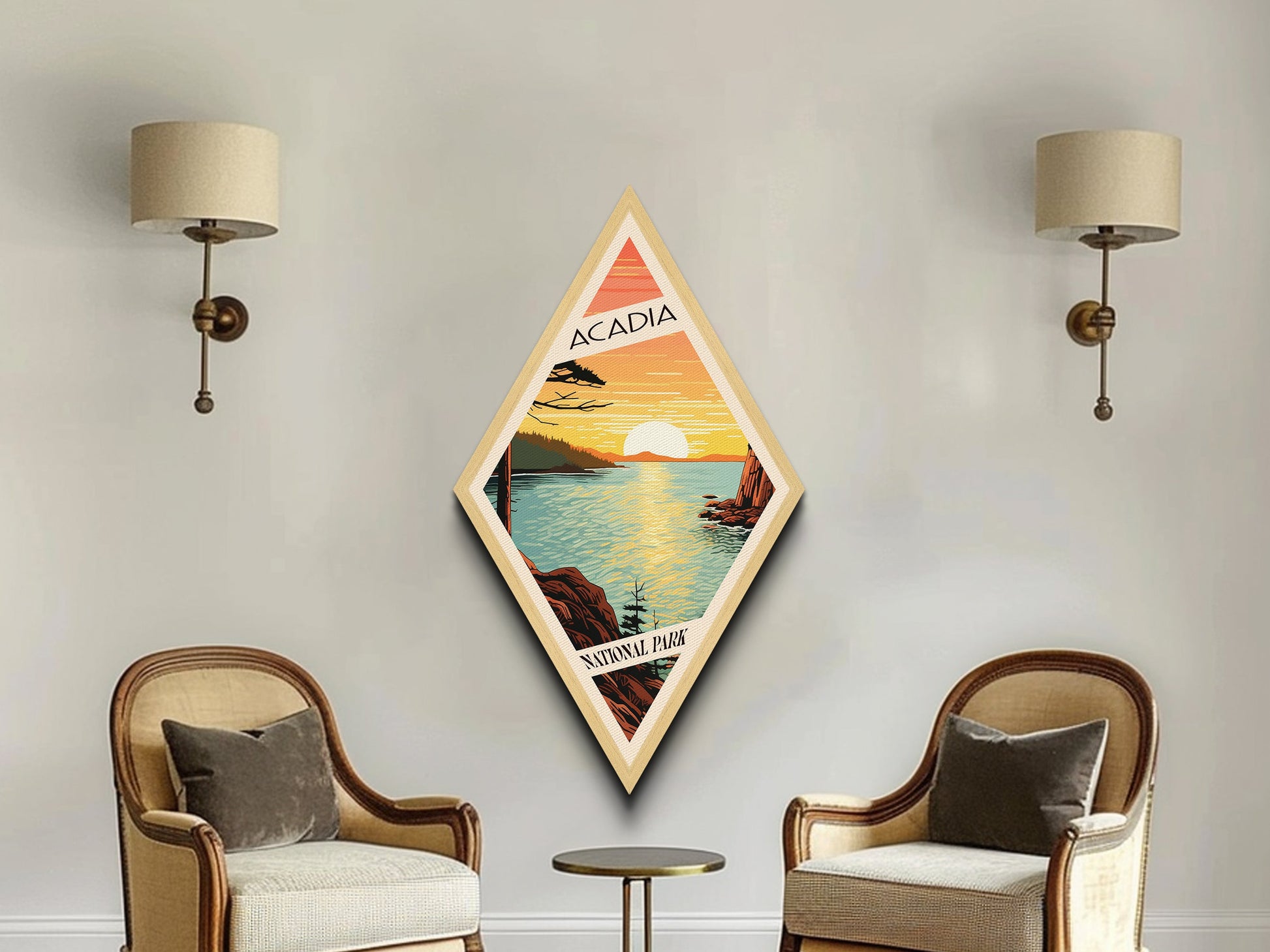 Acadia National Park Travel Print Canvas Texture Print, Travel Decor Art, Midcentury Modern Retro Decor Maine Travel Art