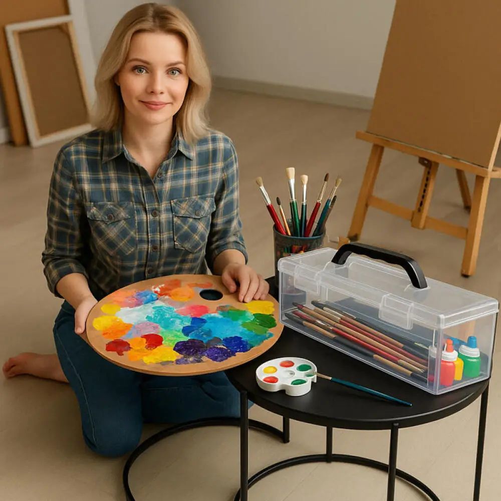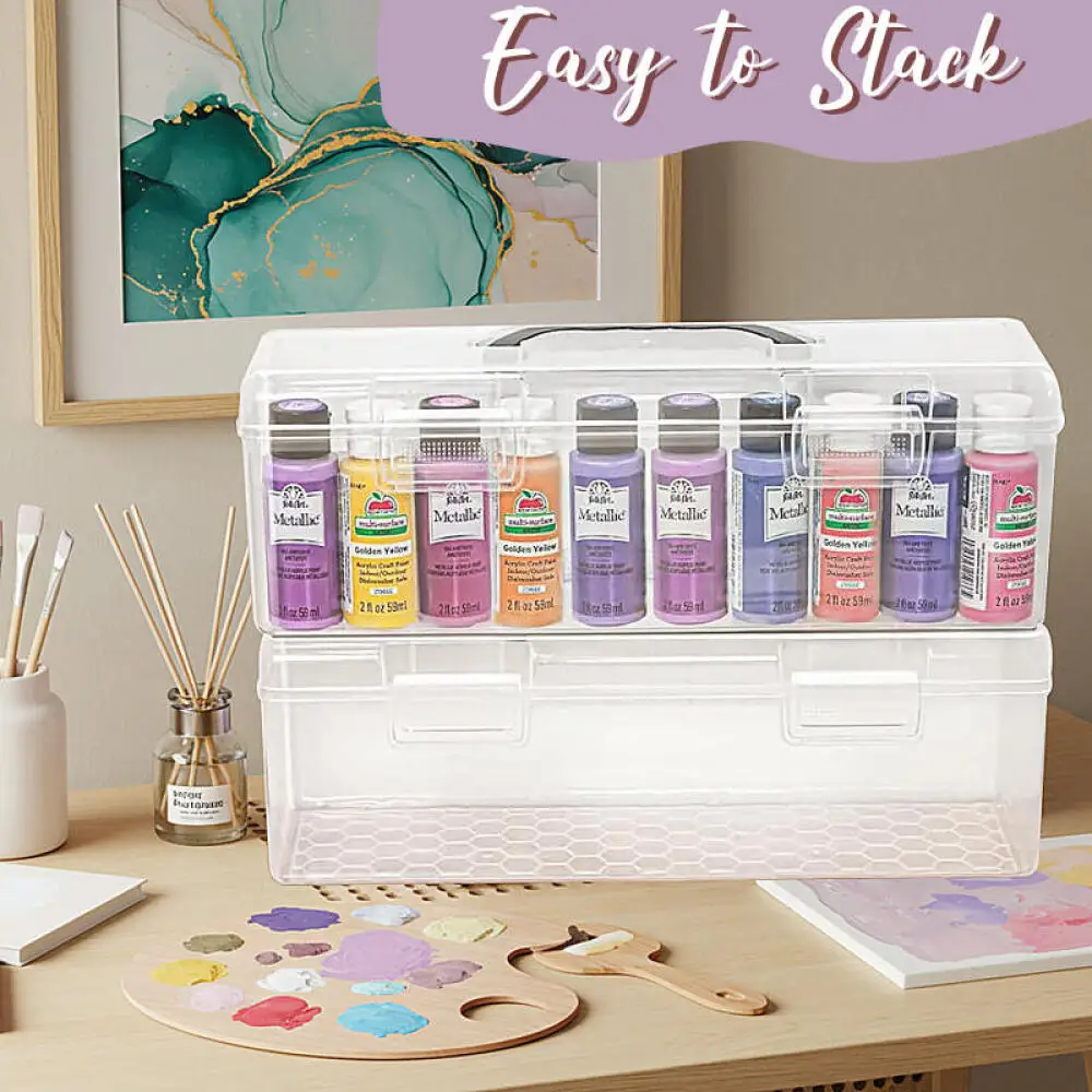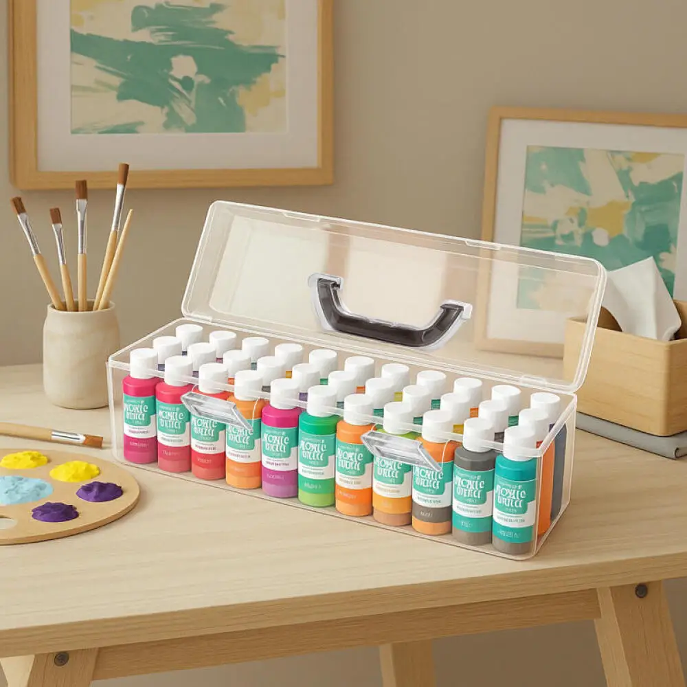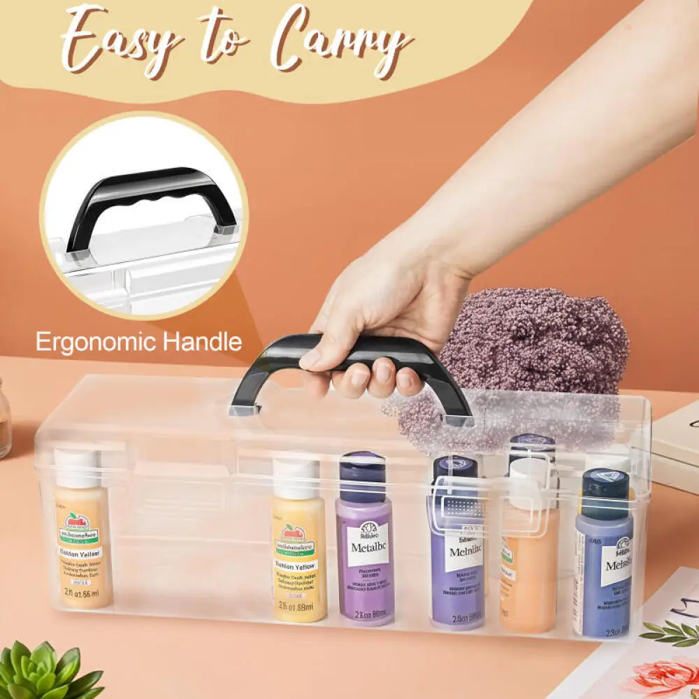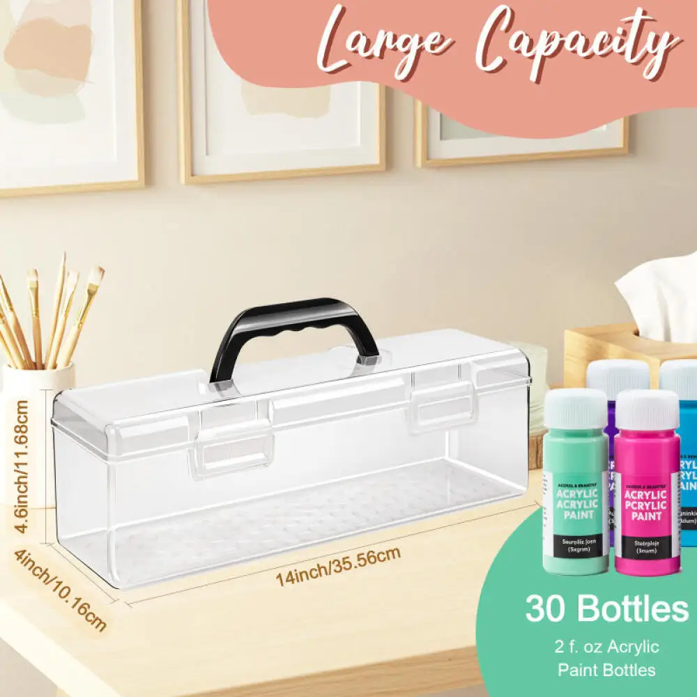 Clear Paint Storage Box: The transparent box makes it easy for painters to distinguish different colored paint bottles. Easy to find and access.