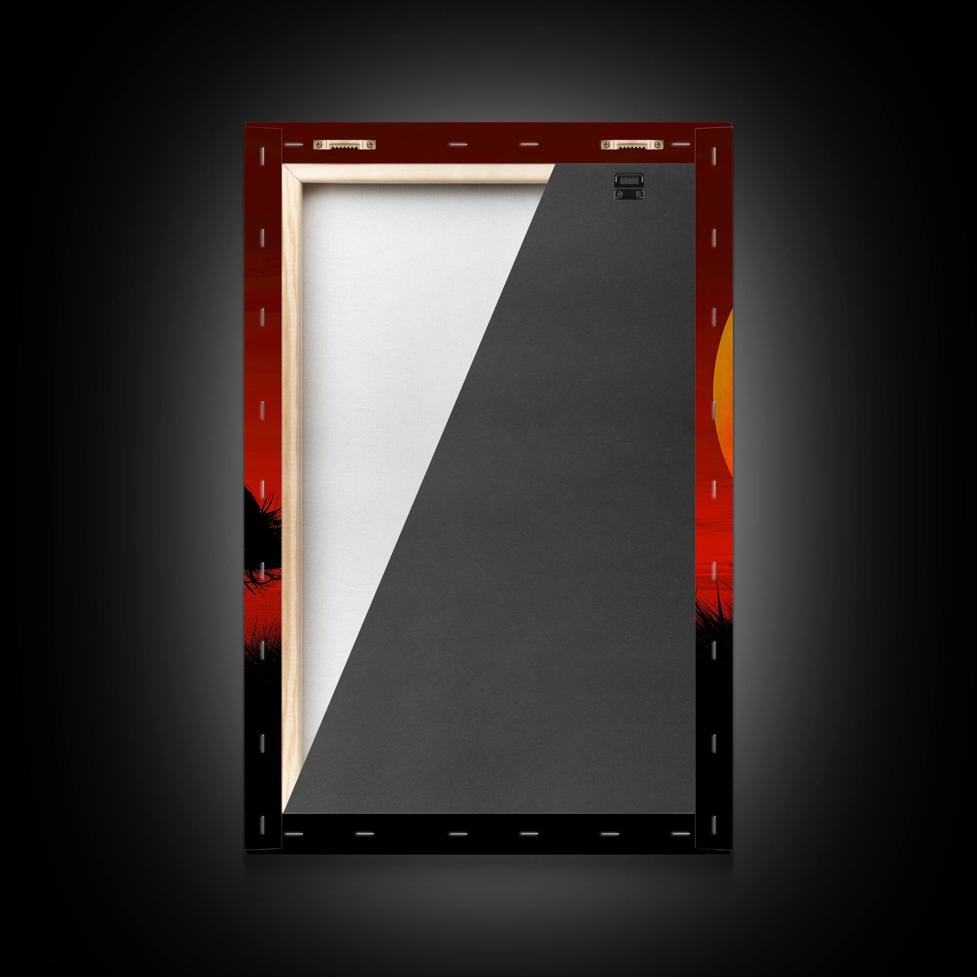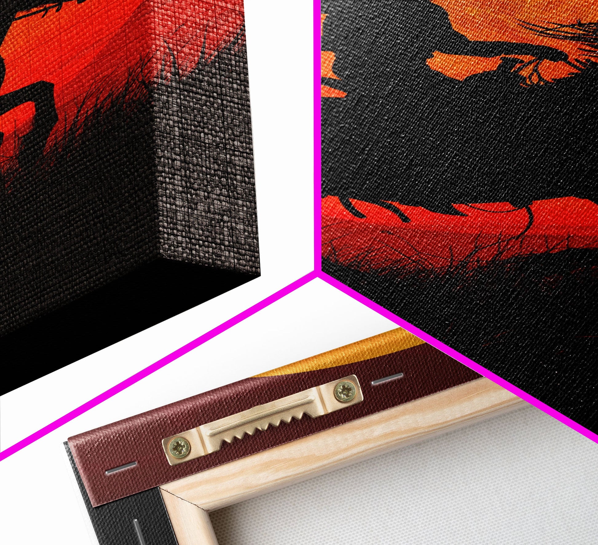 Action Cowboy Silhouette on Horse at Sunset | Framed Canvas Print | Western Wall Art | Dramatic Cowboy Wall Art for Home Decor