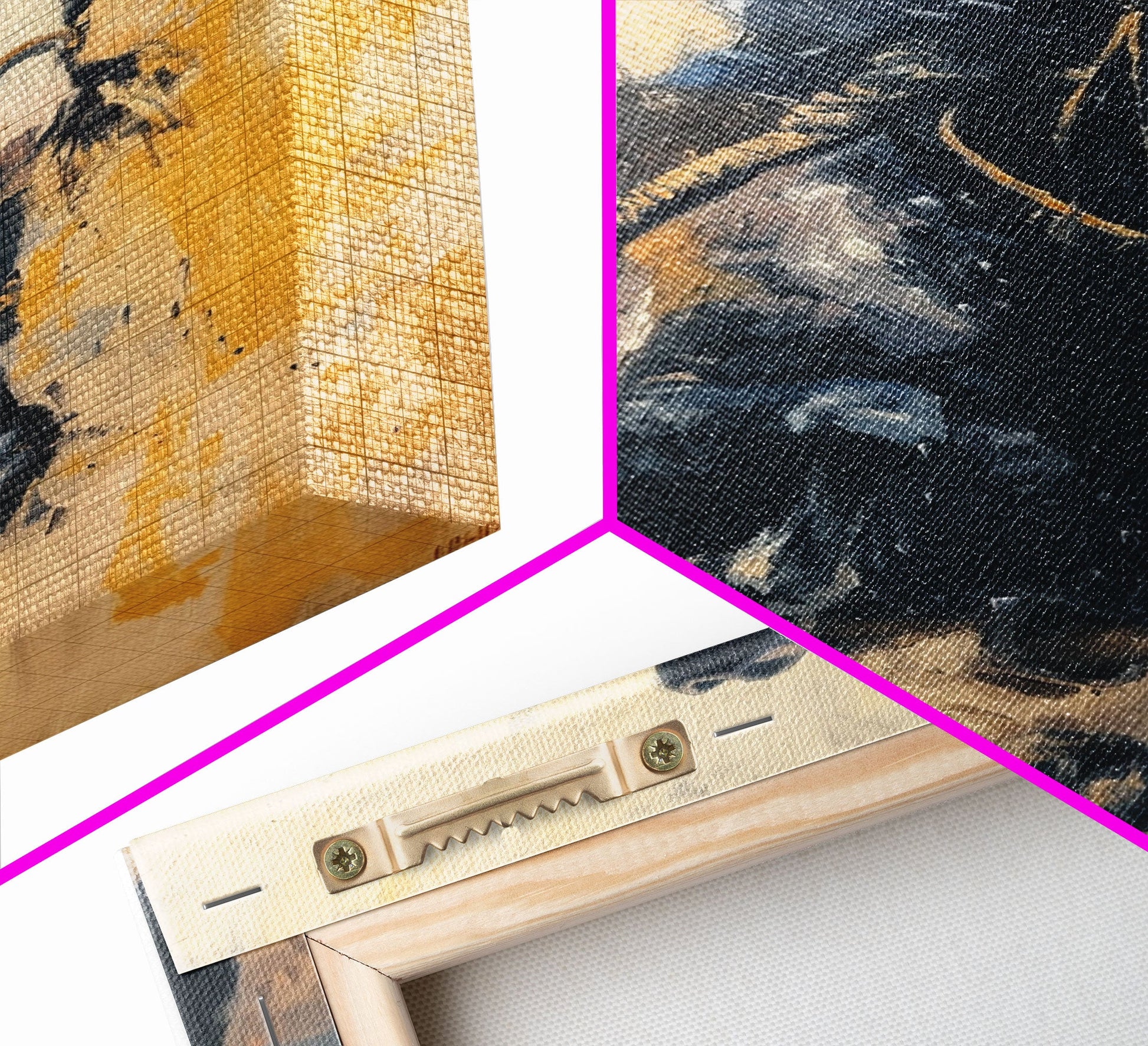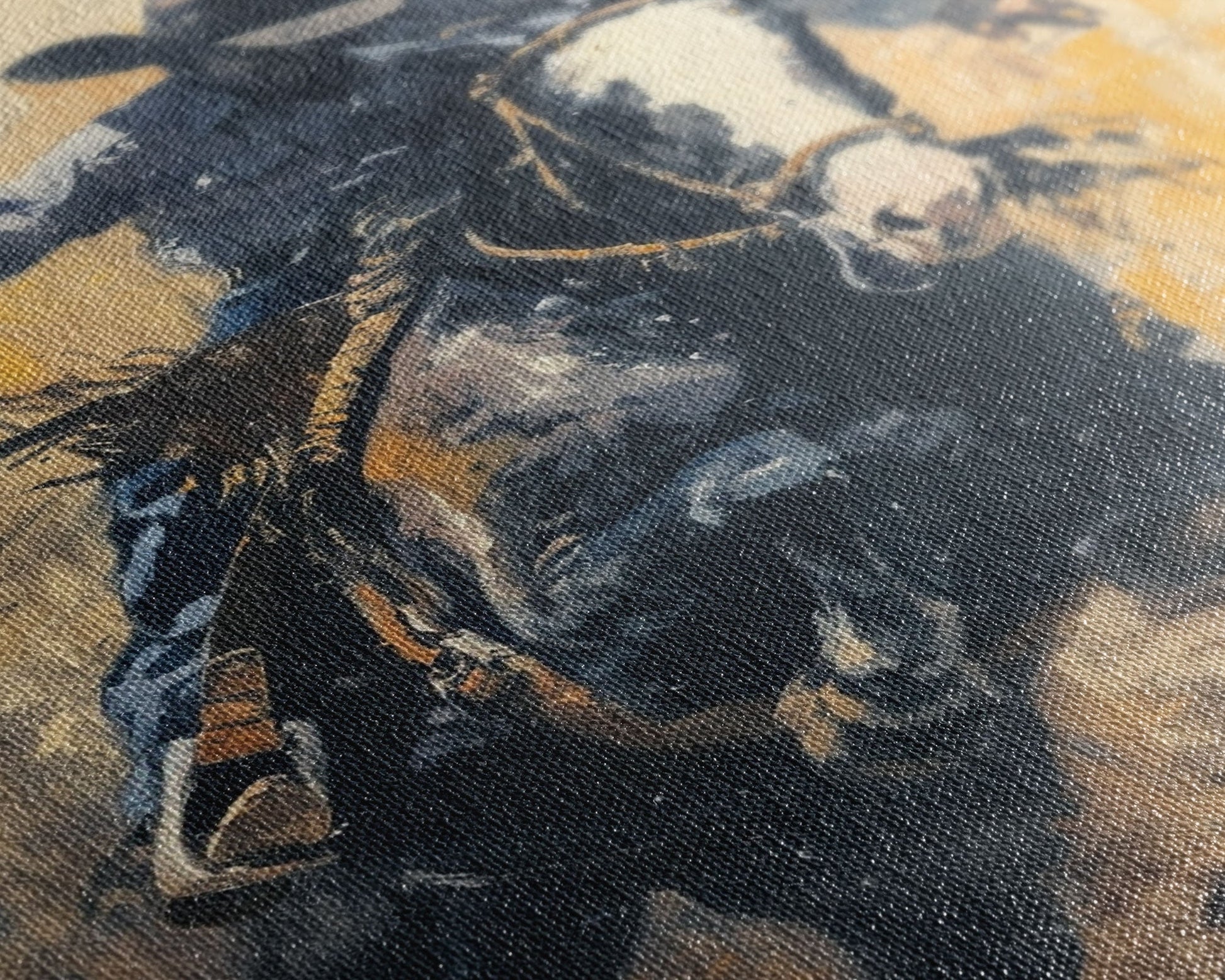 Action-Packed Cowboy on Horseback - Framed Canvas Print, Western Wall Art, Rustic Decor, Living Room and Bedroom Art Print