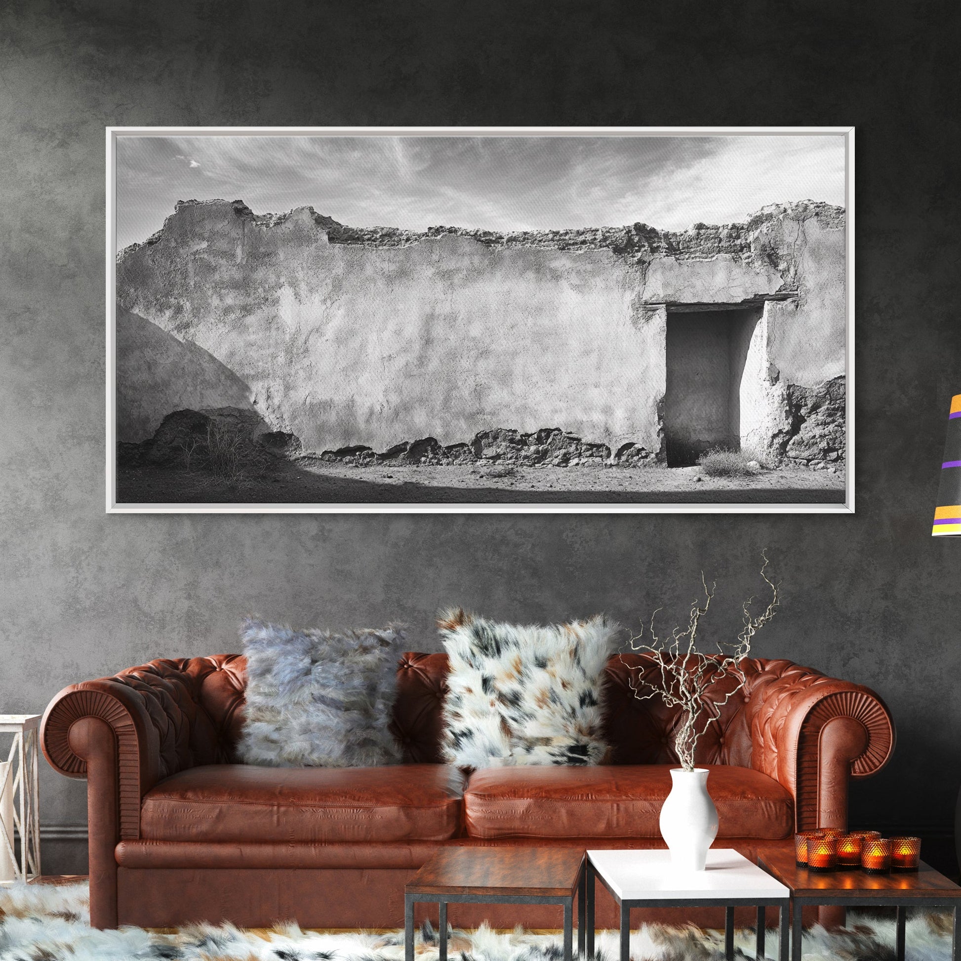 Adobe Wall, Desert Door, Rustic Texture, Framed Canvas Print, Southwest Wall Art, Neutral Earth Tones, Boho Western Living Room Decor