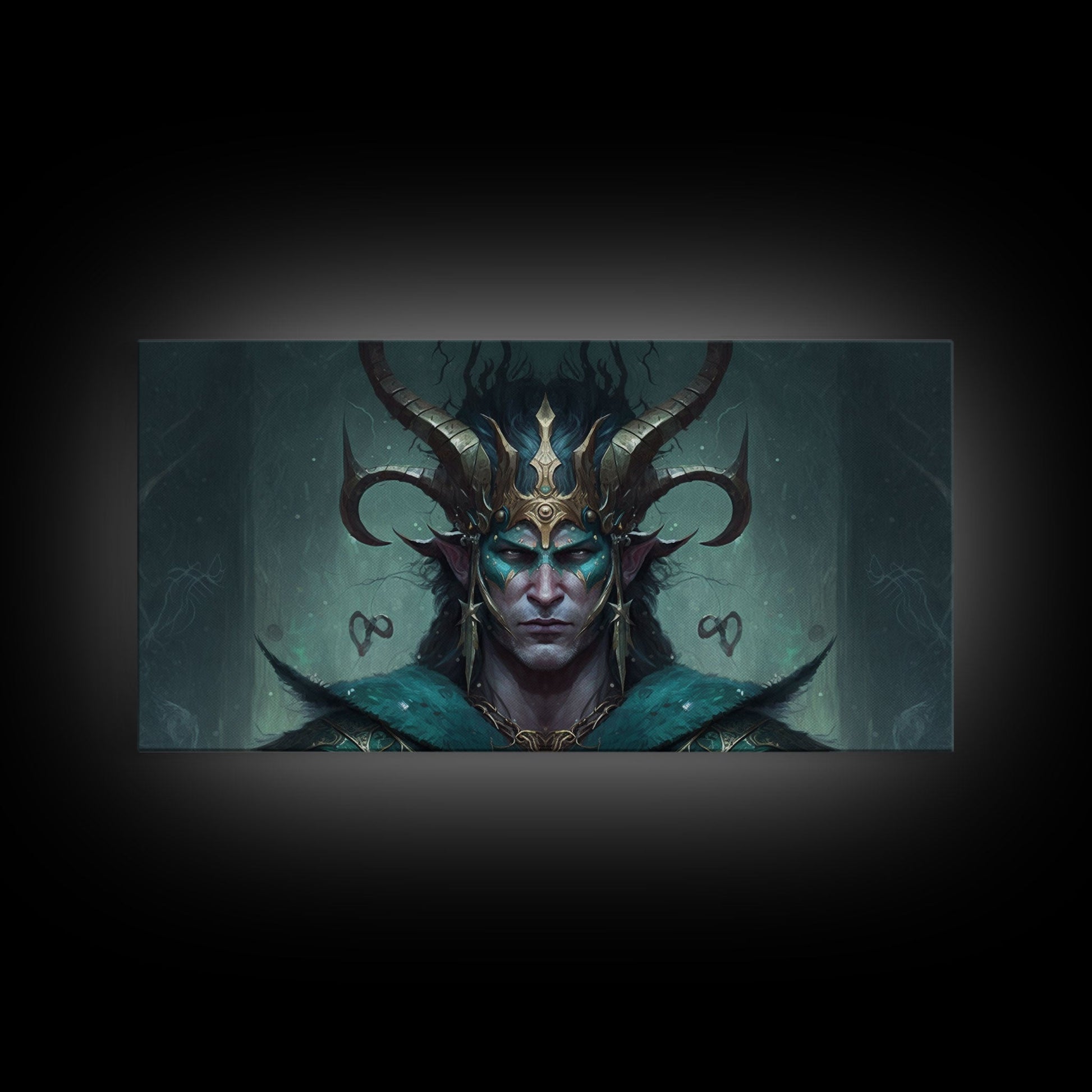 Aesthetic Loki the Trickster God, Norse Mythology, Framed Canvas Print, Extra Large Art, Fantasy Decor, Pastel Aesthetic Art
