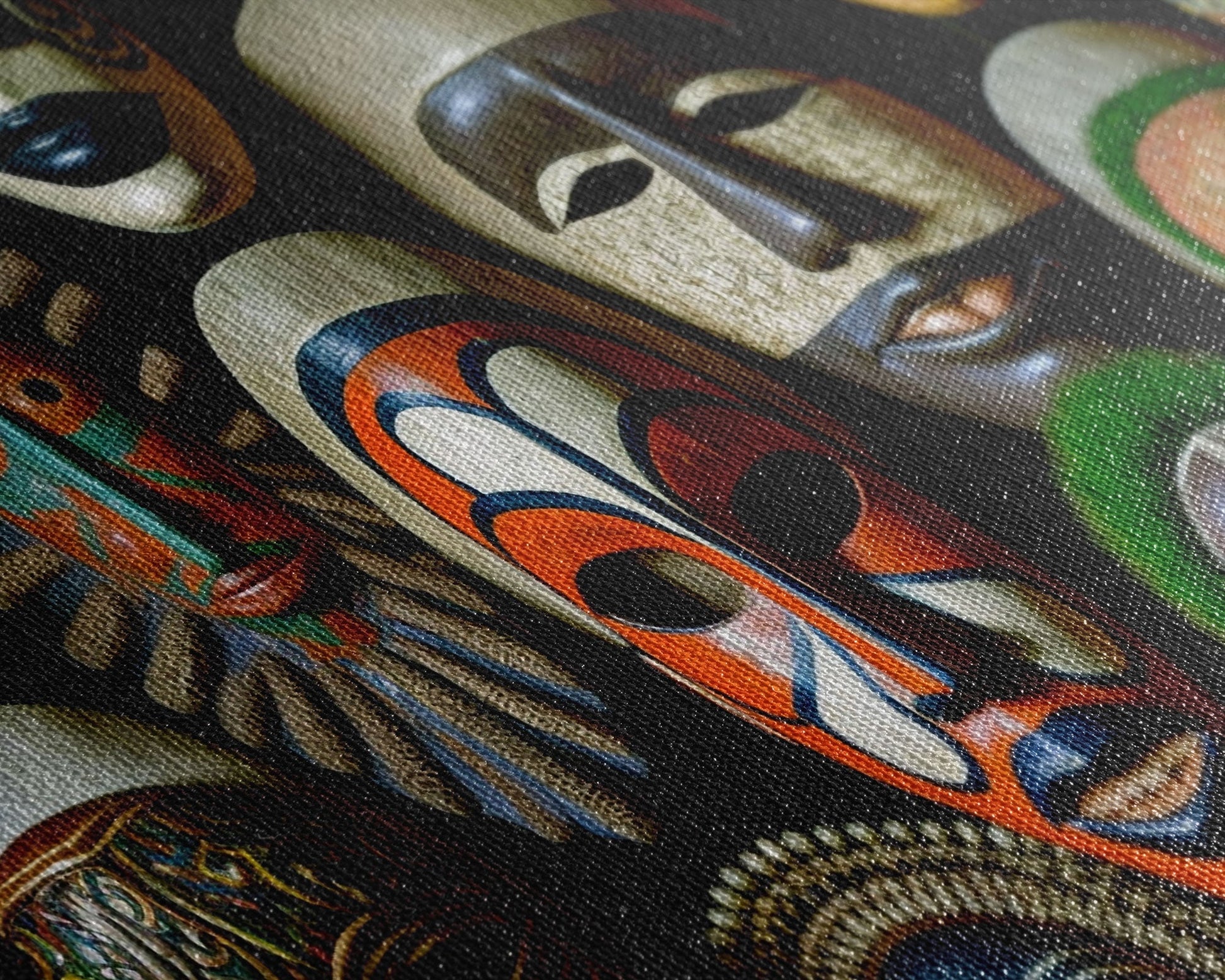 African Traditional Masks Framed Canvas Wall Art | Canvas Print Decor for Home & Office Decoration I Ready To Hang Canvas
