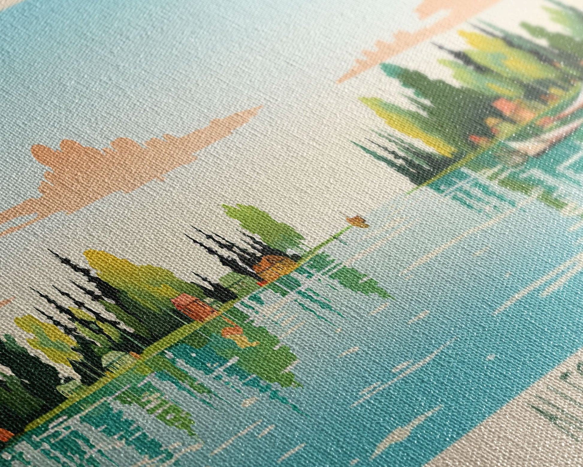 Allequash Lake Wisconsin Framed Canvas Print, Panoramic Wall Art, Midcentury Modern, Pop Art, Travel Poster, Living Room Decor