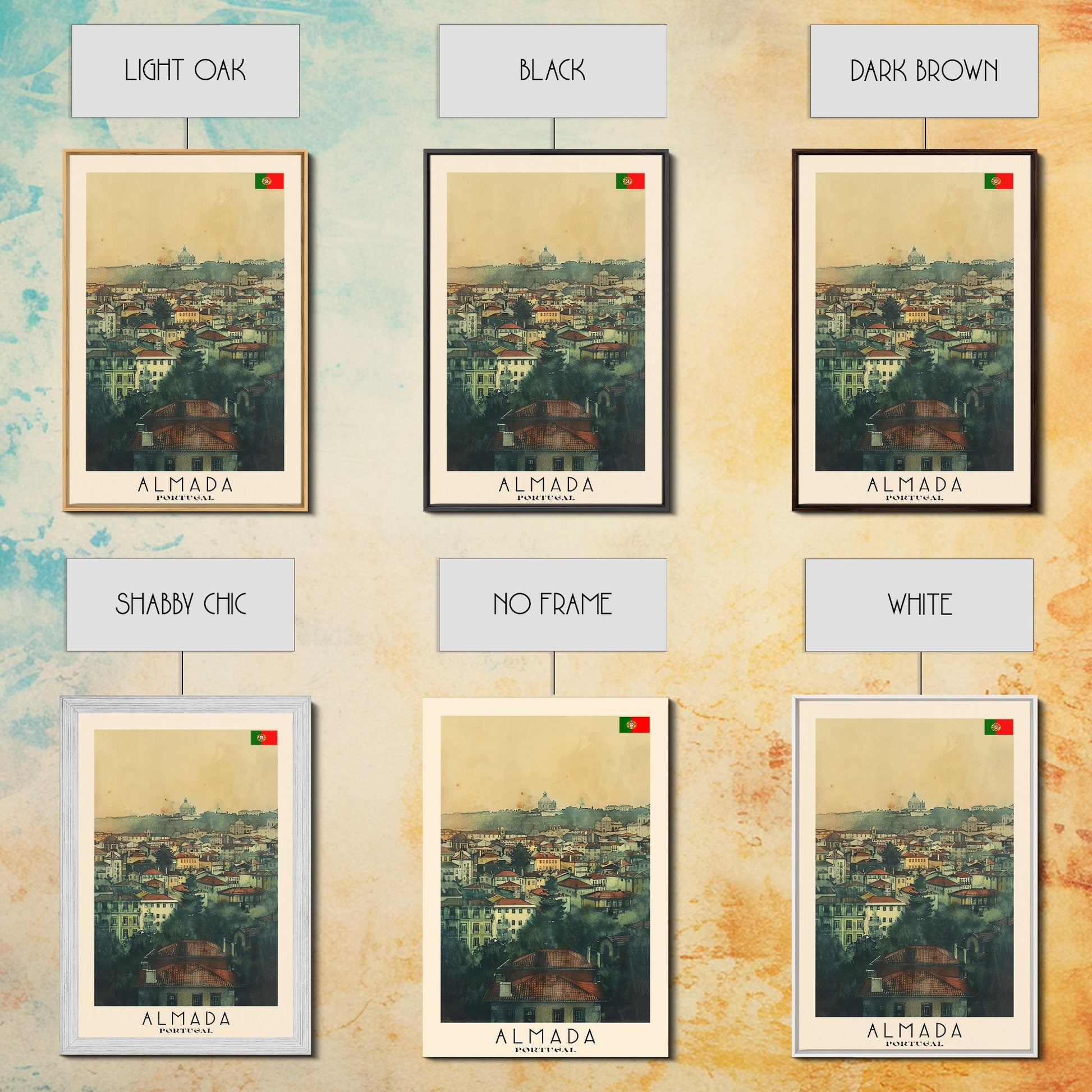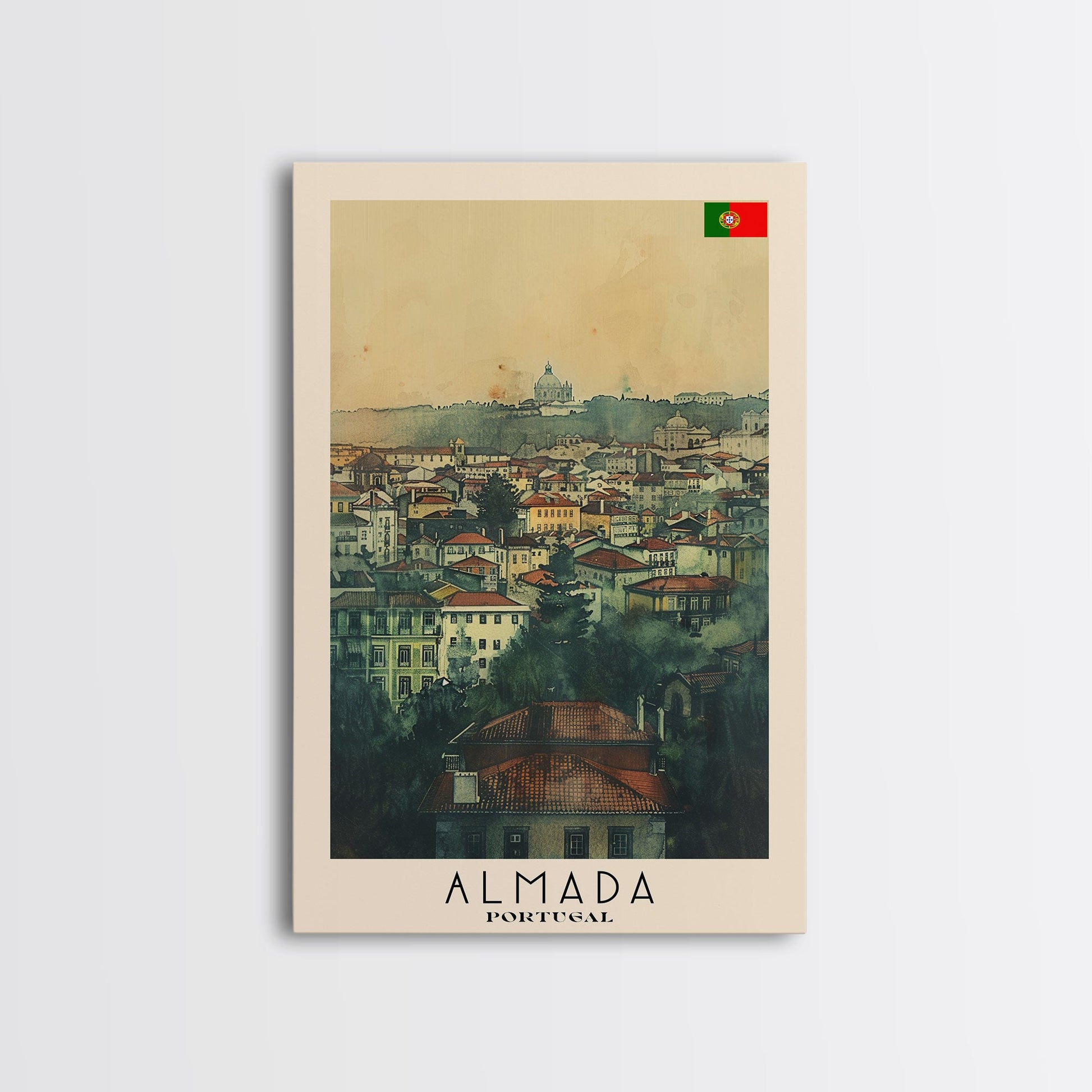 Almada Portugal Historic City Travel Poster Art, Framed Canvas Print, Beautiful Wall Art for Living Room or Bedroom, Home Decoration