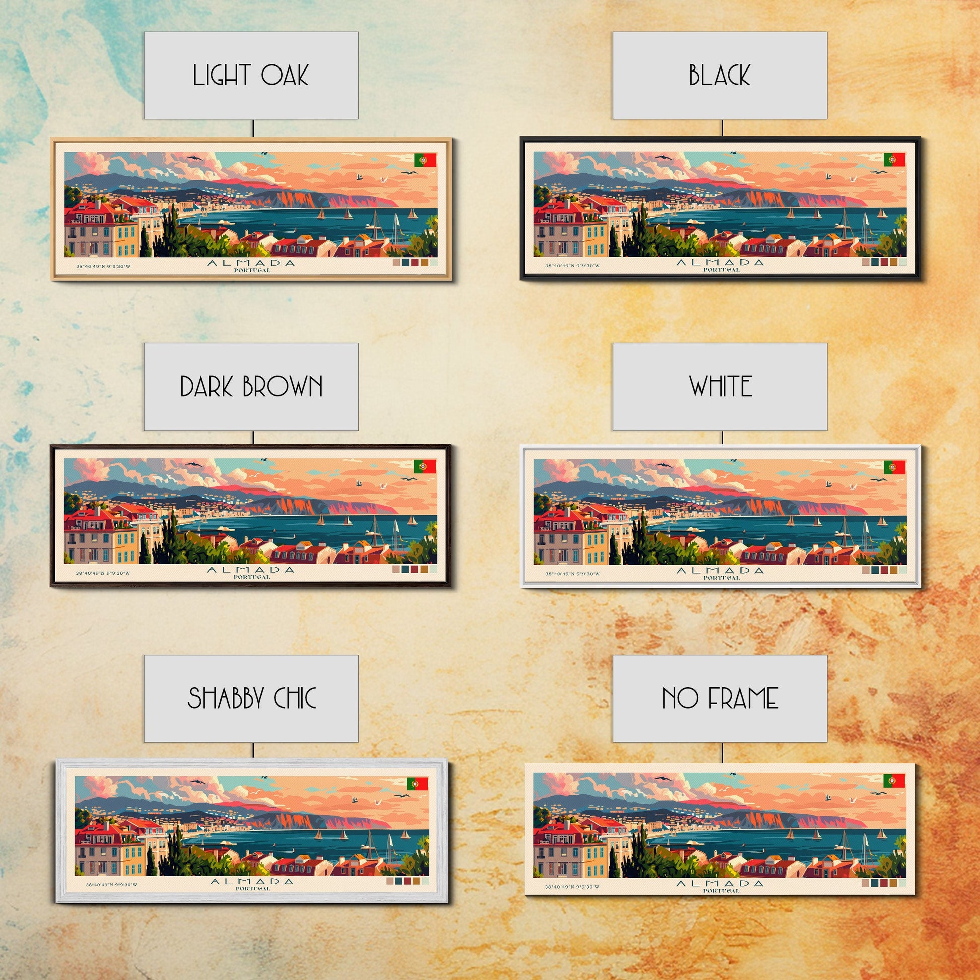 Almada Portugal Travel Art, City Art, Framed Canvas Print or Metal Wall Art, Europe Travel Poster, Panoramic Wall Art, Extra Wide Wall Art
