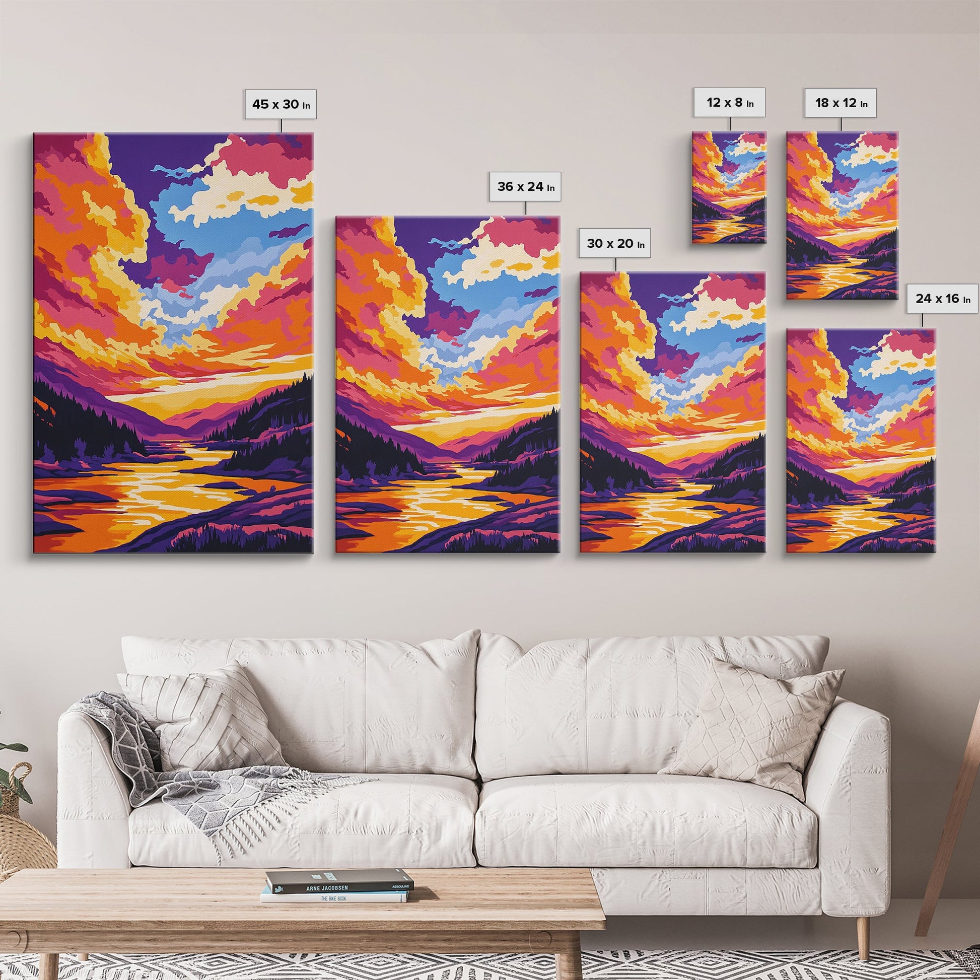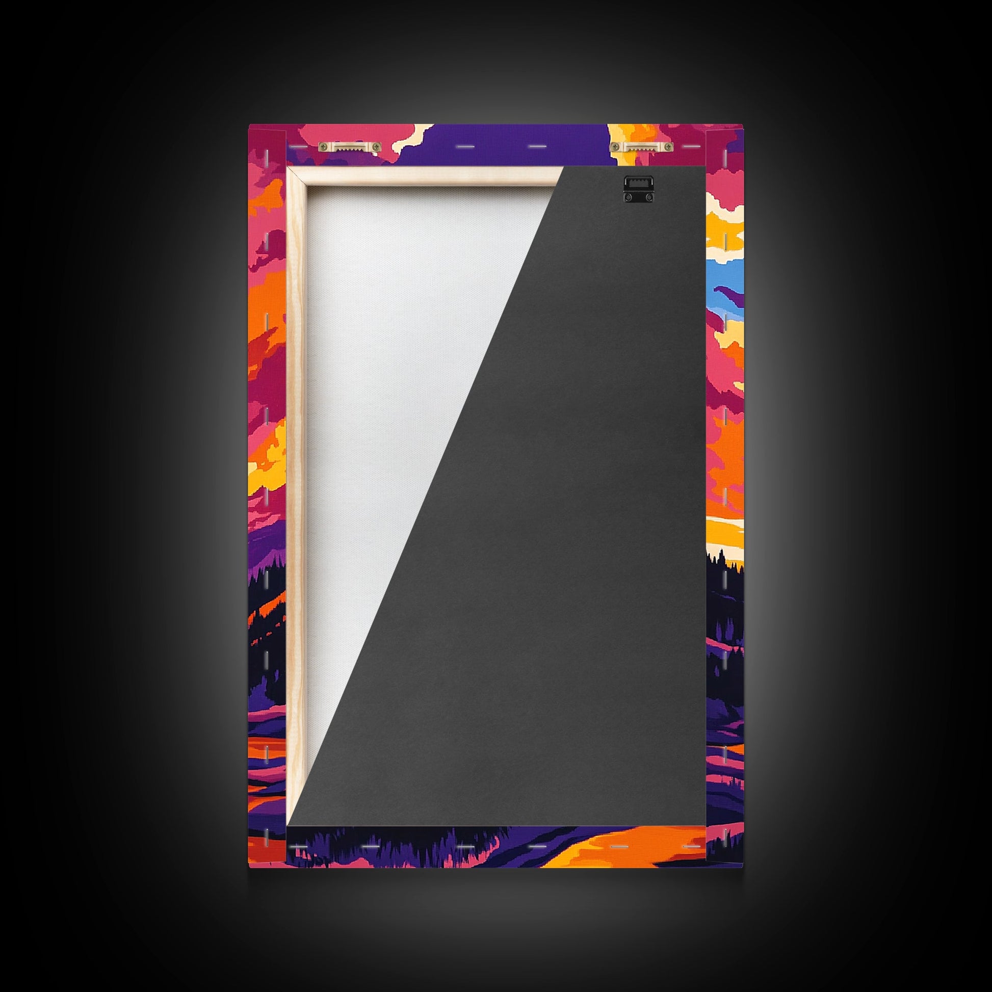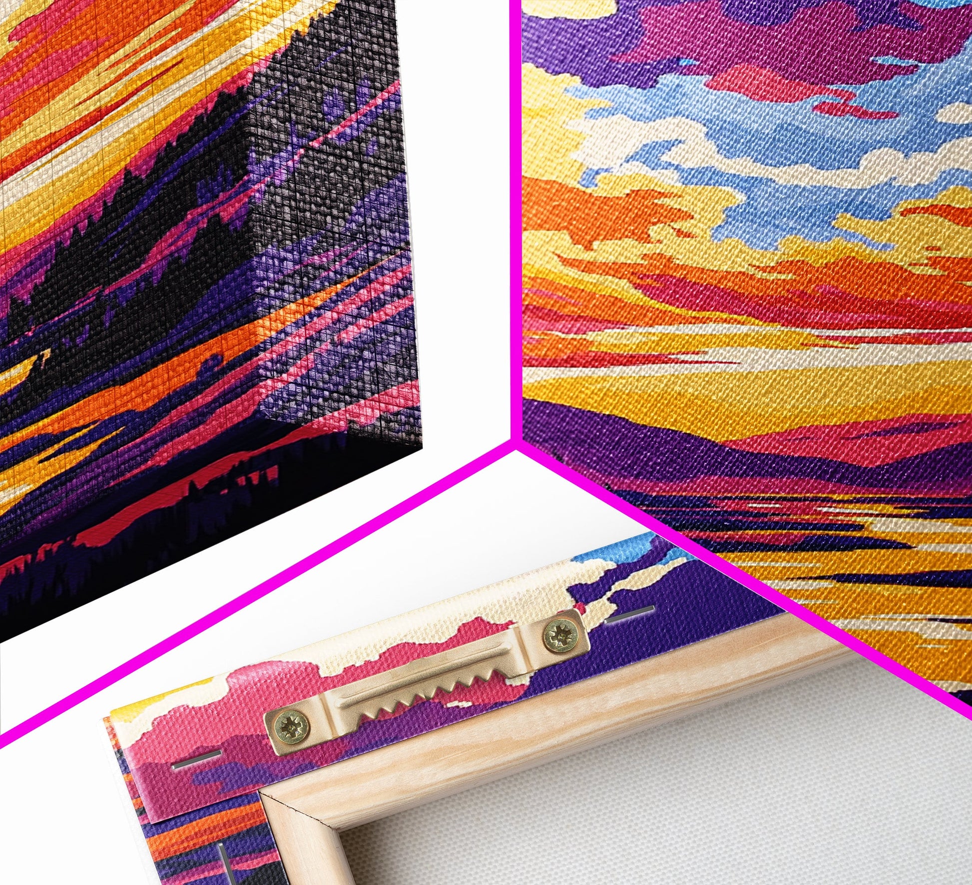 Alpine Reflection, Mountain Lake, Vibrant Wilderness, Canvas Print, Cabin Decor, Nature Painting, Sunset Colors, Adventure Art