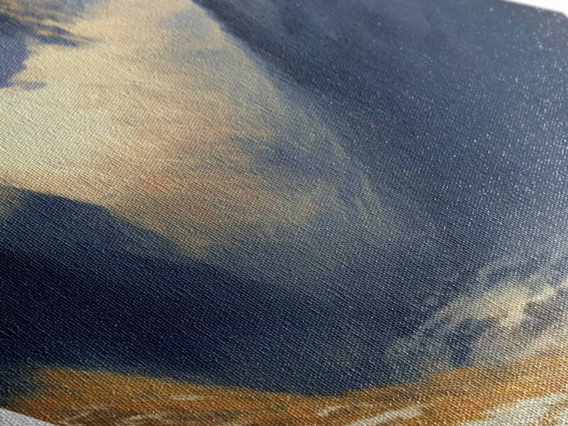 Most of our canvases are made in the USA, with the exception of canvases ordered with the light oak unstained frames, and any large canvases (24x48, 30x60, 16x48 and 20x60) ordered WITH a frame. These are temporarily made in and shipped from Europe, while we try to find a more consistent supplier in the USA.