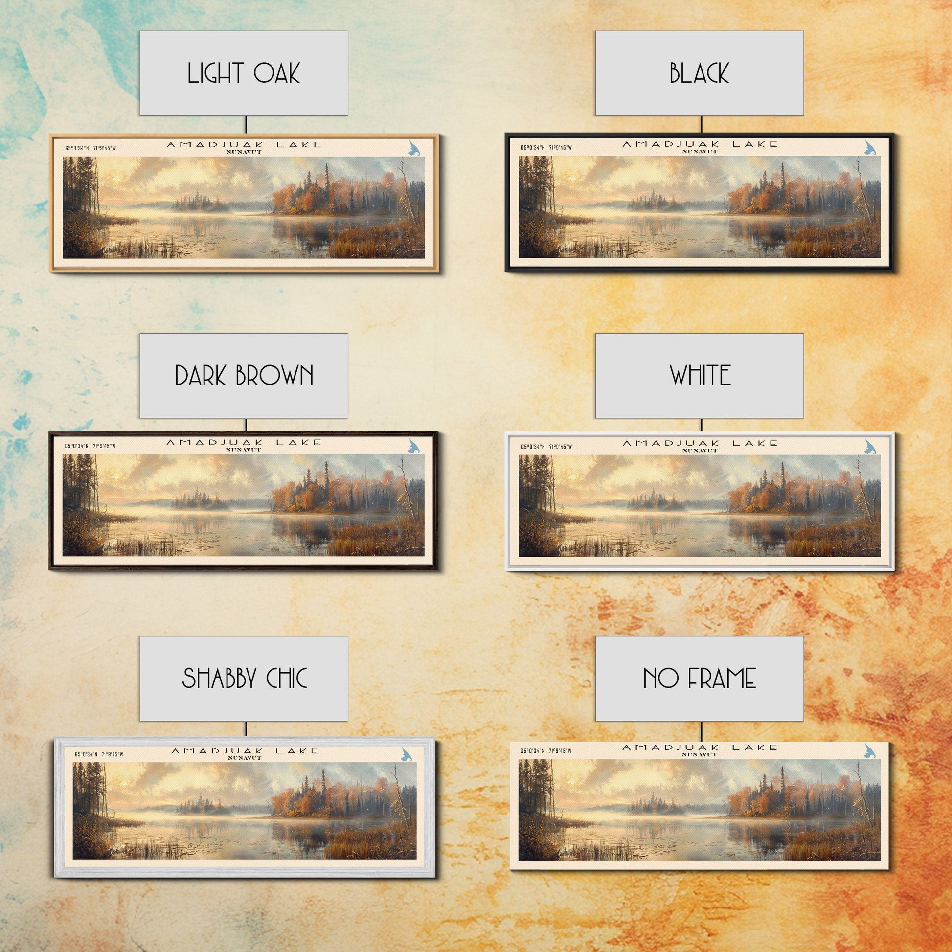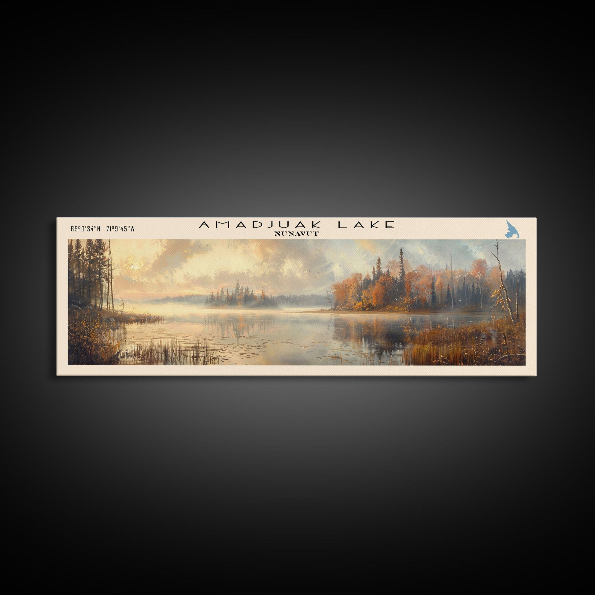 Amadjuak Lake Panoramic Framed Canvas Print, Lake House Decor, Minimalist Art, Travel Poster, Scenic View, Nature Wall Art
