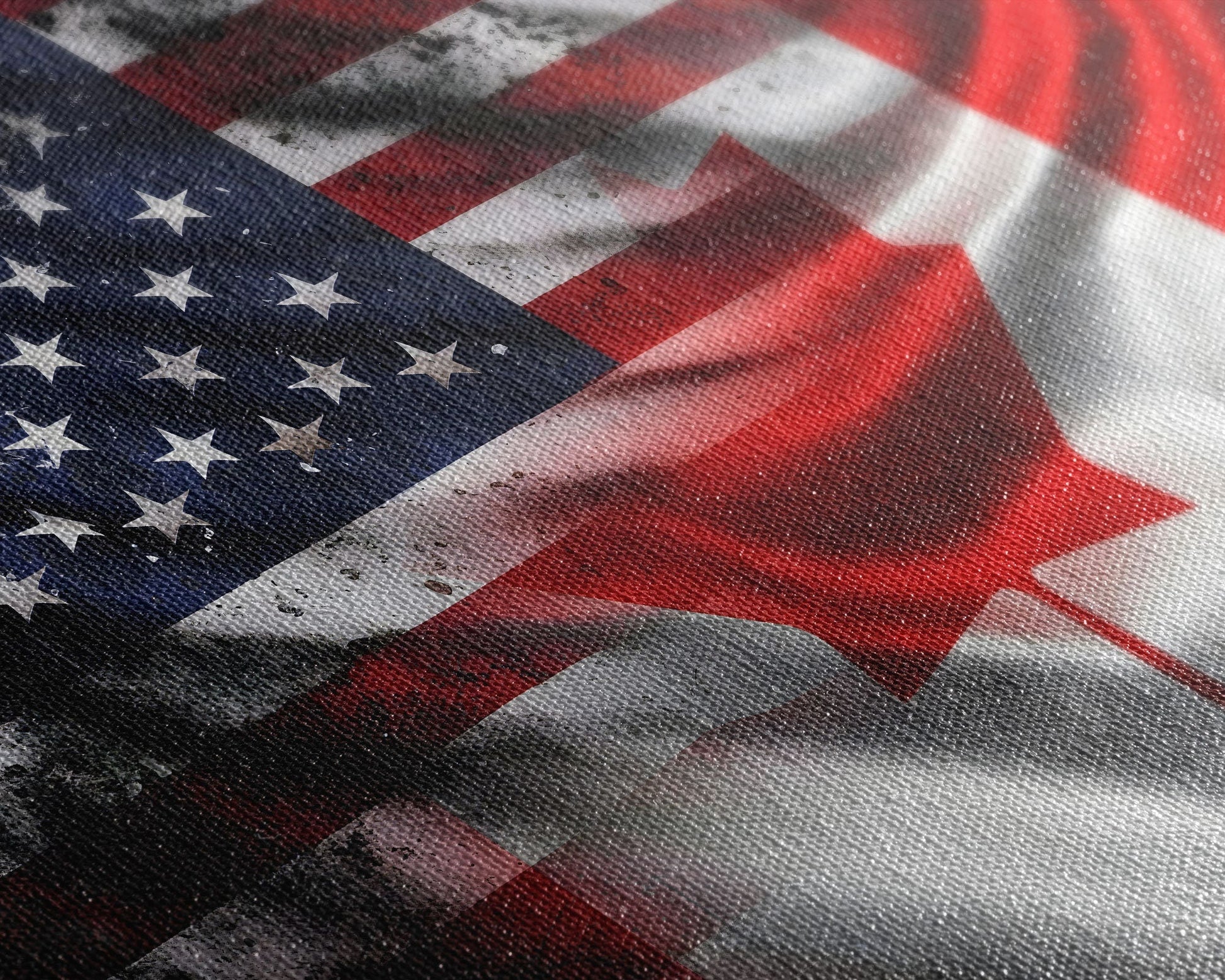 American and Canadian Flag Mashup, Canada Flag, Framed Canvas Print, American Flag Art Patriotic Immigrant Art Heritage Dual Citizenship Art