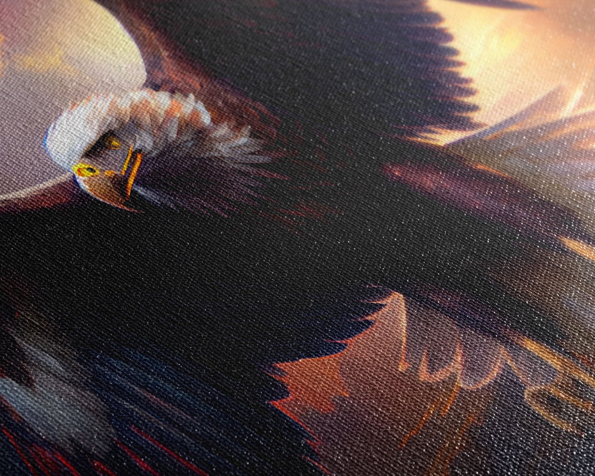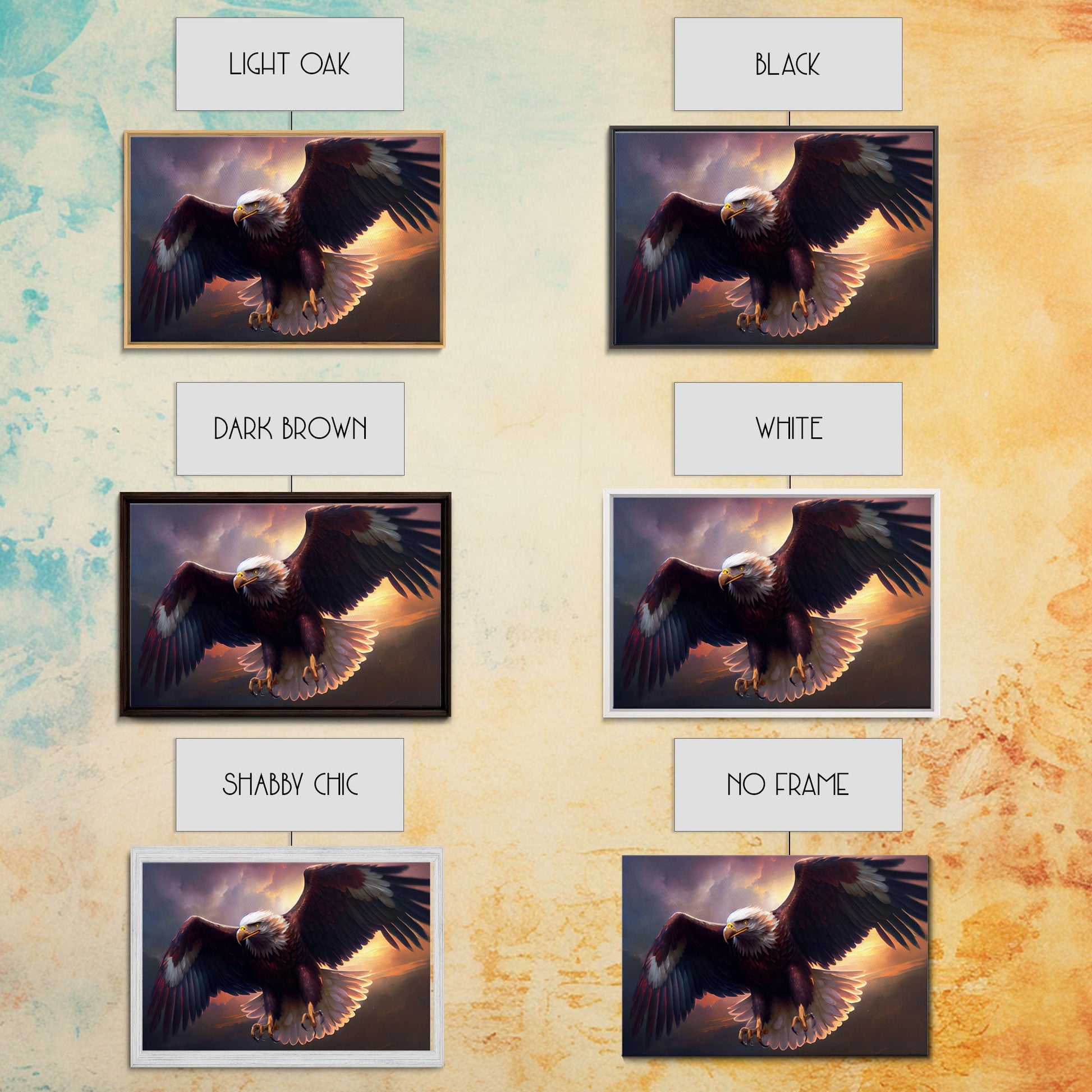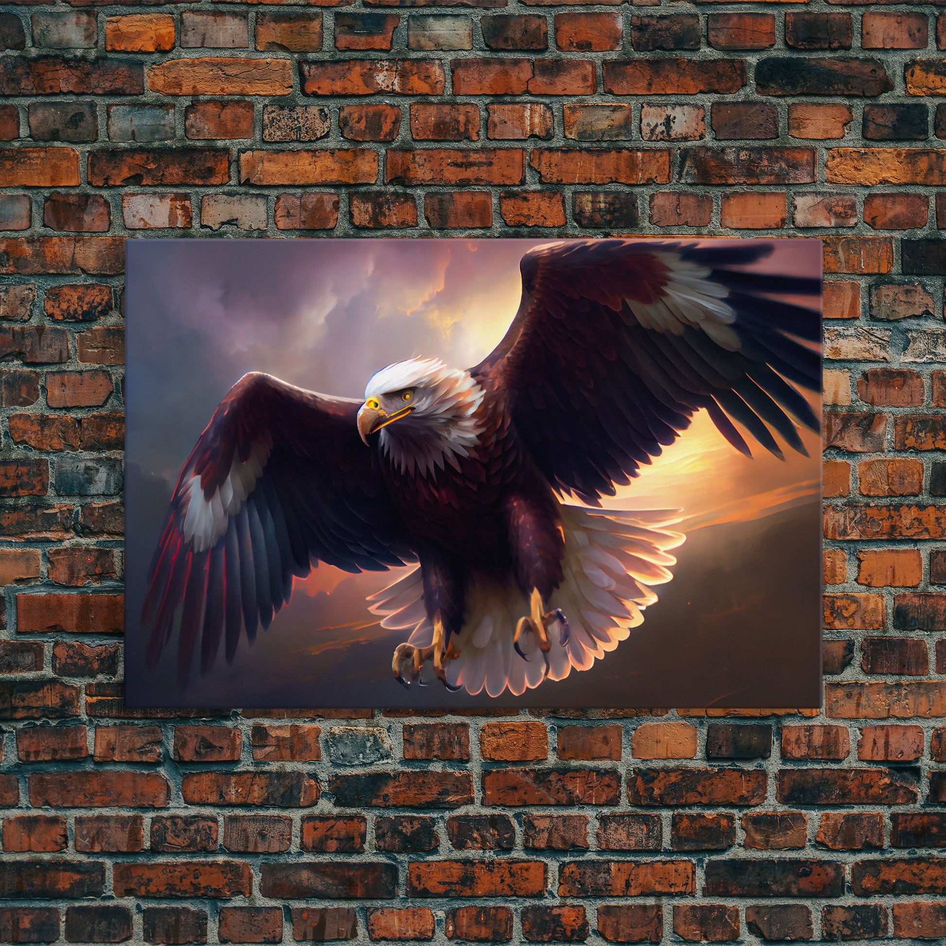 American Bald Eagle in Flight, watercolor, framed canvas print