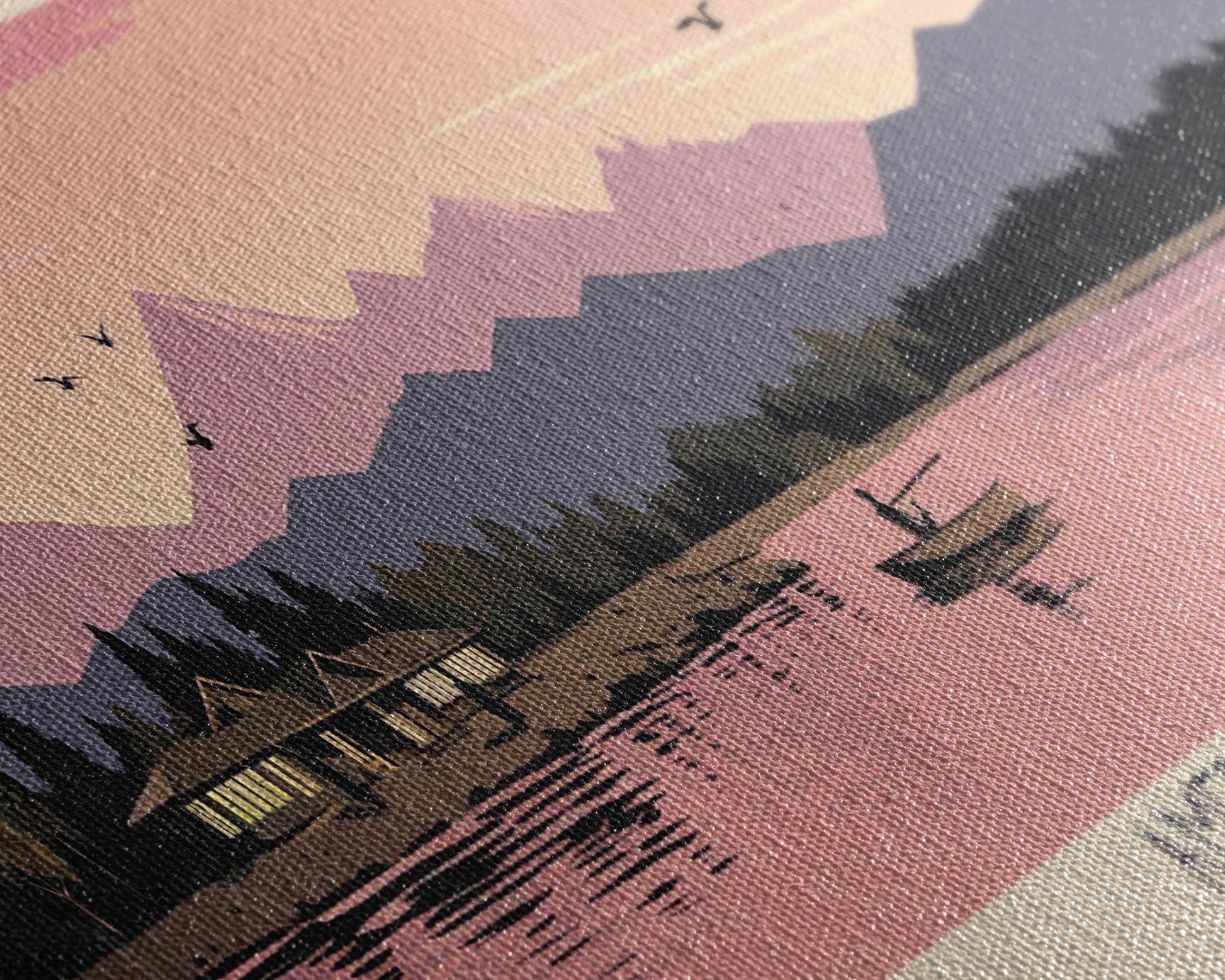 American Lake Colorado Framed Canvas Print, Panoramic Travel Poster, Pop Art, Midcentury Modern Wall Art, Scenic Bedroom Art