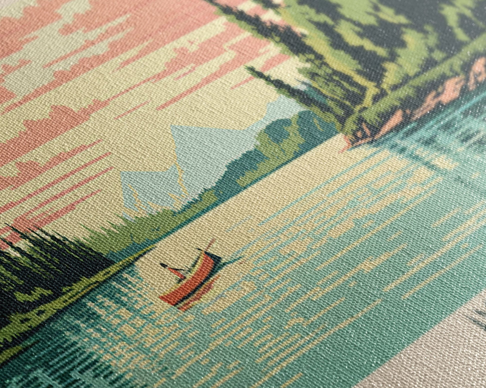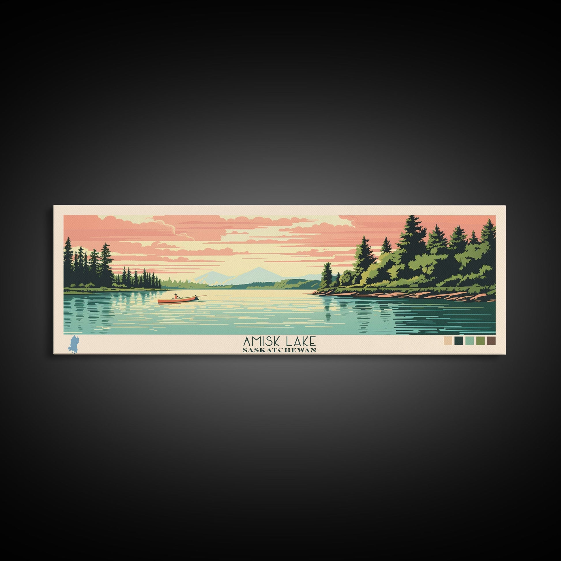Amisk Lake Saskatchewan Framed Canvas Print, Panoramic Wall Art, Midcentury Modern, Pop Art, Travel Poster, Scenic Living Room Art
