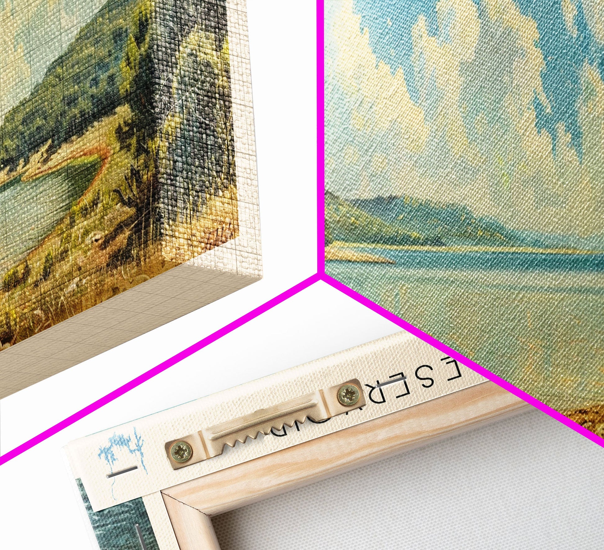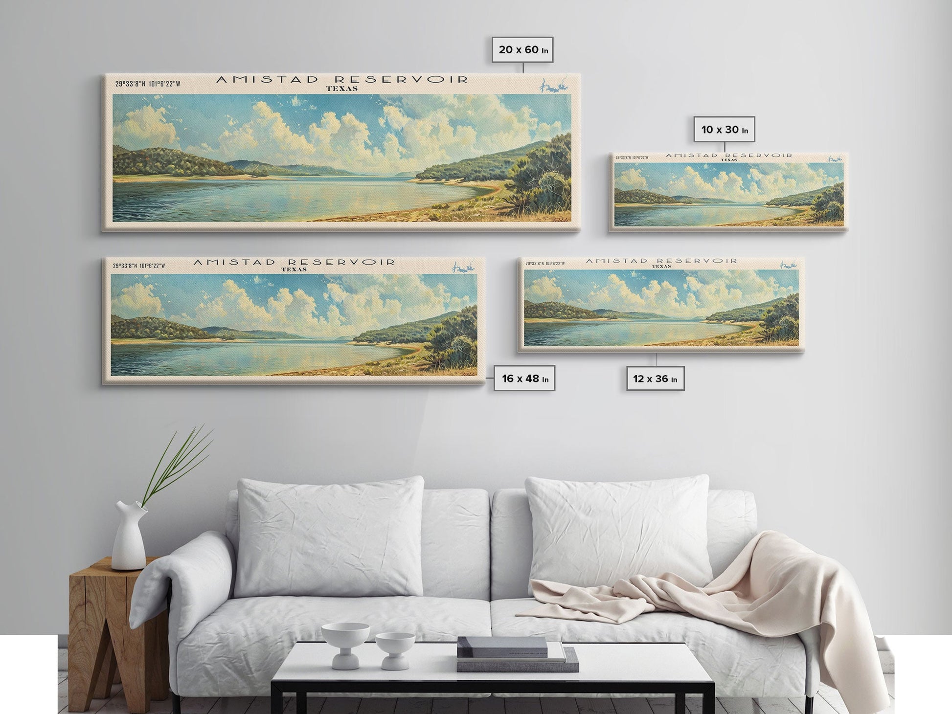 Amistad Reservoir Texas Panoramic Framed Canvas Print, Lake House Decor, Modern Art, Travel Poster, Scenic View, Water Reflection