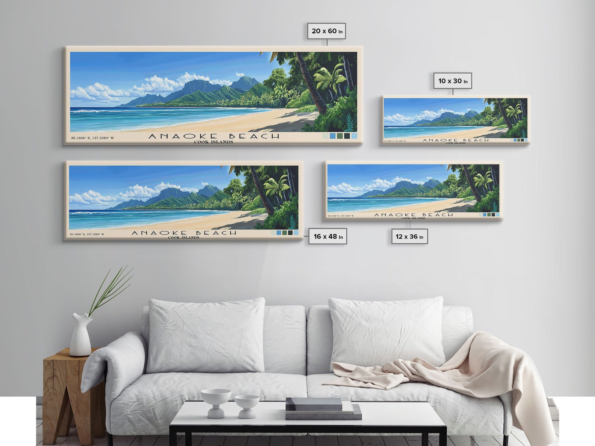 Anaoke Beach, Cook Islands Panoramic Beach Print, Vacation Gift, Cook Islands Wall Art, Beach Painting, Beach Decor, Beach Painting