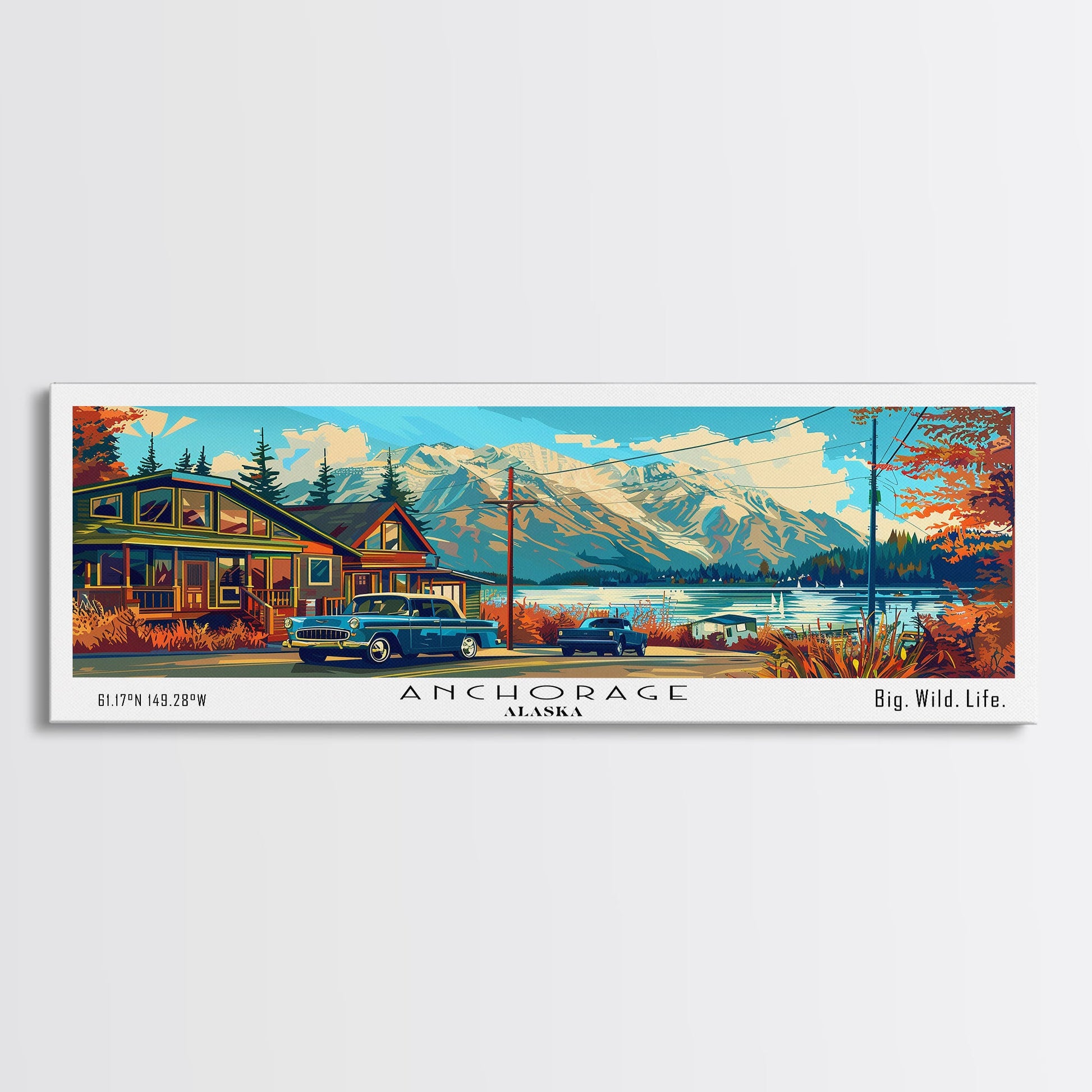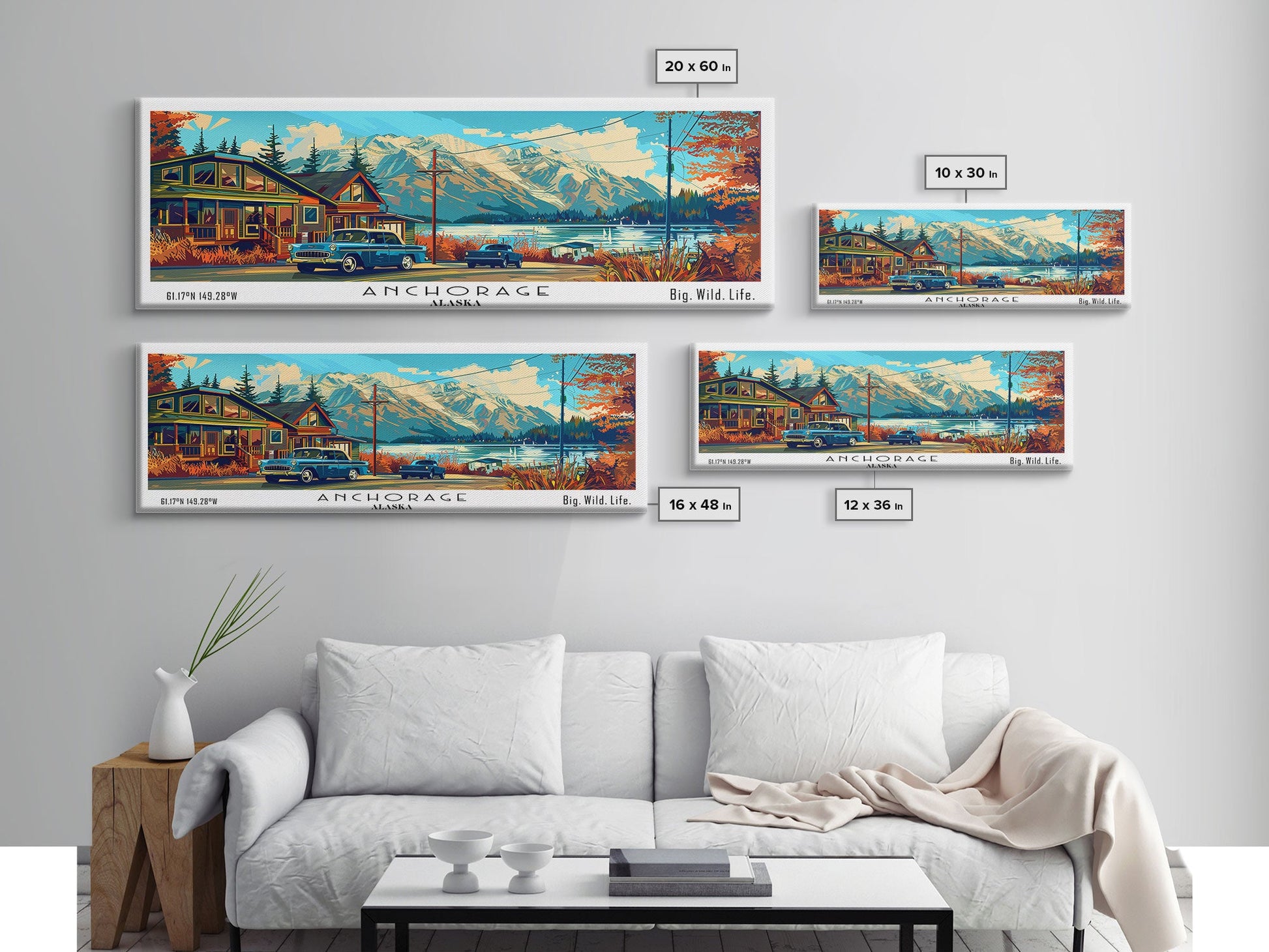 Anchorage Alaska Panoramic Travel Poster Framed Canvas Print, Mid Century Modern Art, Pop Art Style, Wall Art Decor, Home Decoration